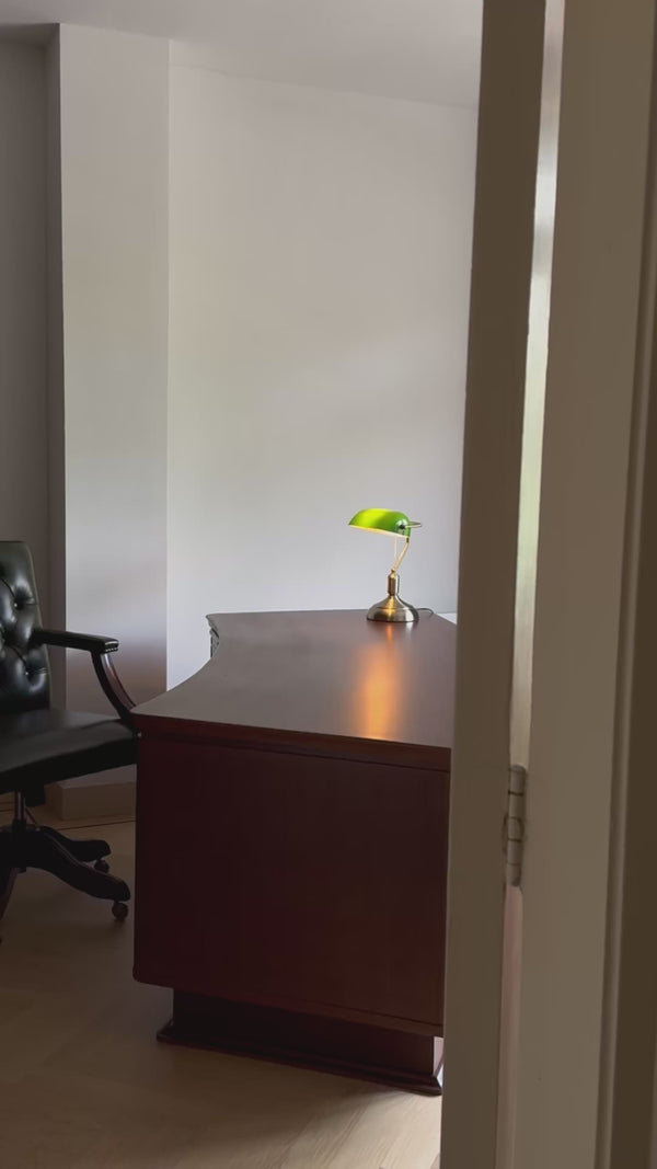 Vintage bureau, klassiek Engels bureau, mahoniehout, groen leer, 642