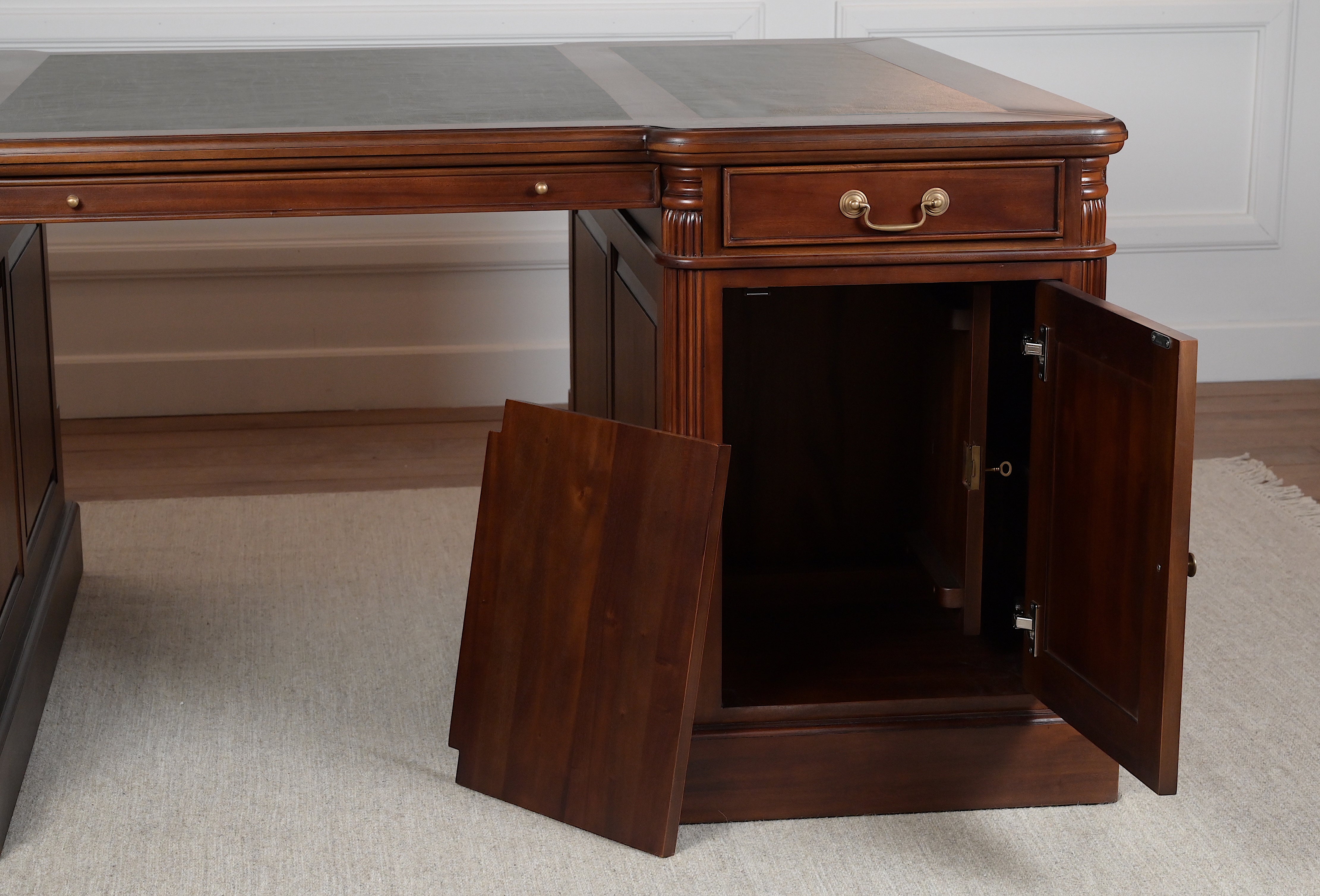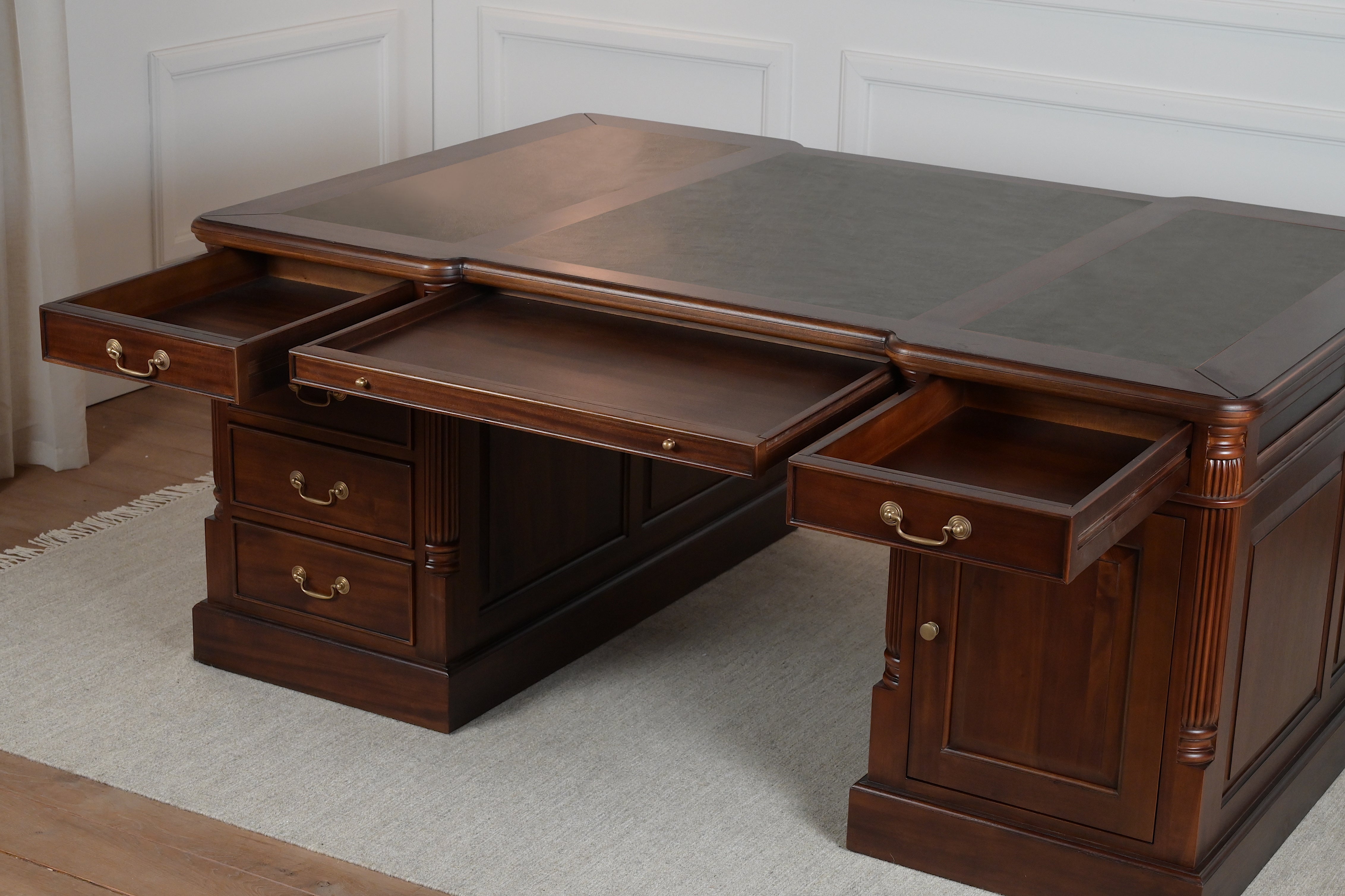 Pillar 180x120 Mahonie, partnerdesk, klassiek Engels bureau, massief mahoniehout