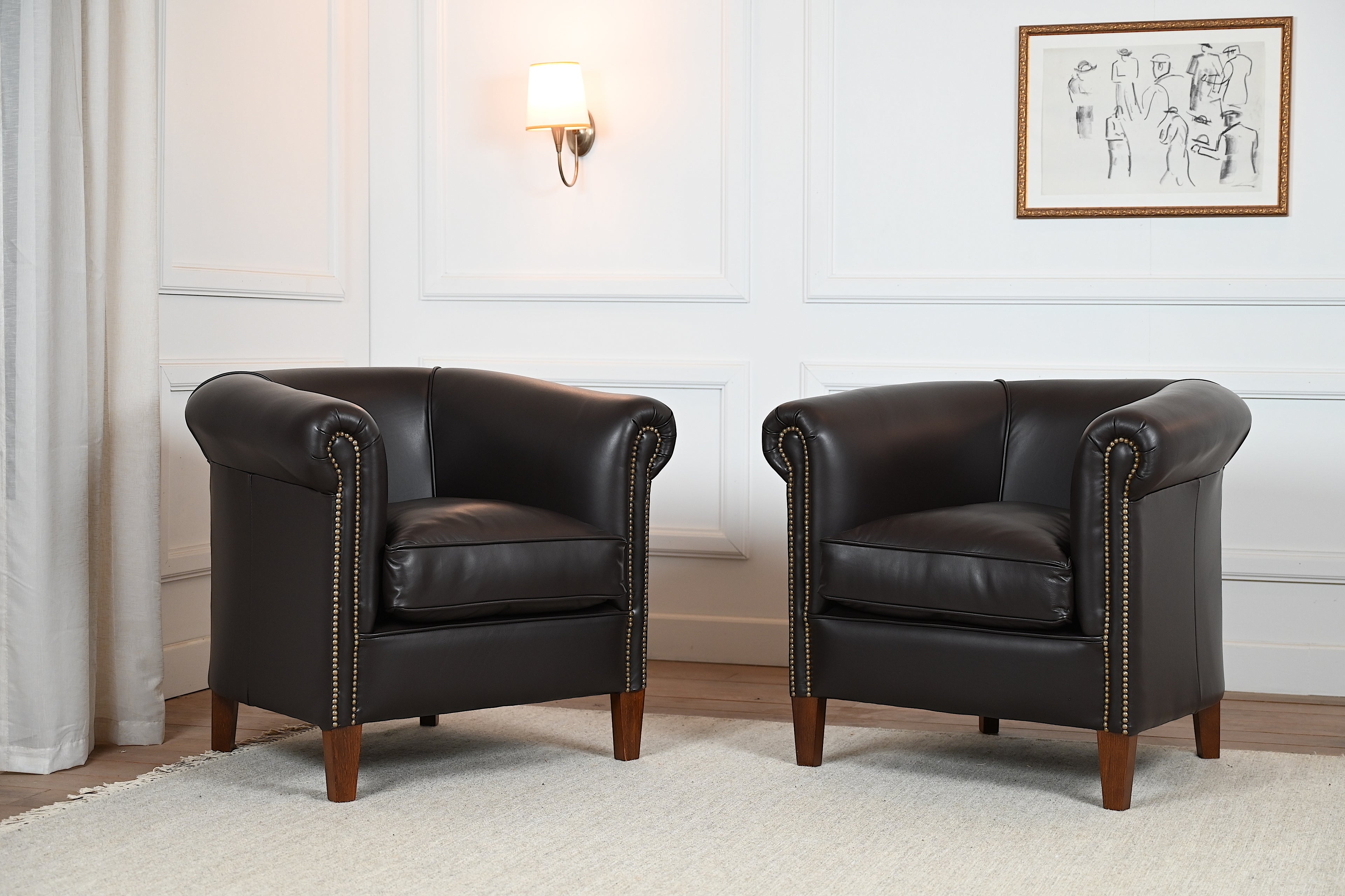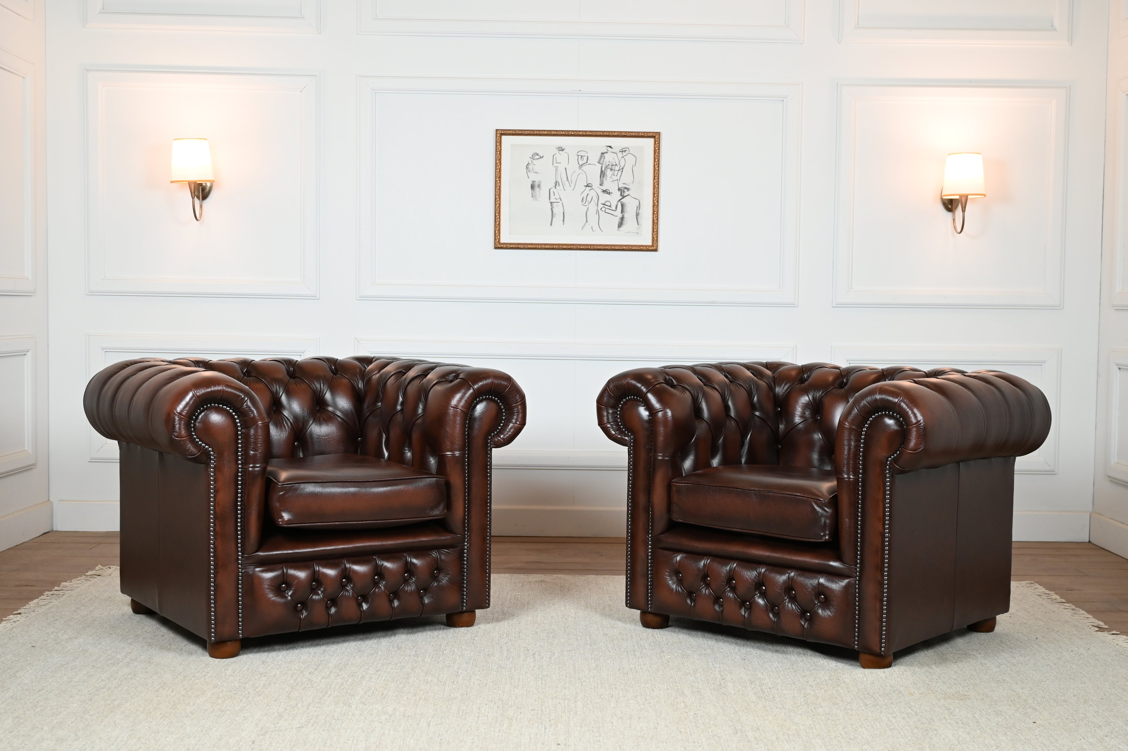Een iconische, handgemaakte fauteuil met diepe knopen, luxe lederen bekleding en een elegante, klassieke uitstraling, die comfort en stijl moeiteloos combineert.