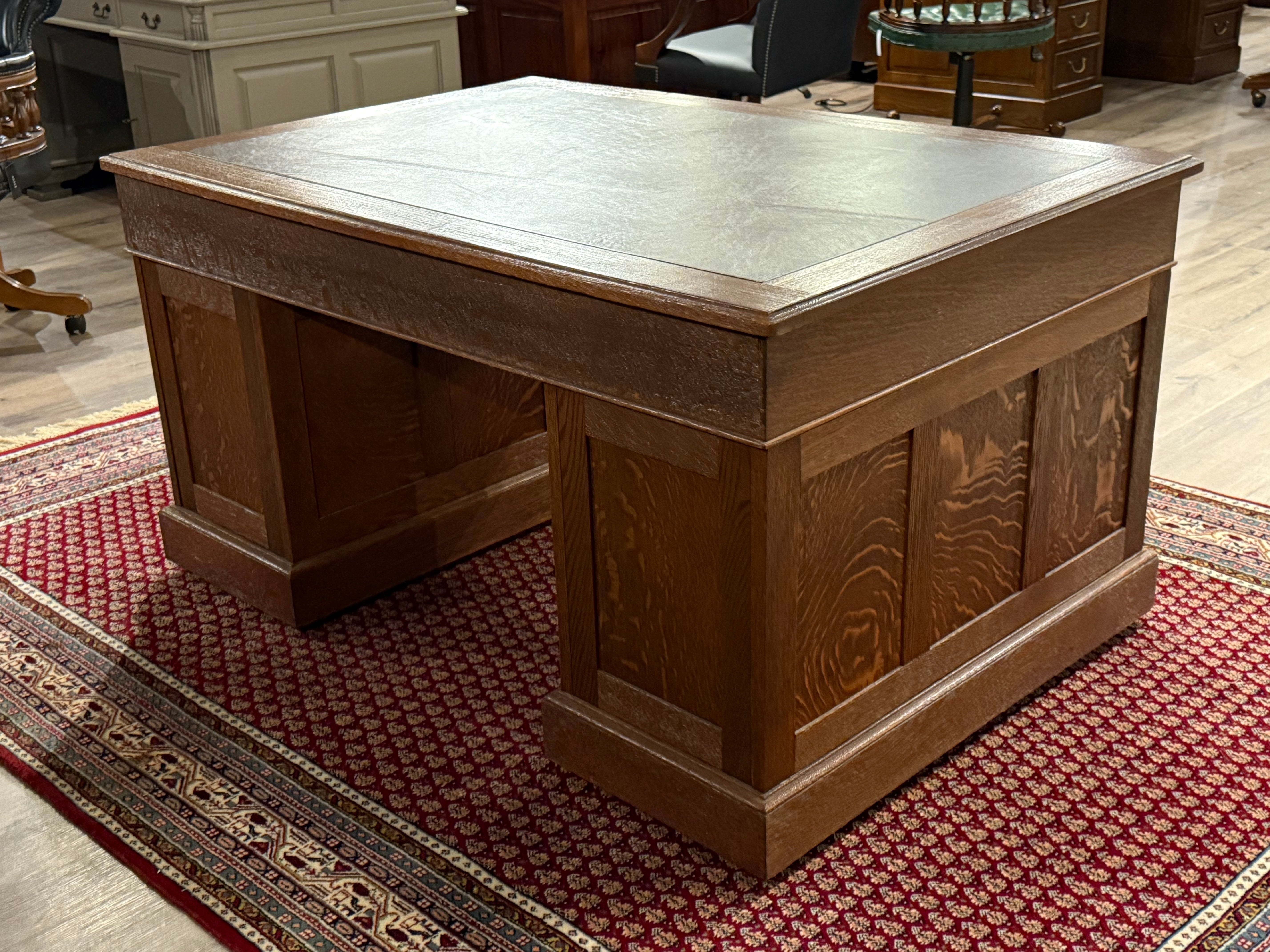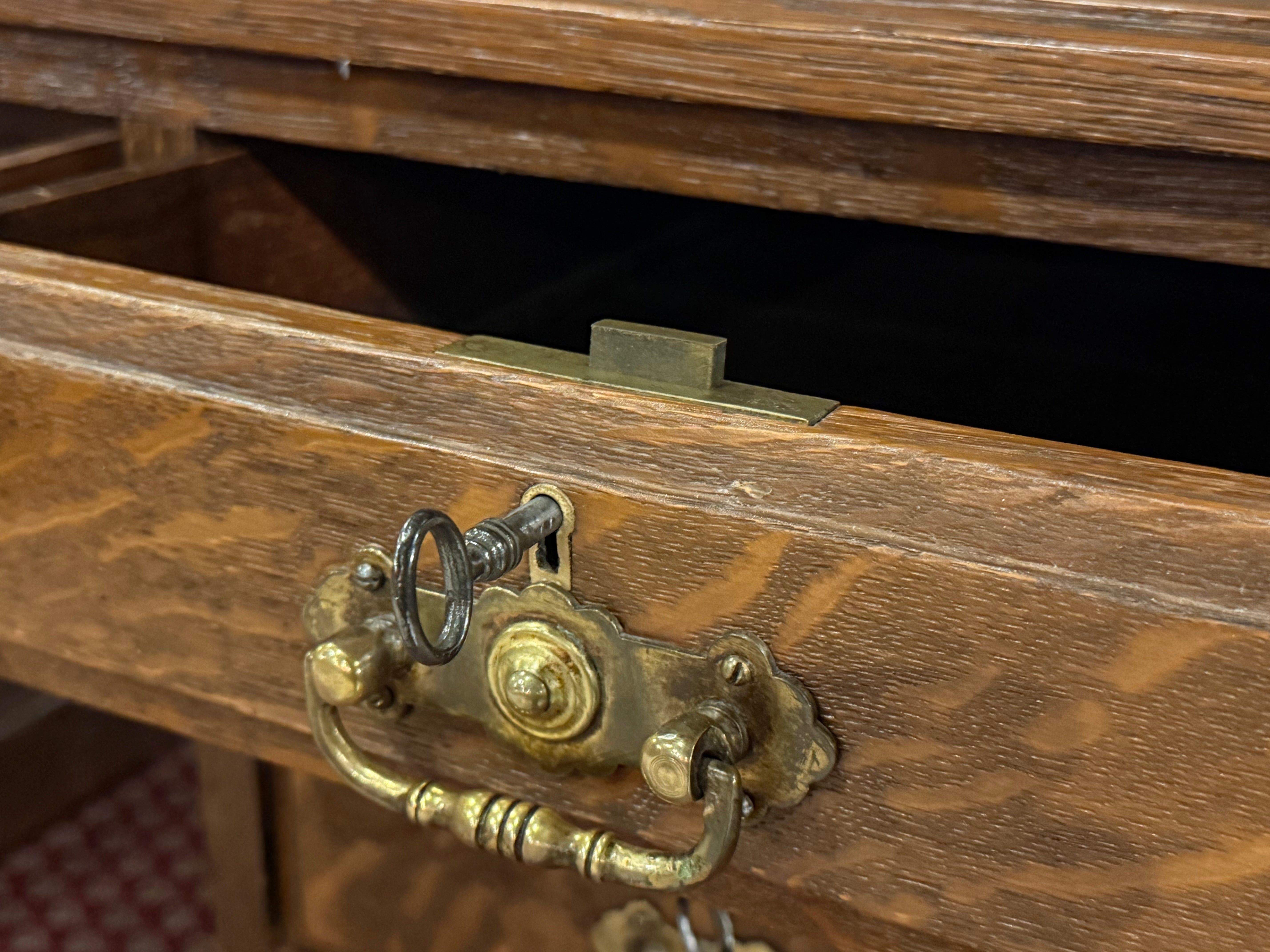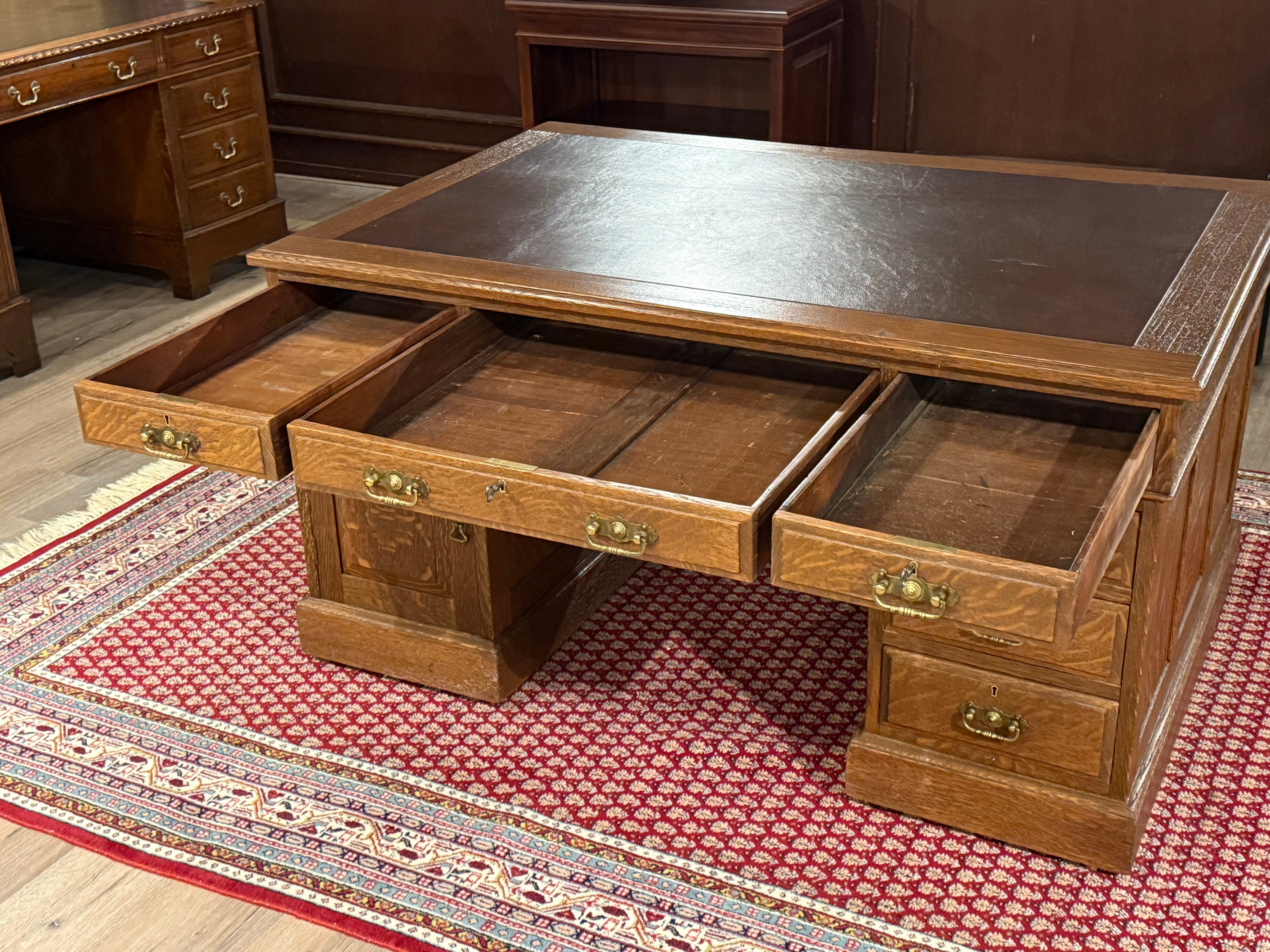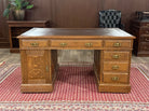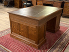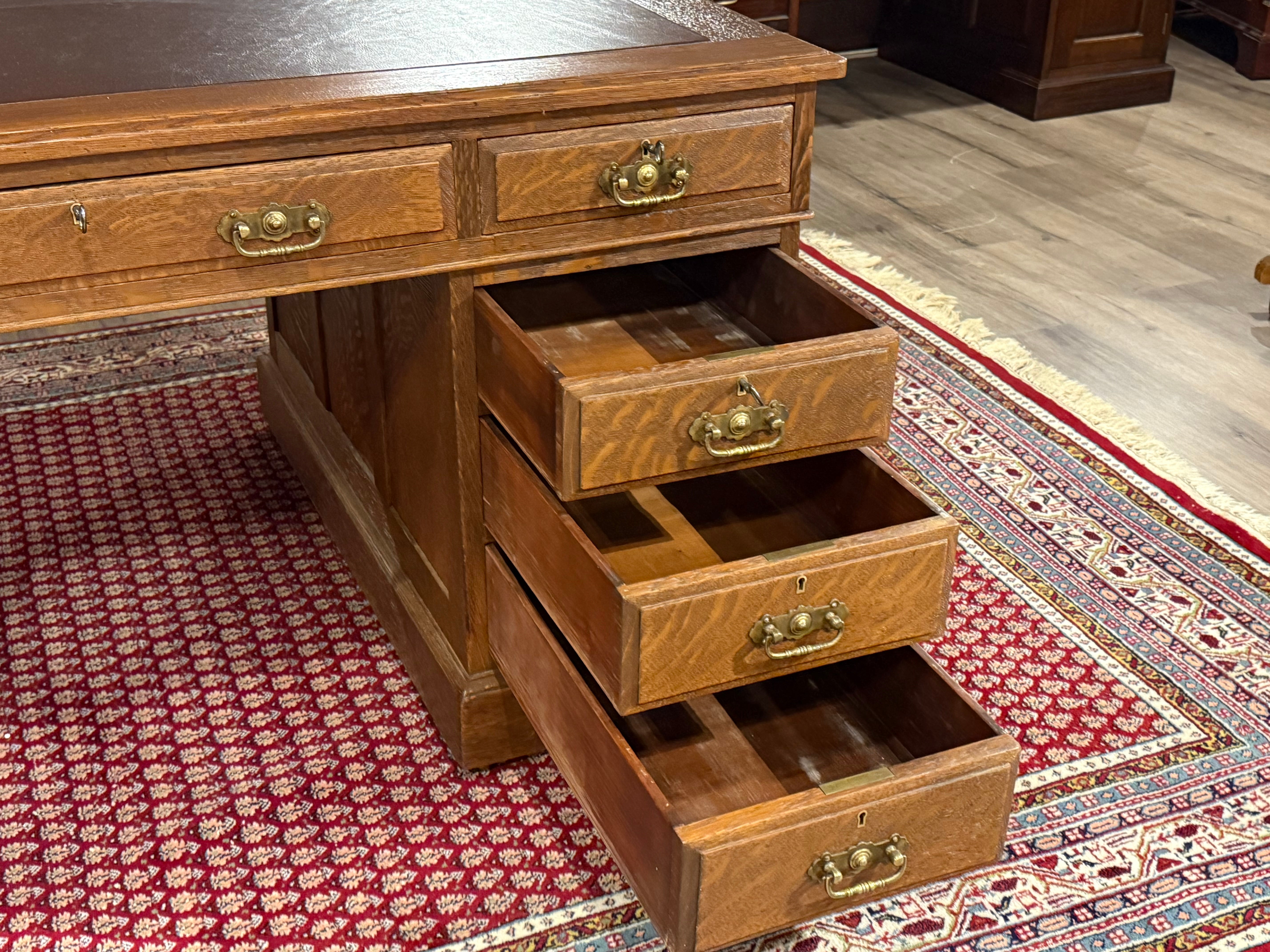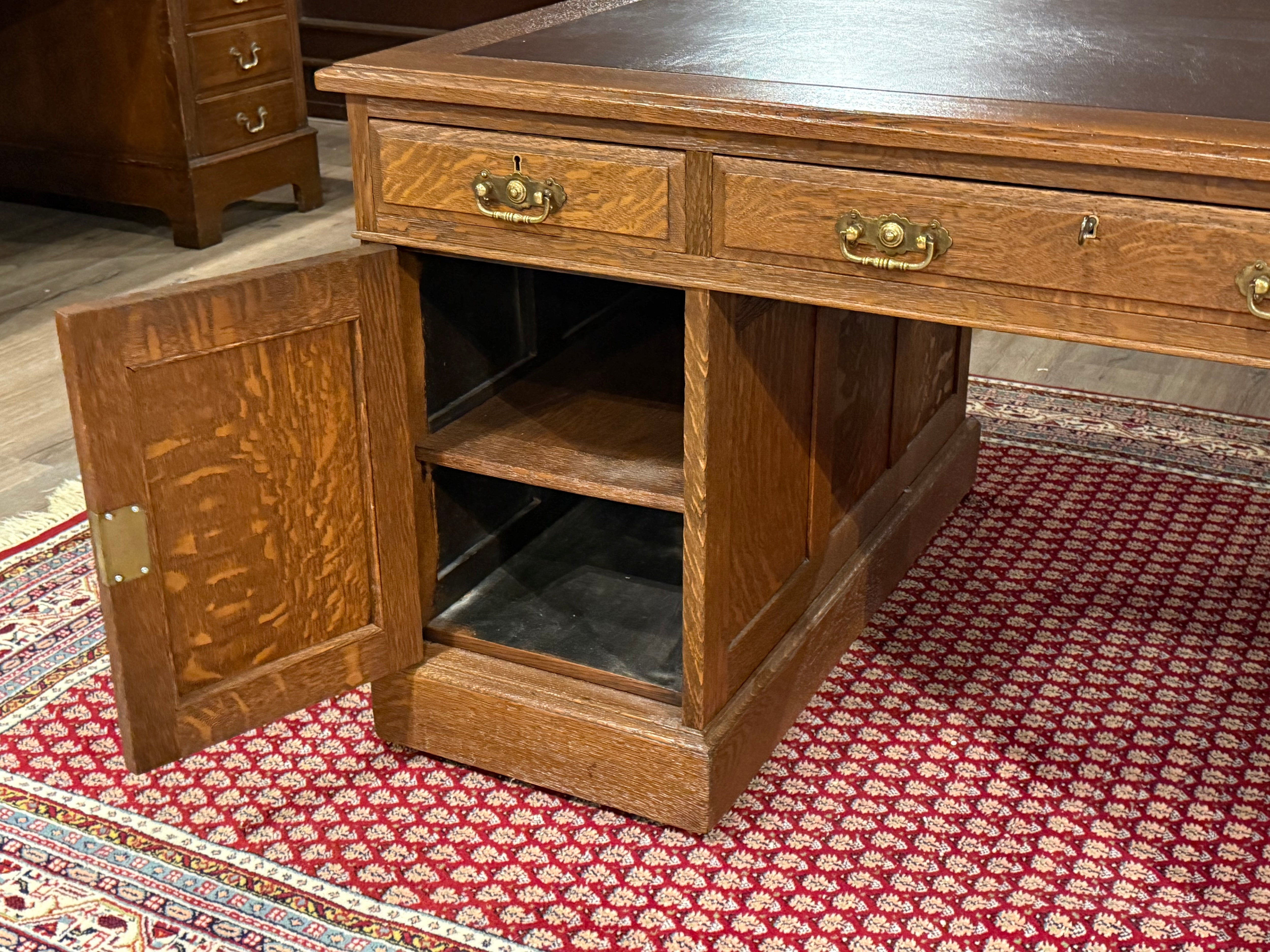 Vintage bureau, antiek bureau, eikenhout, bruin leer, 529