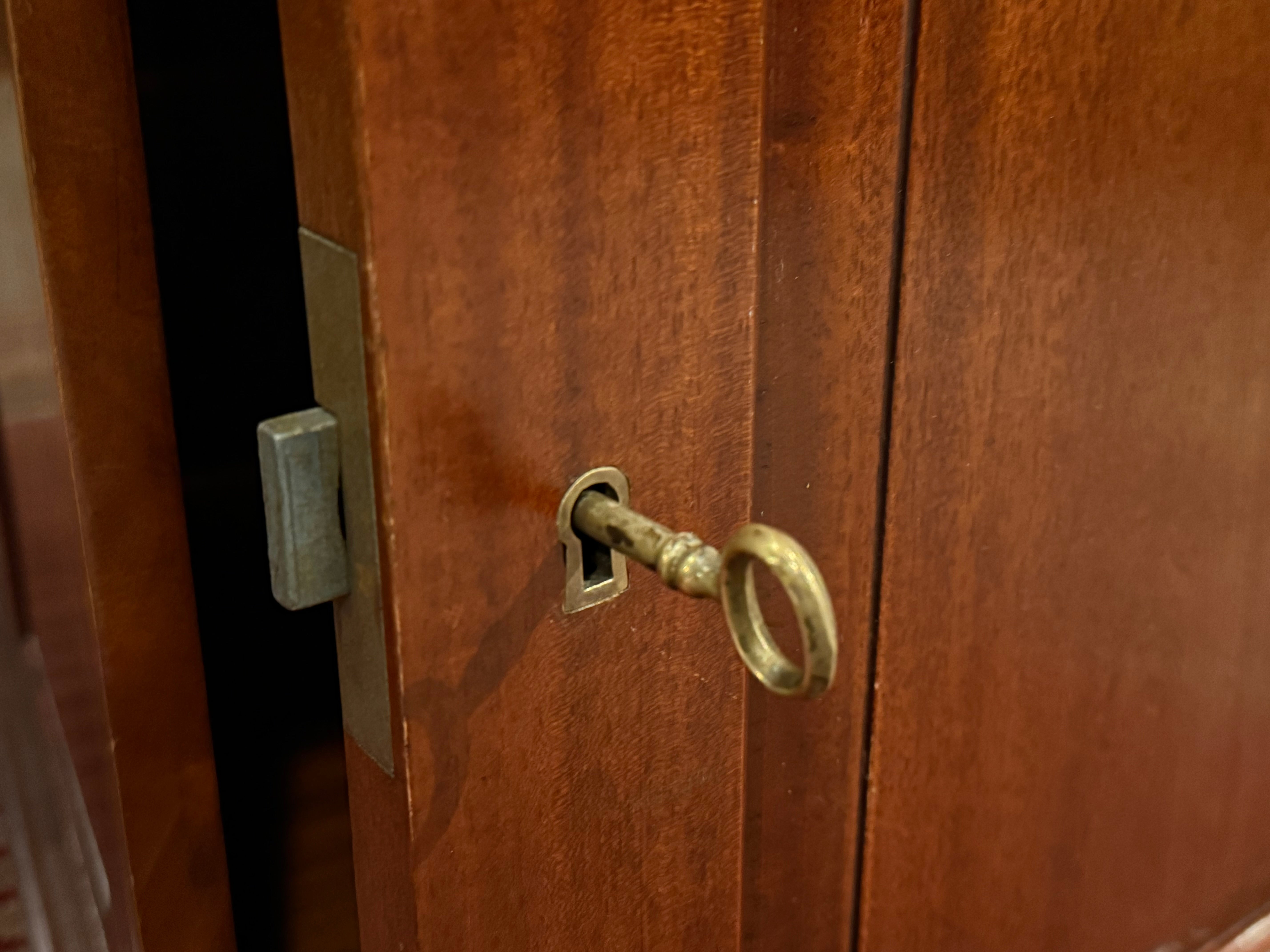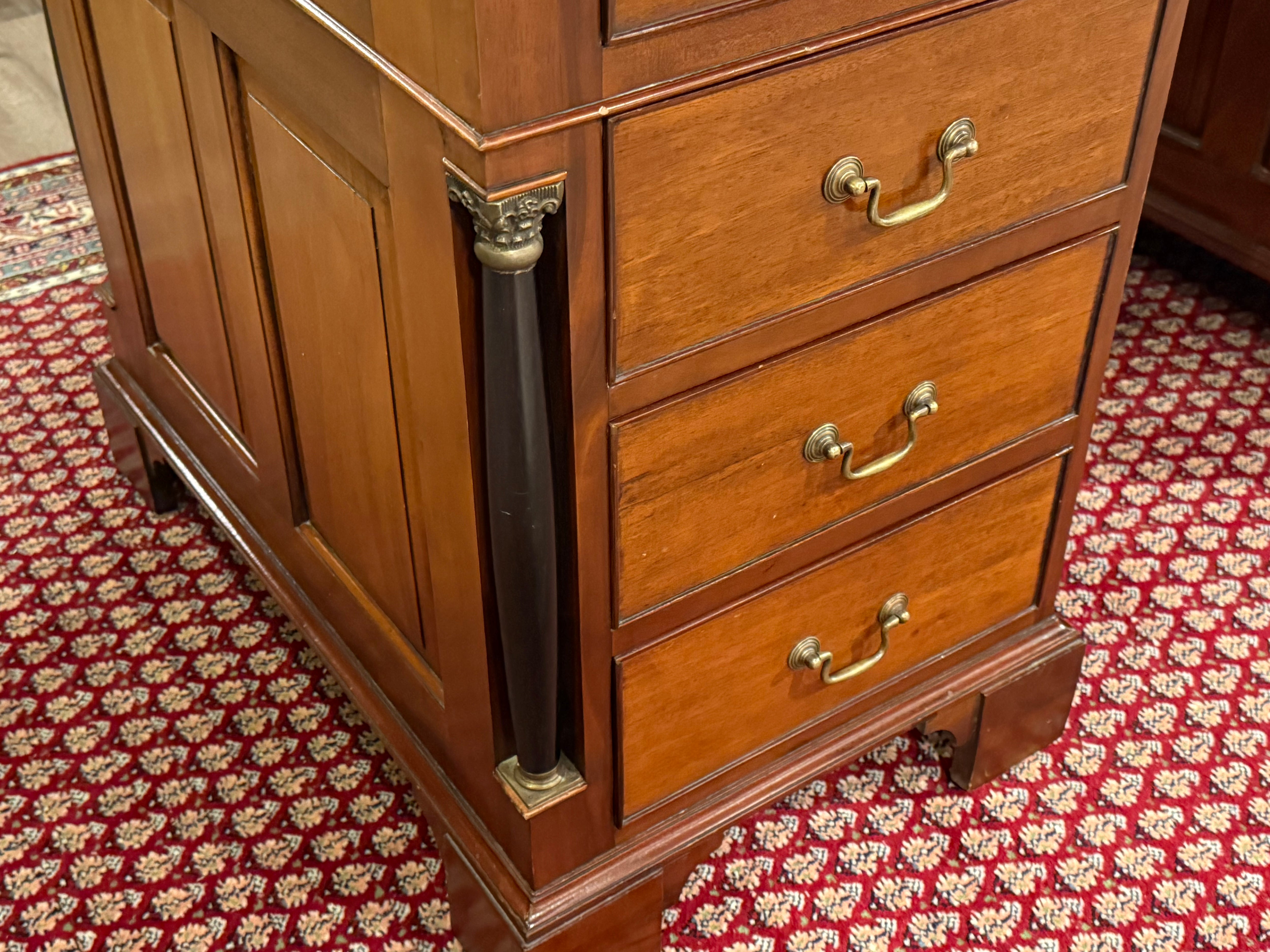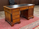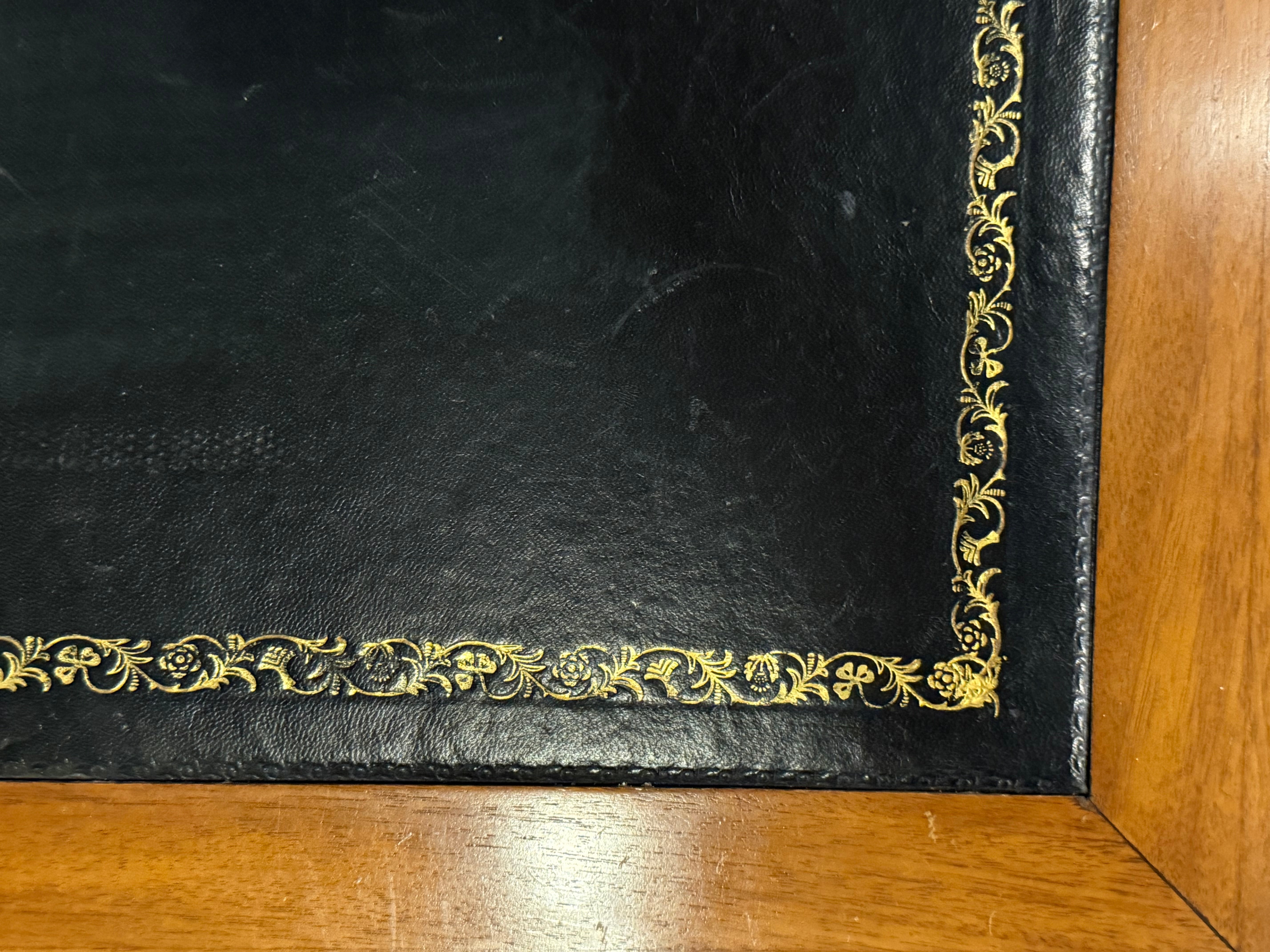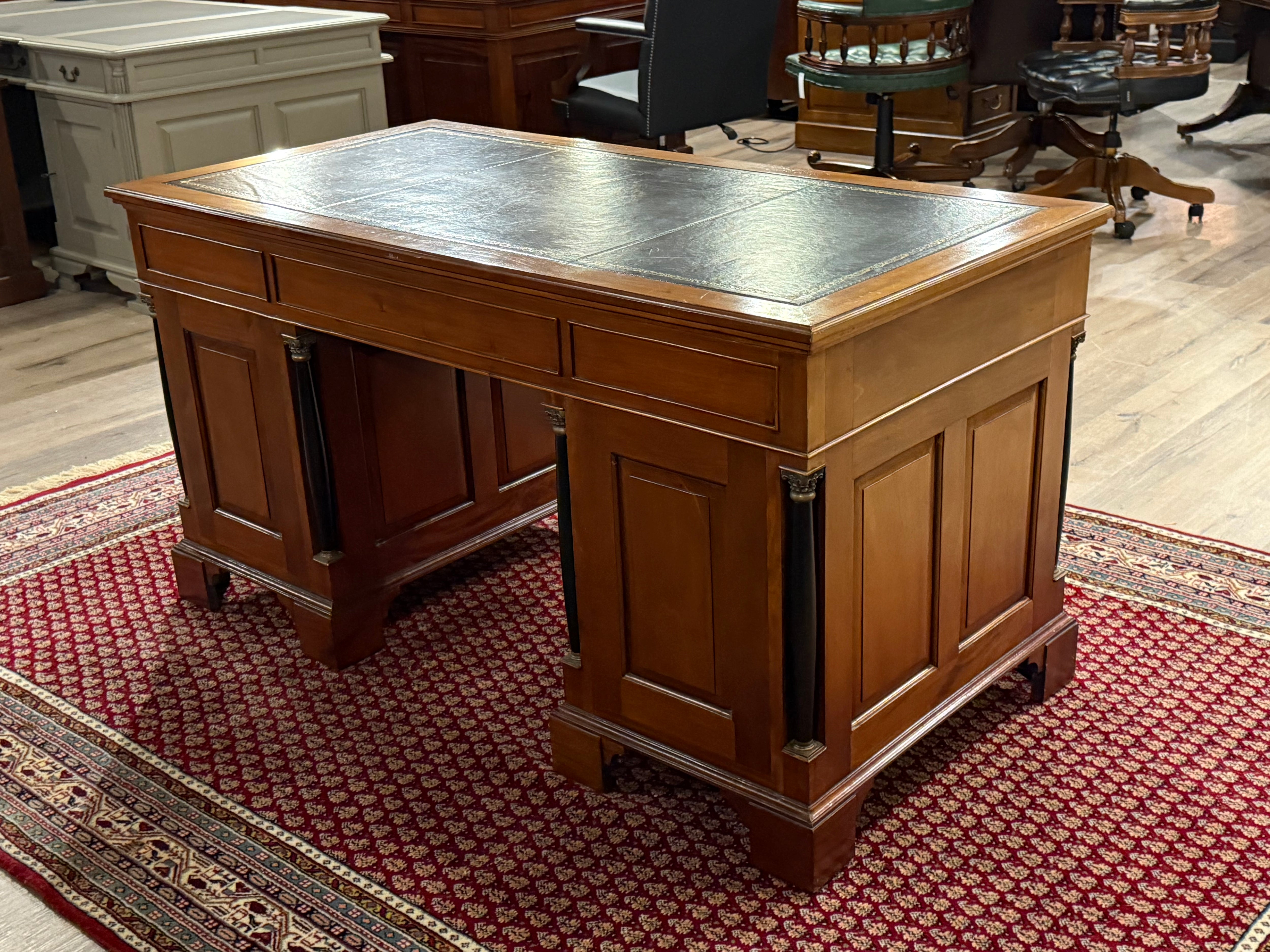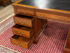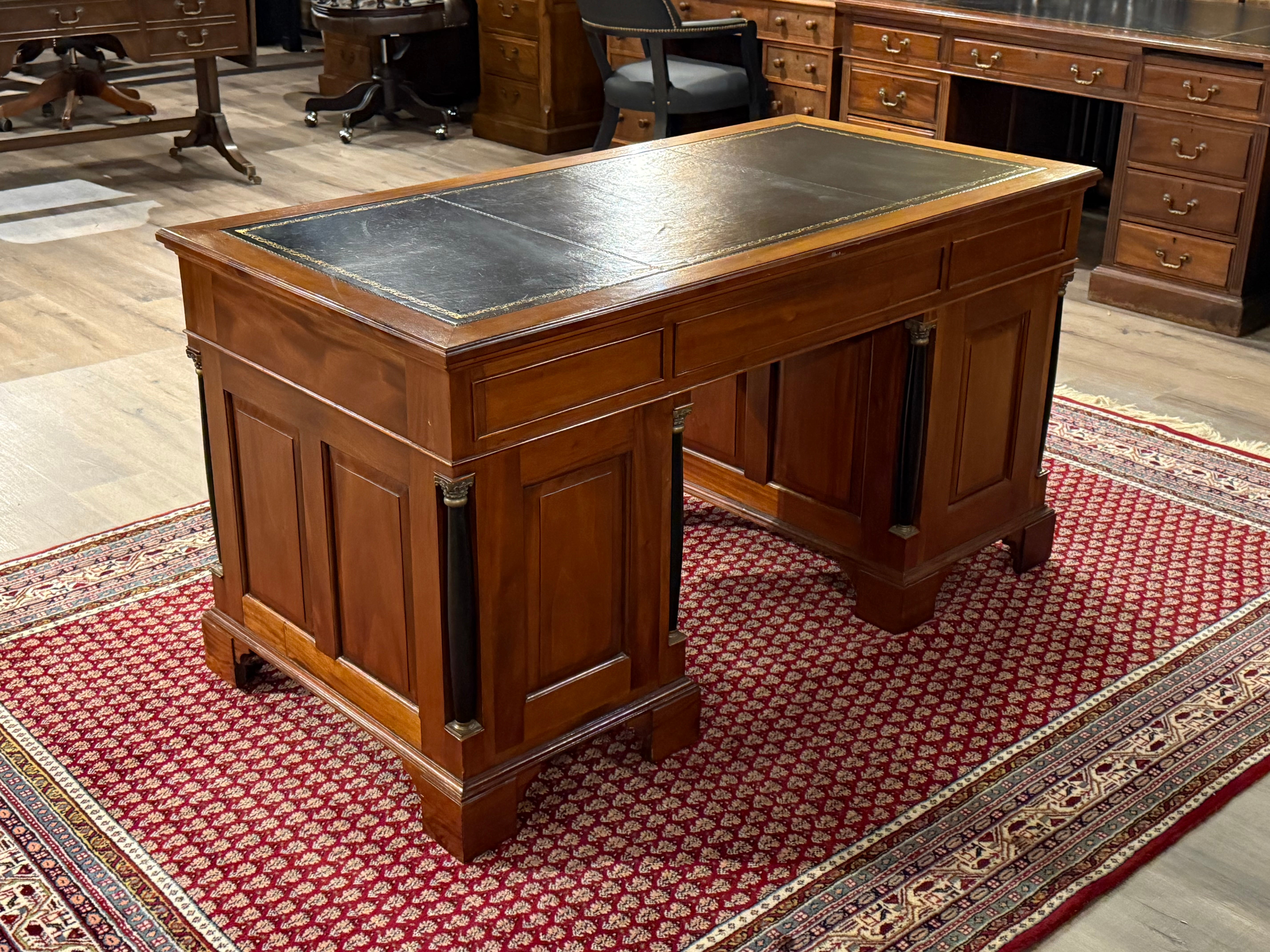 Vintage bureau, klassiek Engels bureau, mahoniehout, donkerblauw leer, 533