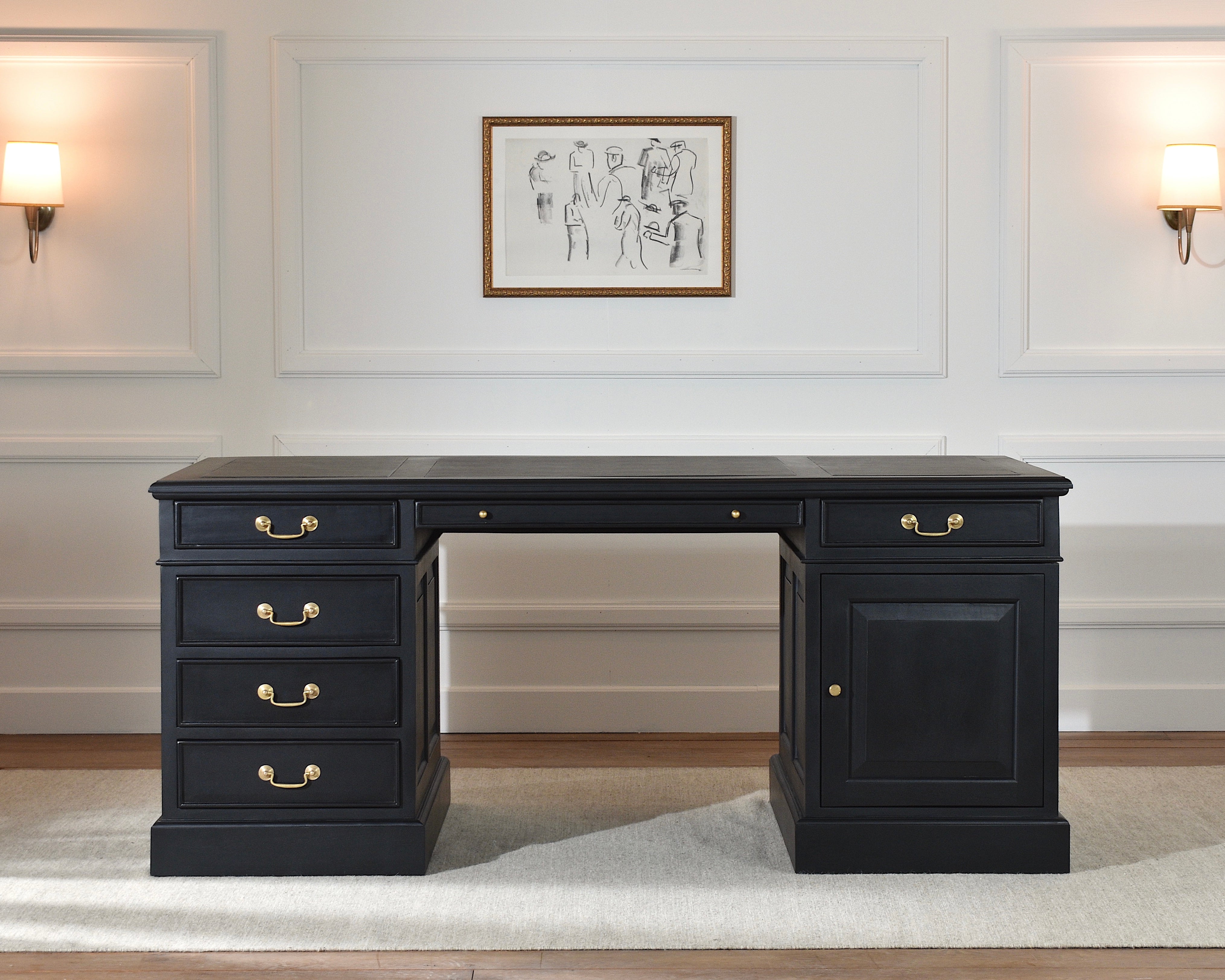 De Regent Desk combineert een klassieke uitstraling met strakke, rechte hoeken voor een tijdloos en verfijnd design. Deze mix van klassiek en modern maakt de Regent Desk een veelzijdig meubelstuk dat in zowel traditionele als eigentijdse interieurs past.