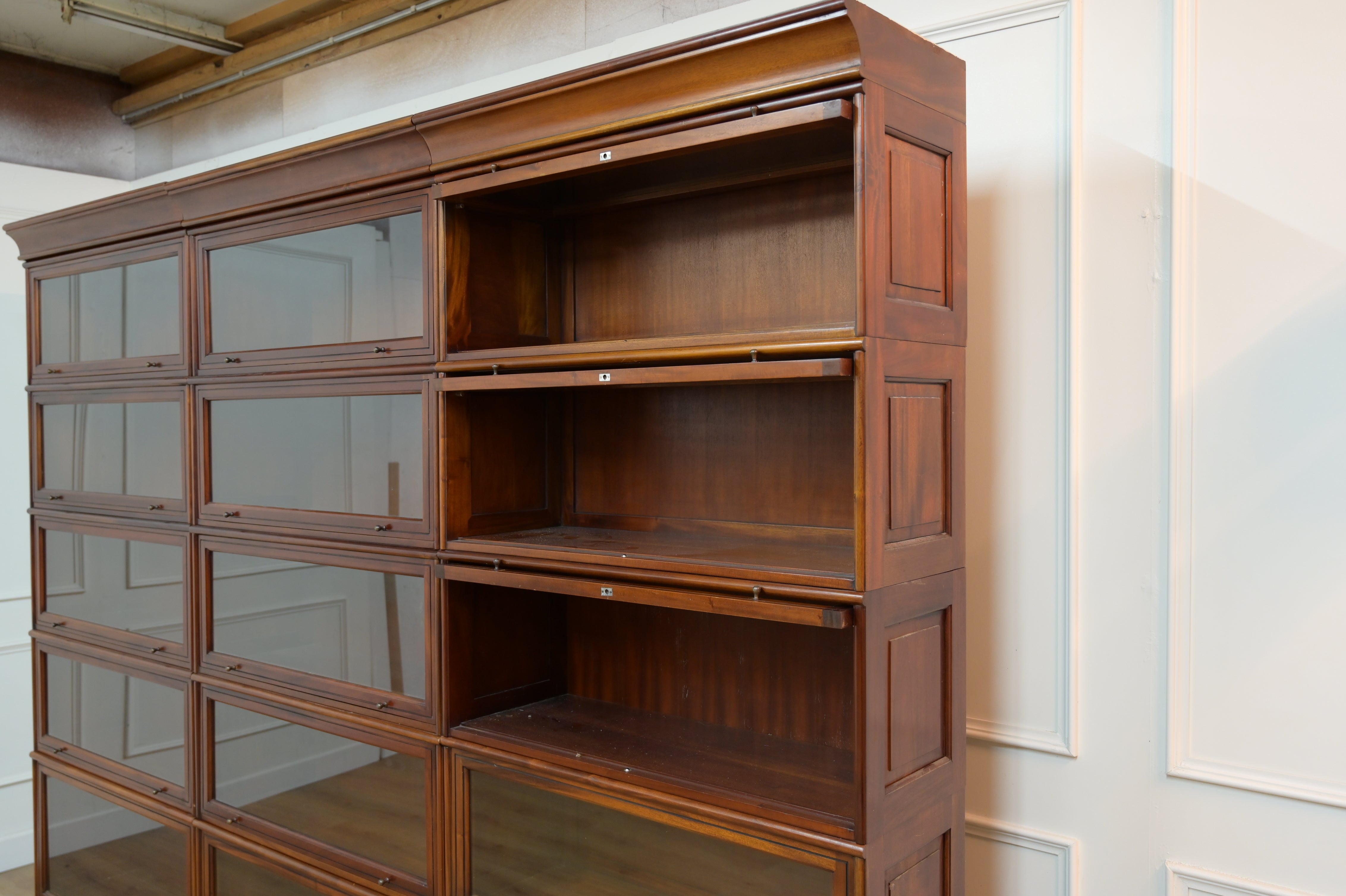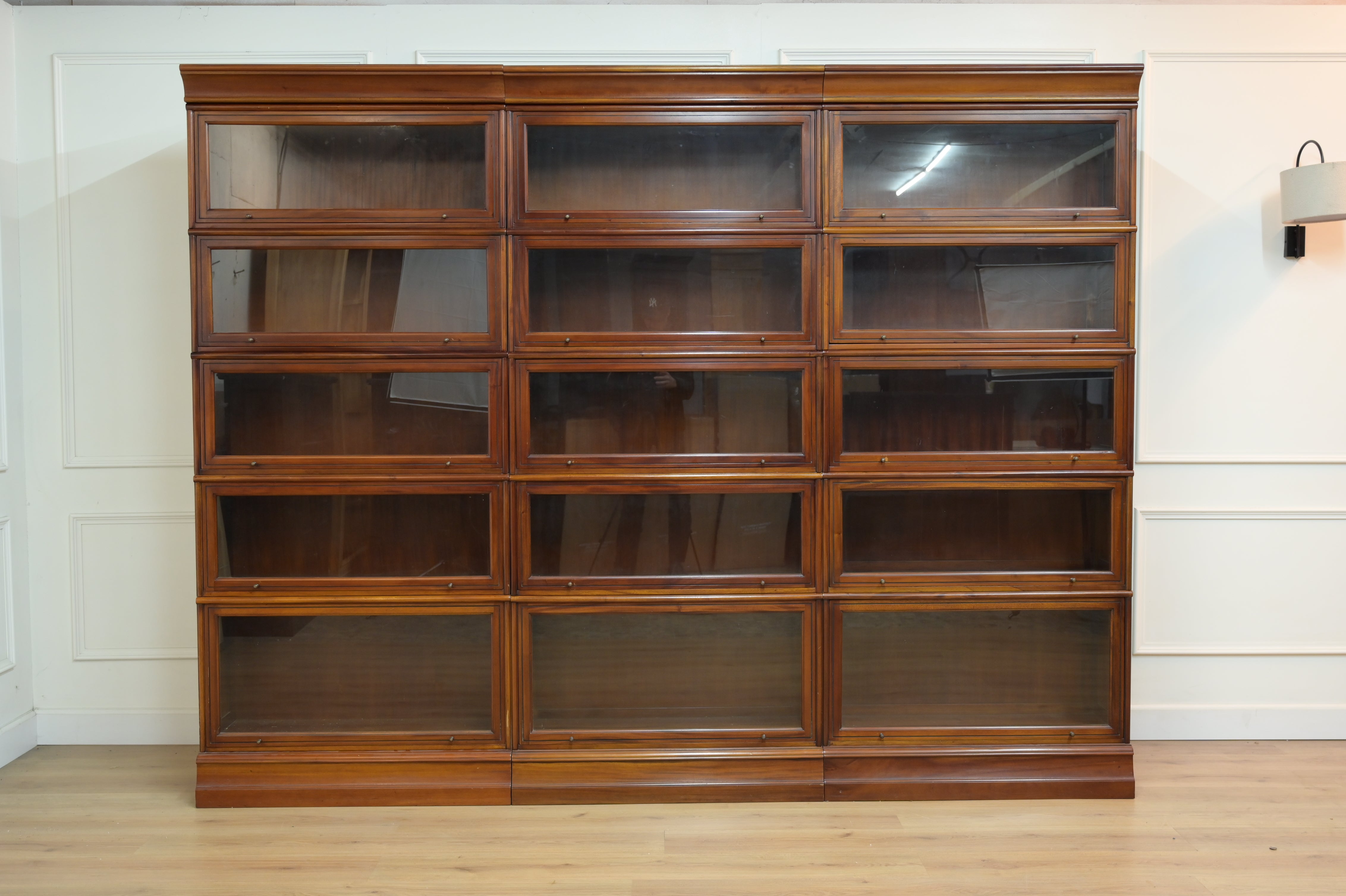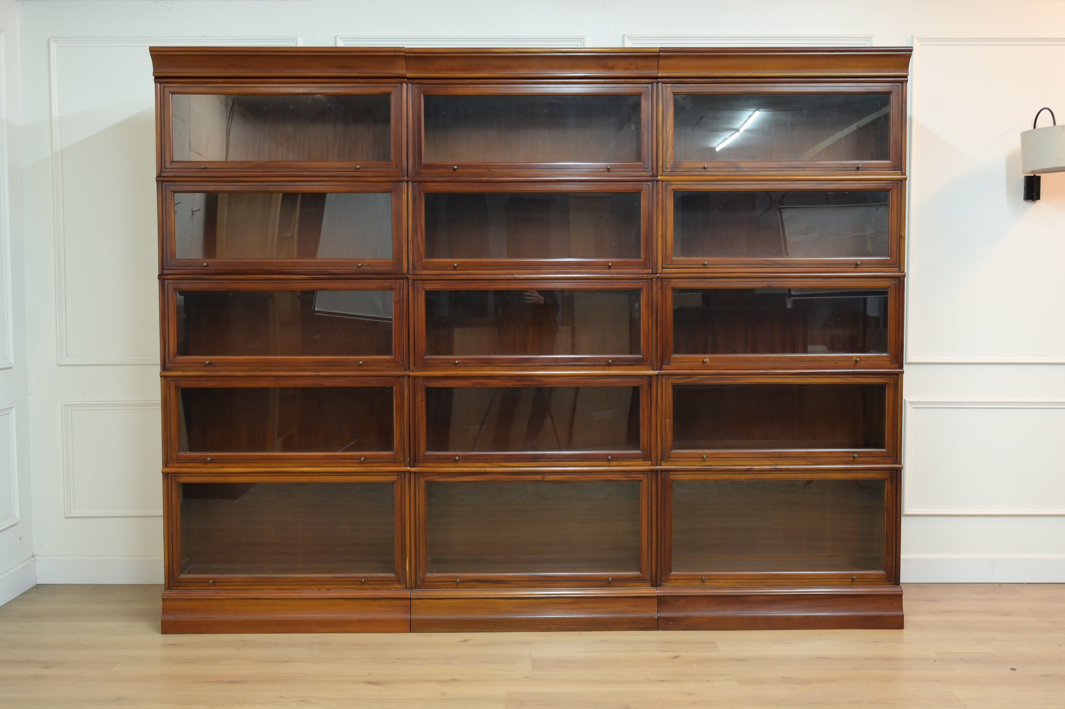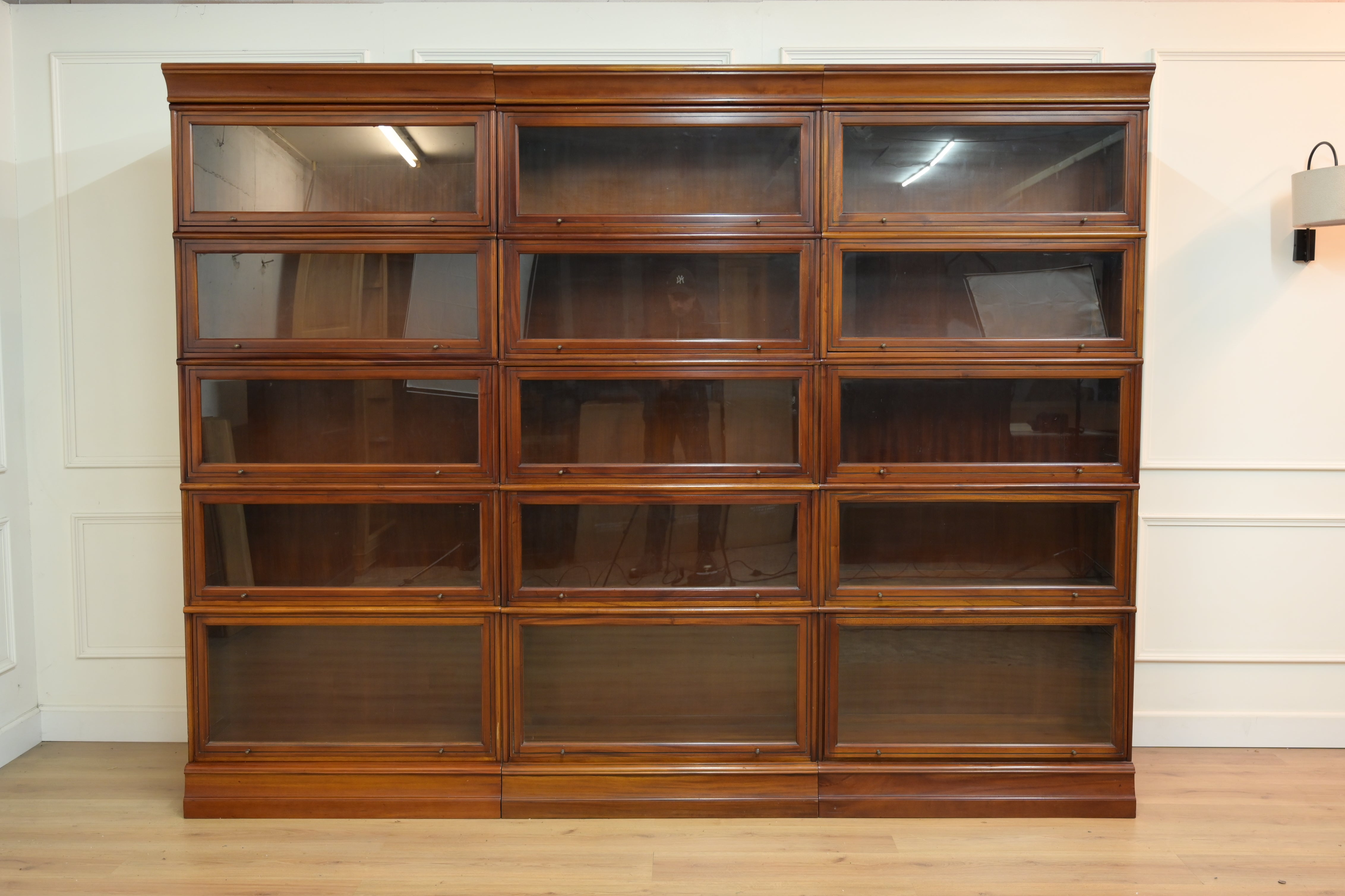 Vintage boekenkasten, 3x globe wernicke stapelkast, mahoniehout, glas