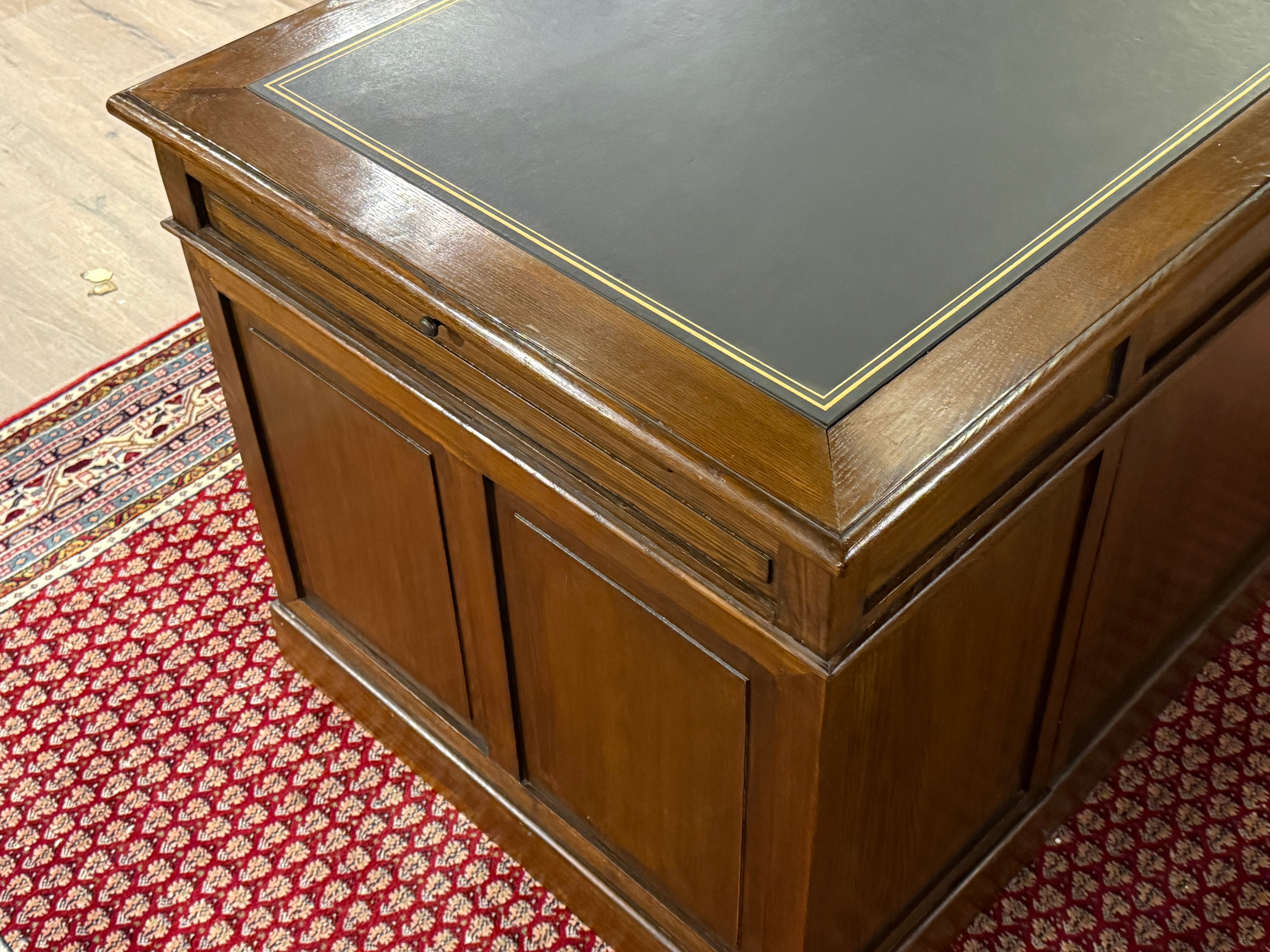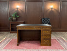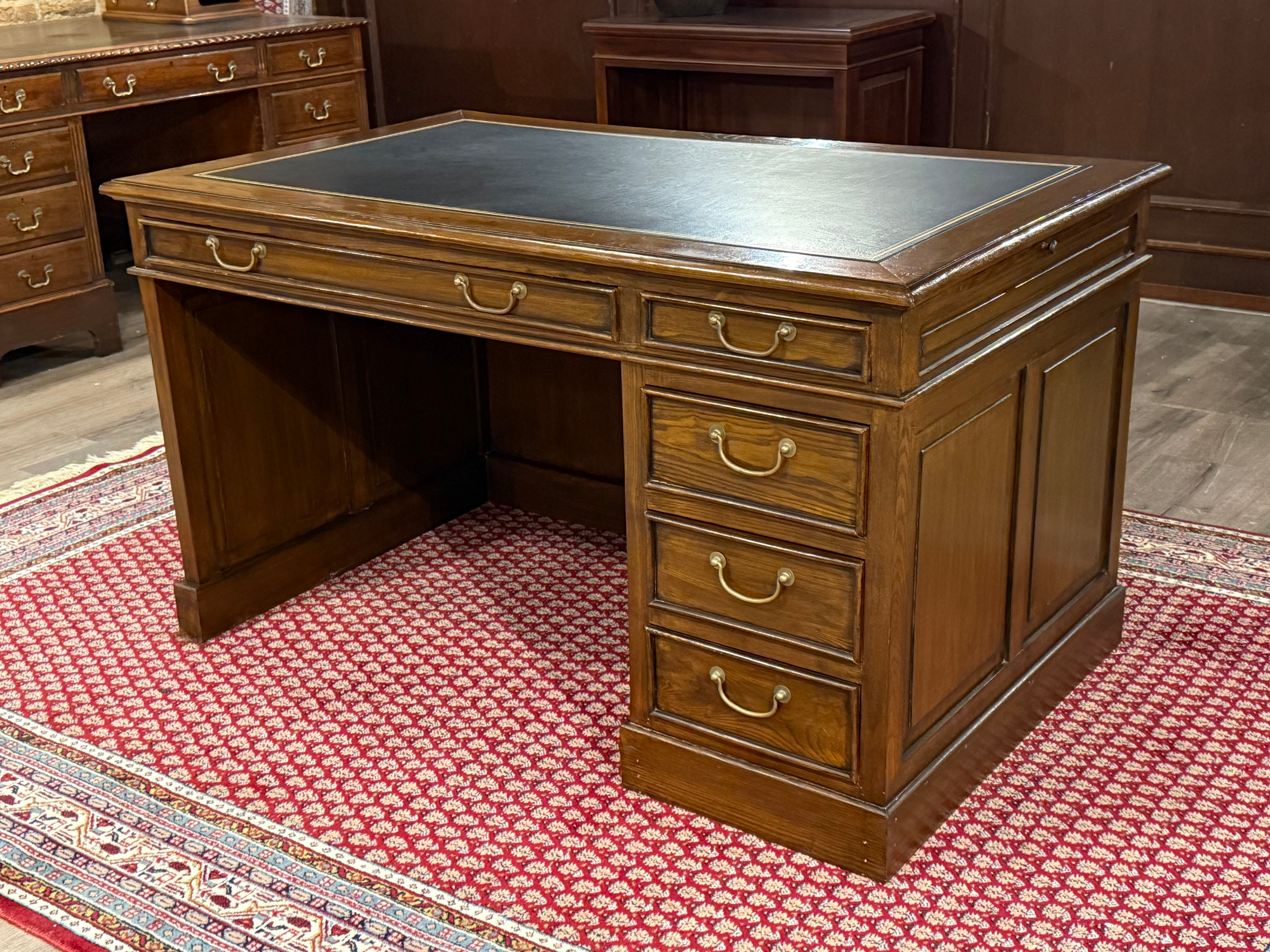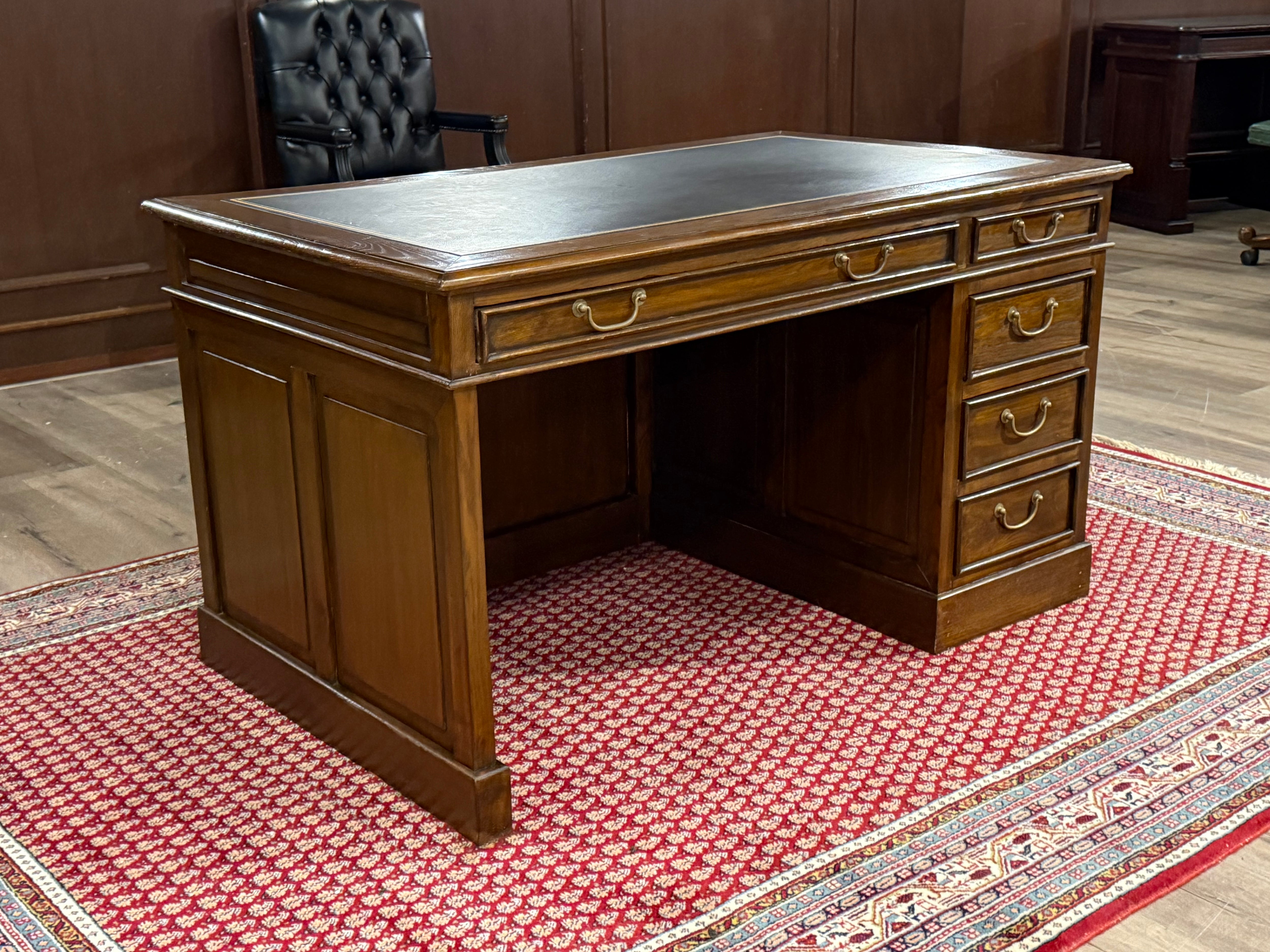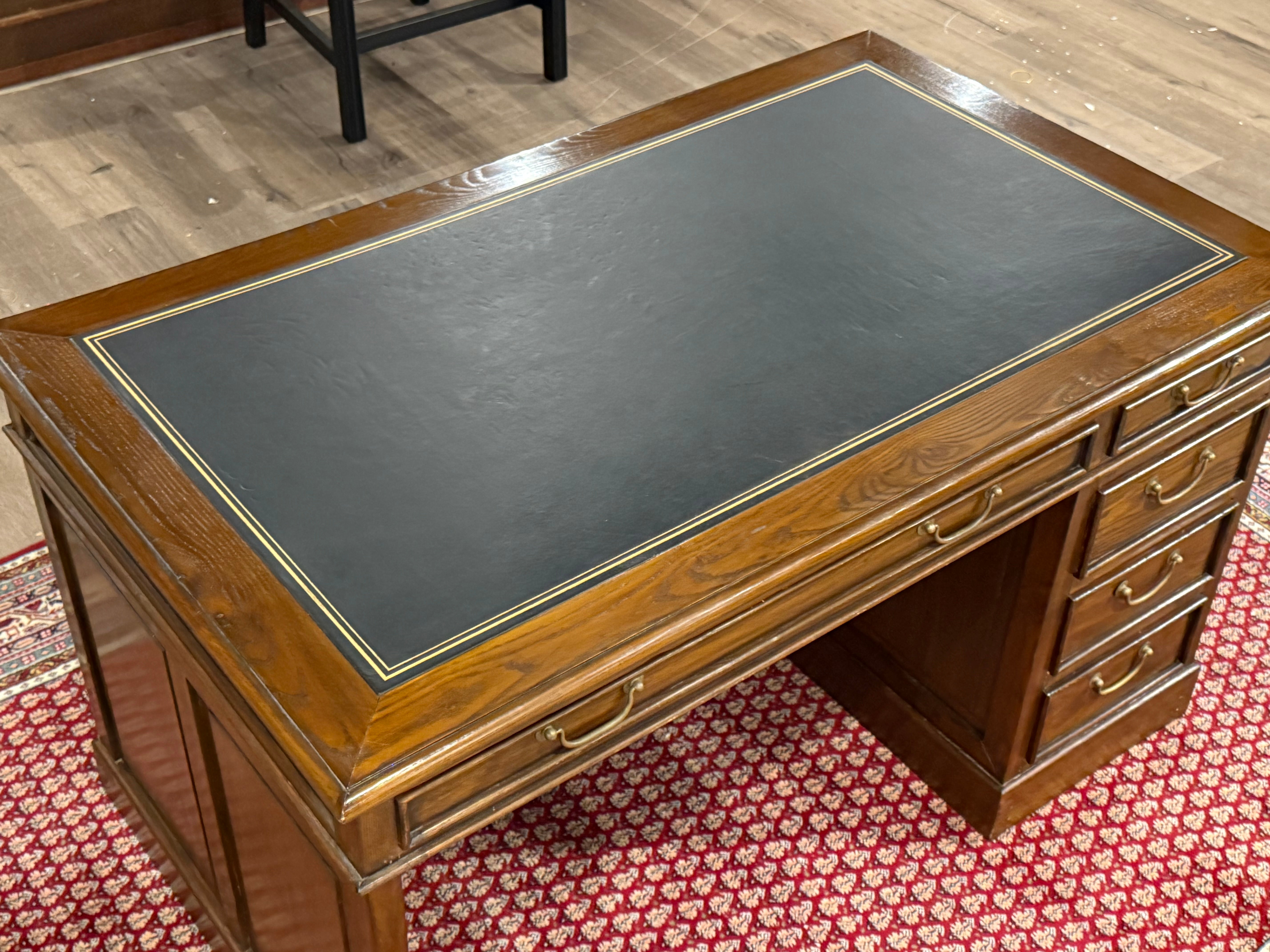 Vintage bureau, klassiek Engels bureau, eikenhout , zwart leer, 549