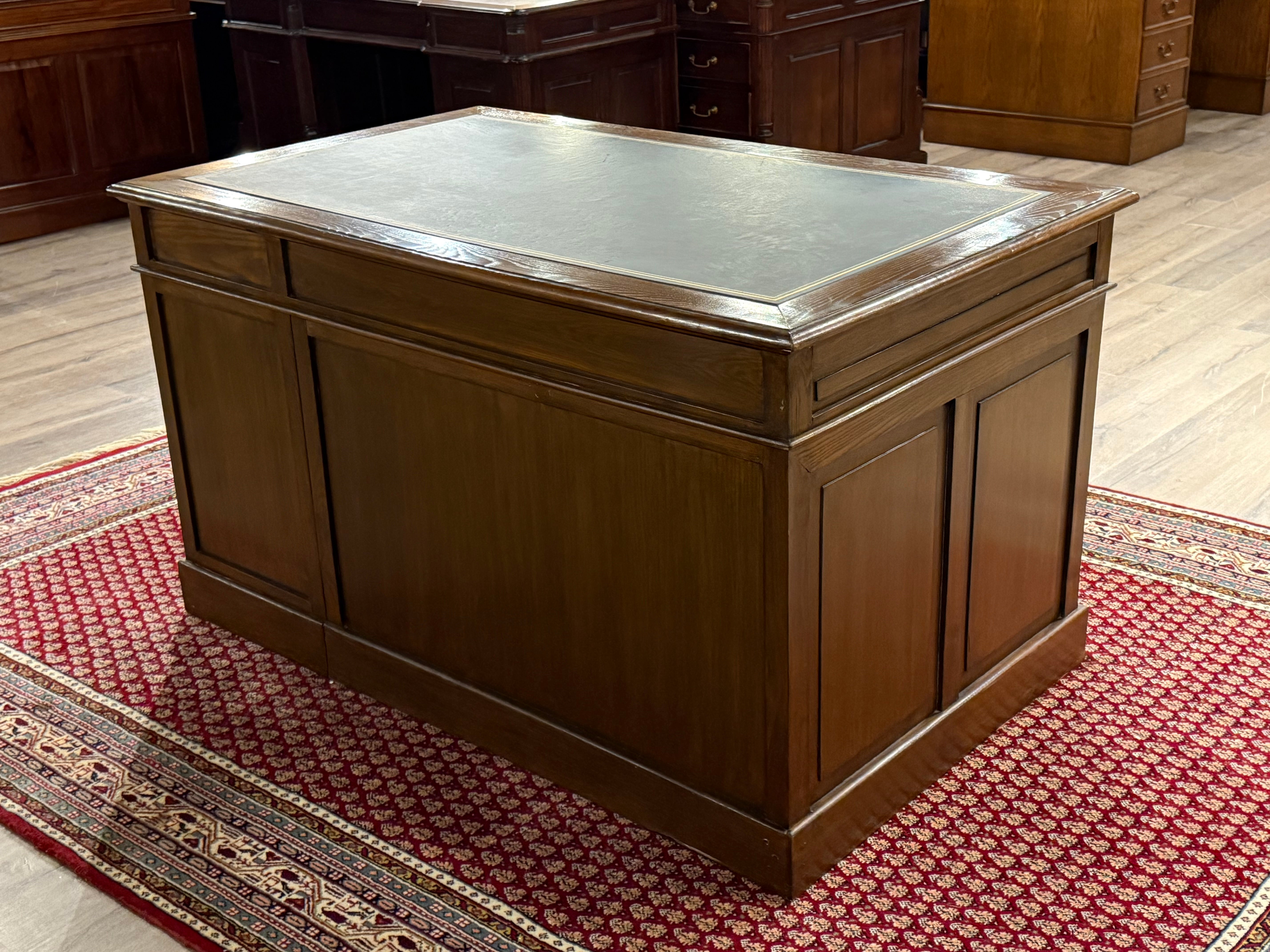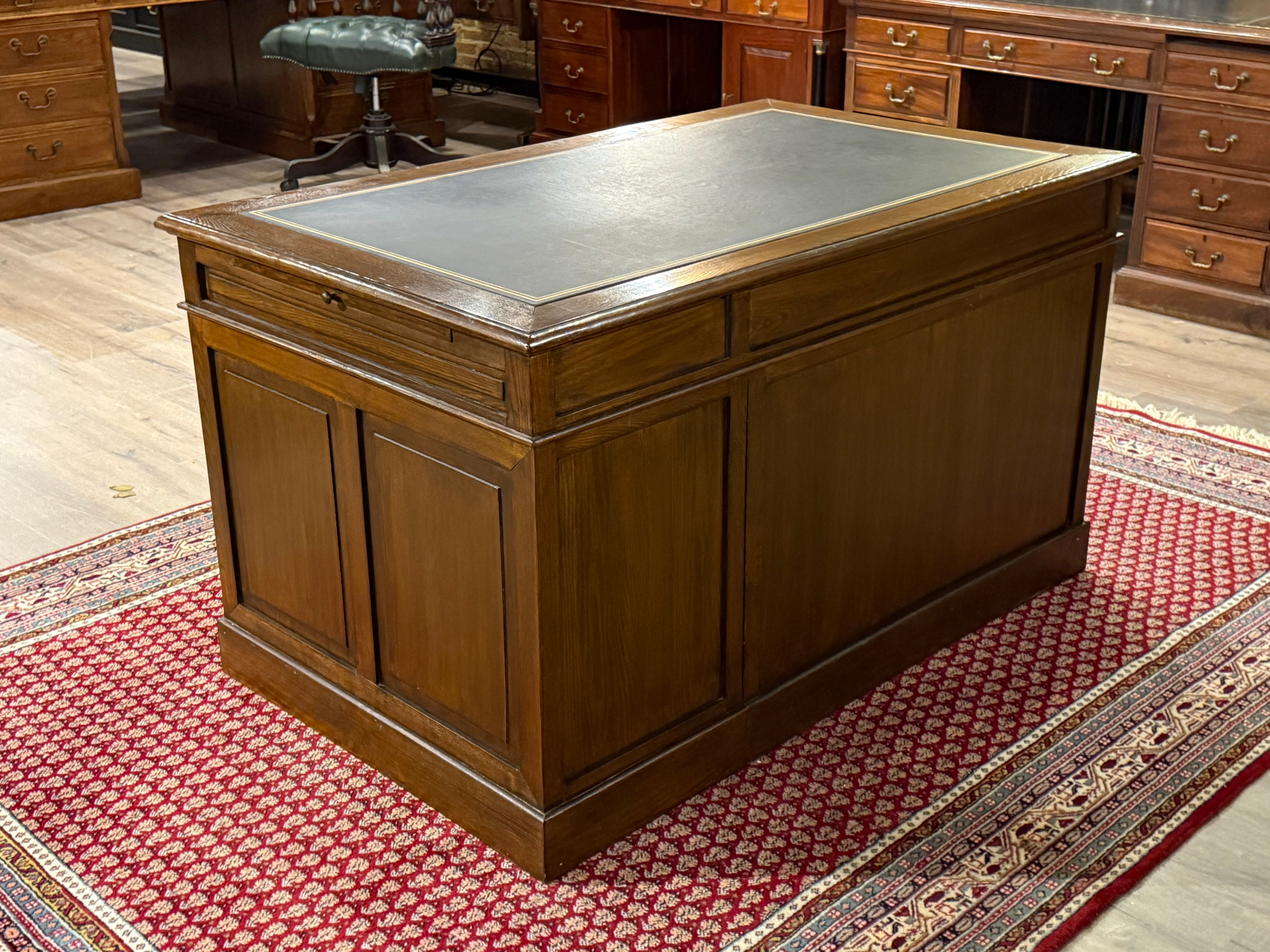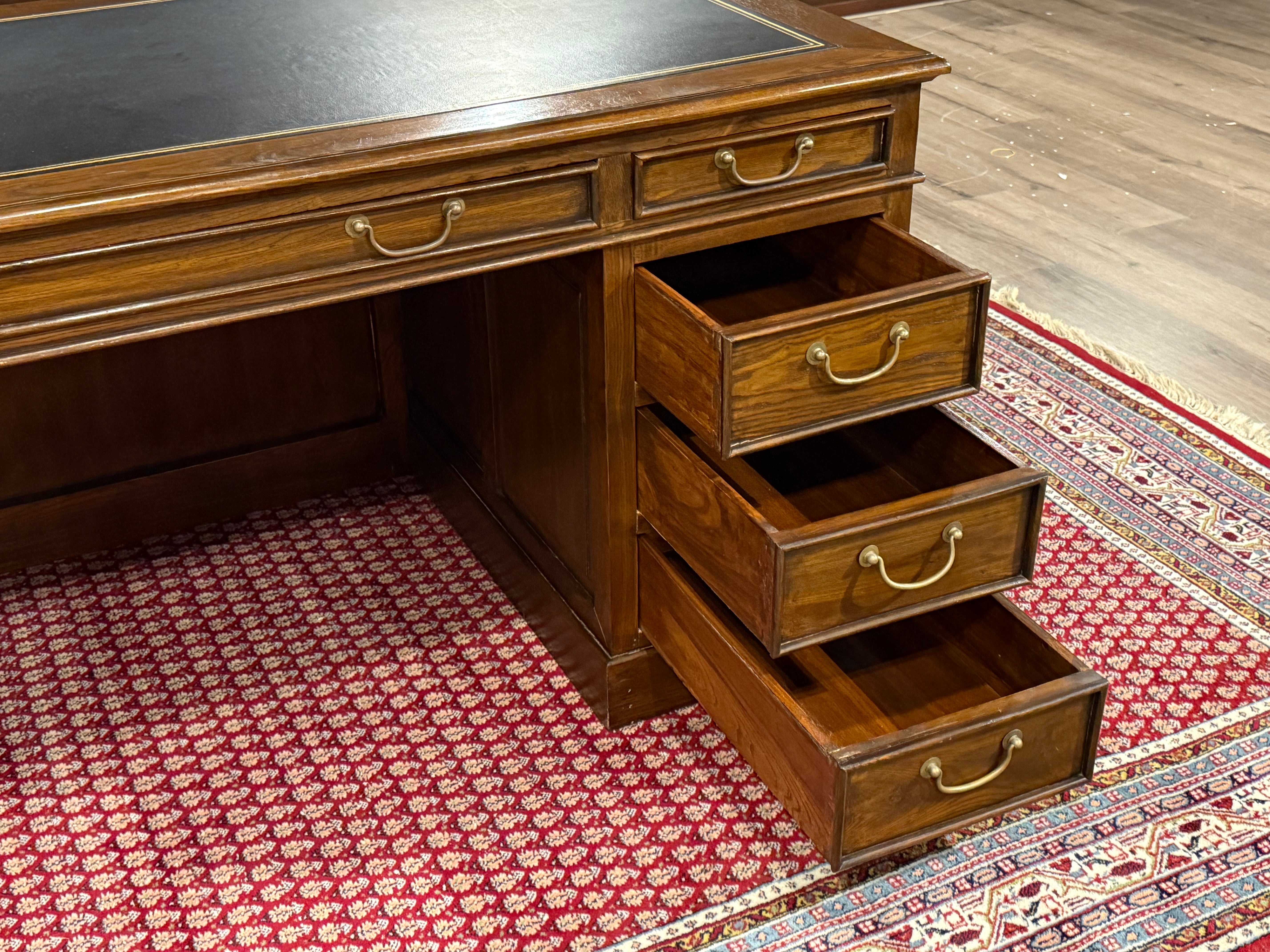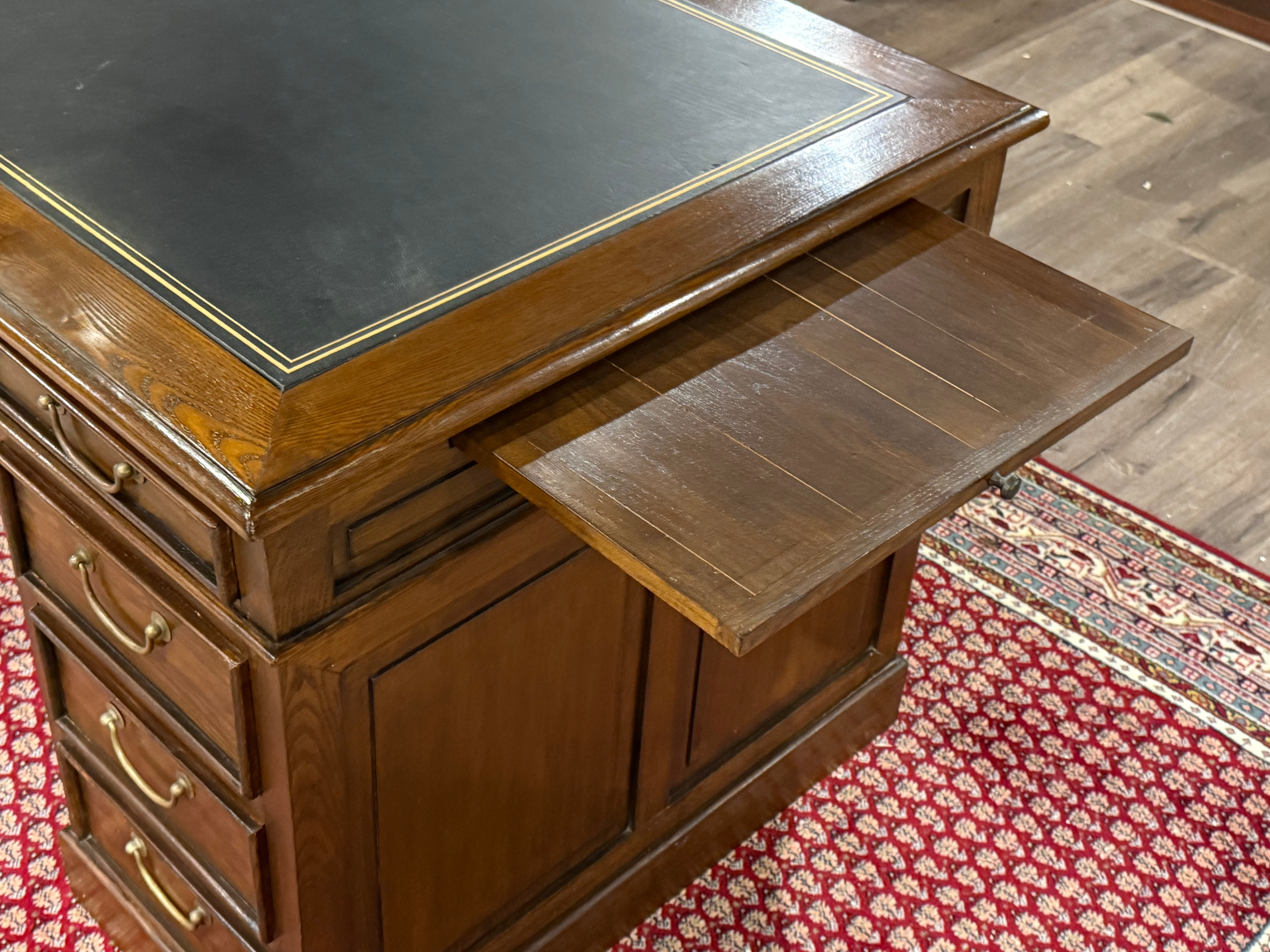 Vintage bureau, klassiek Engels bureau, eikenhout , zwart leer, 549