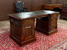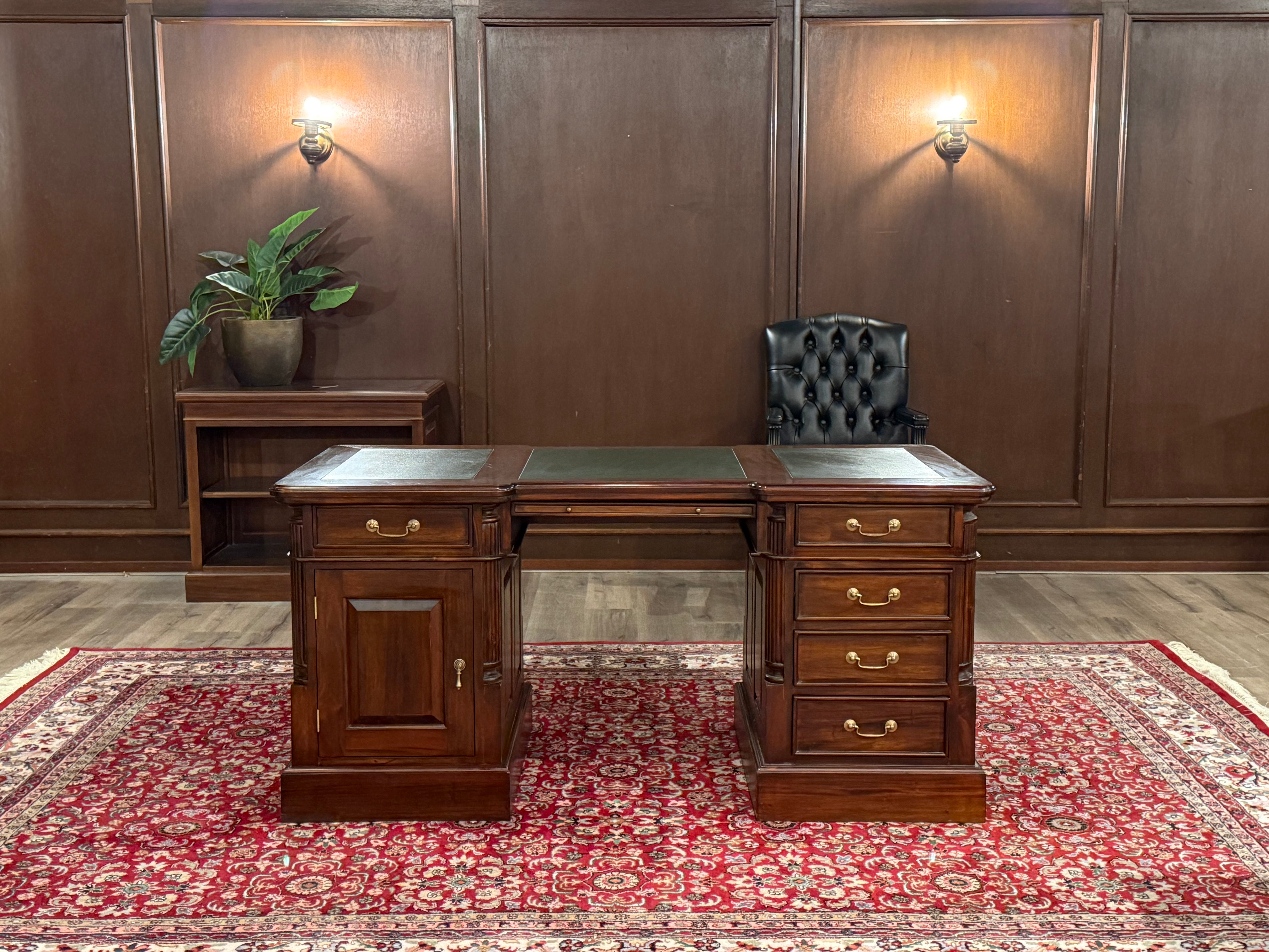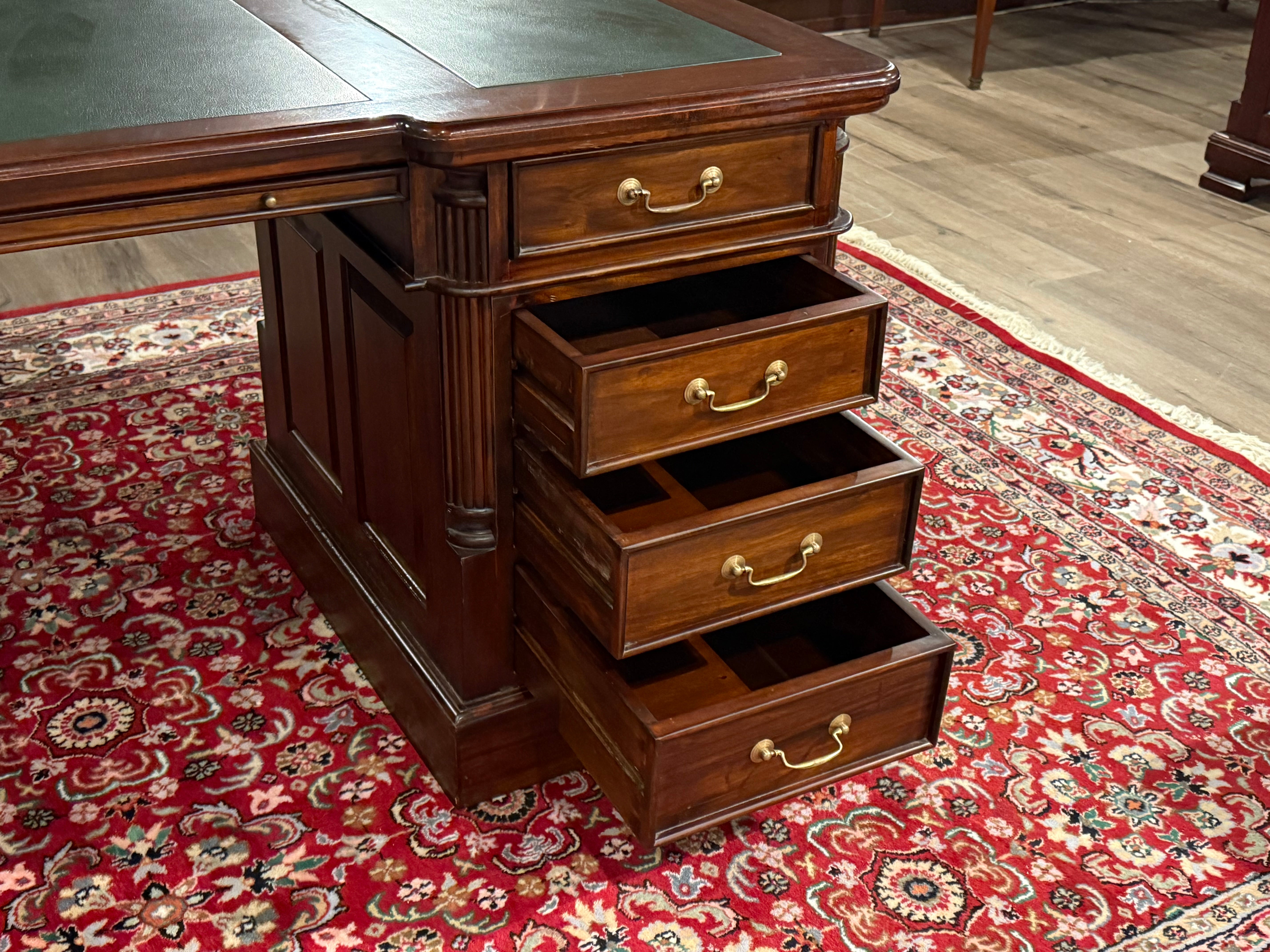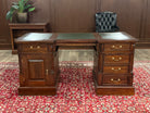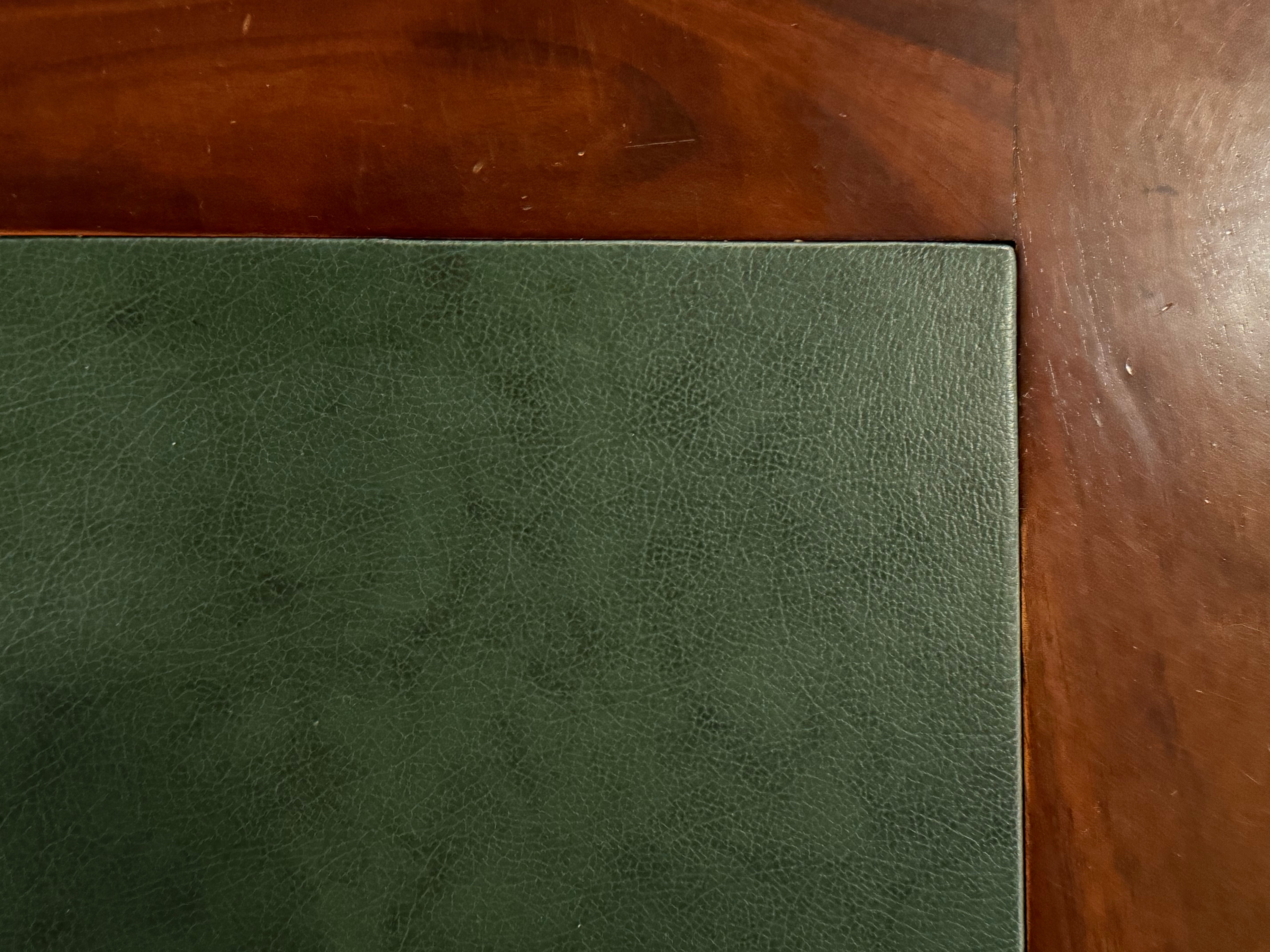 Vintage bureau, klassiek Engels bureau, mahoniehout, groen leer, 569