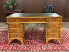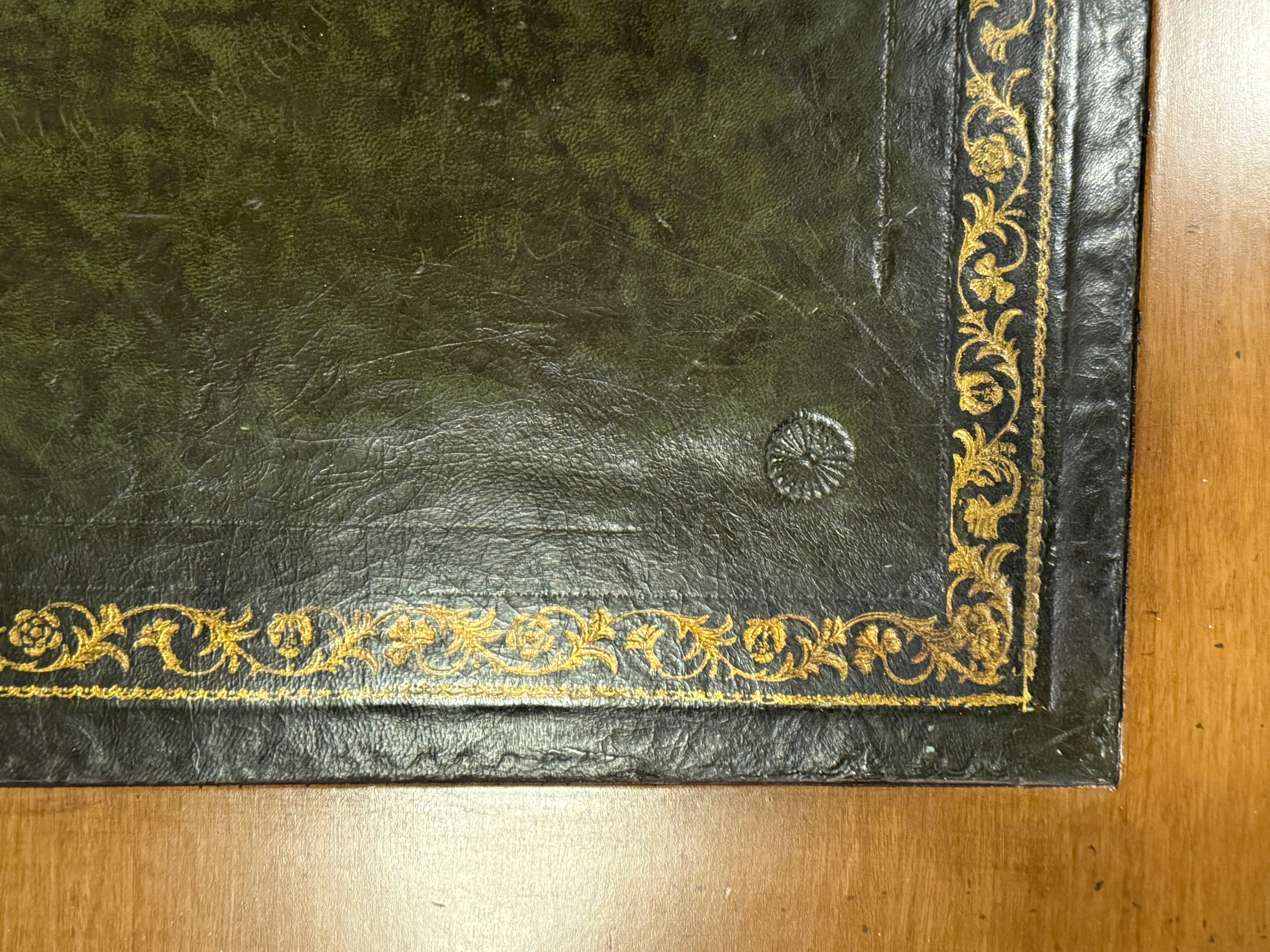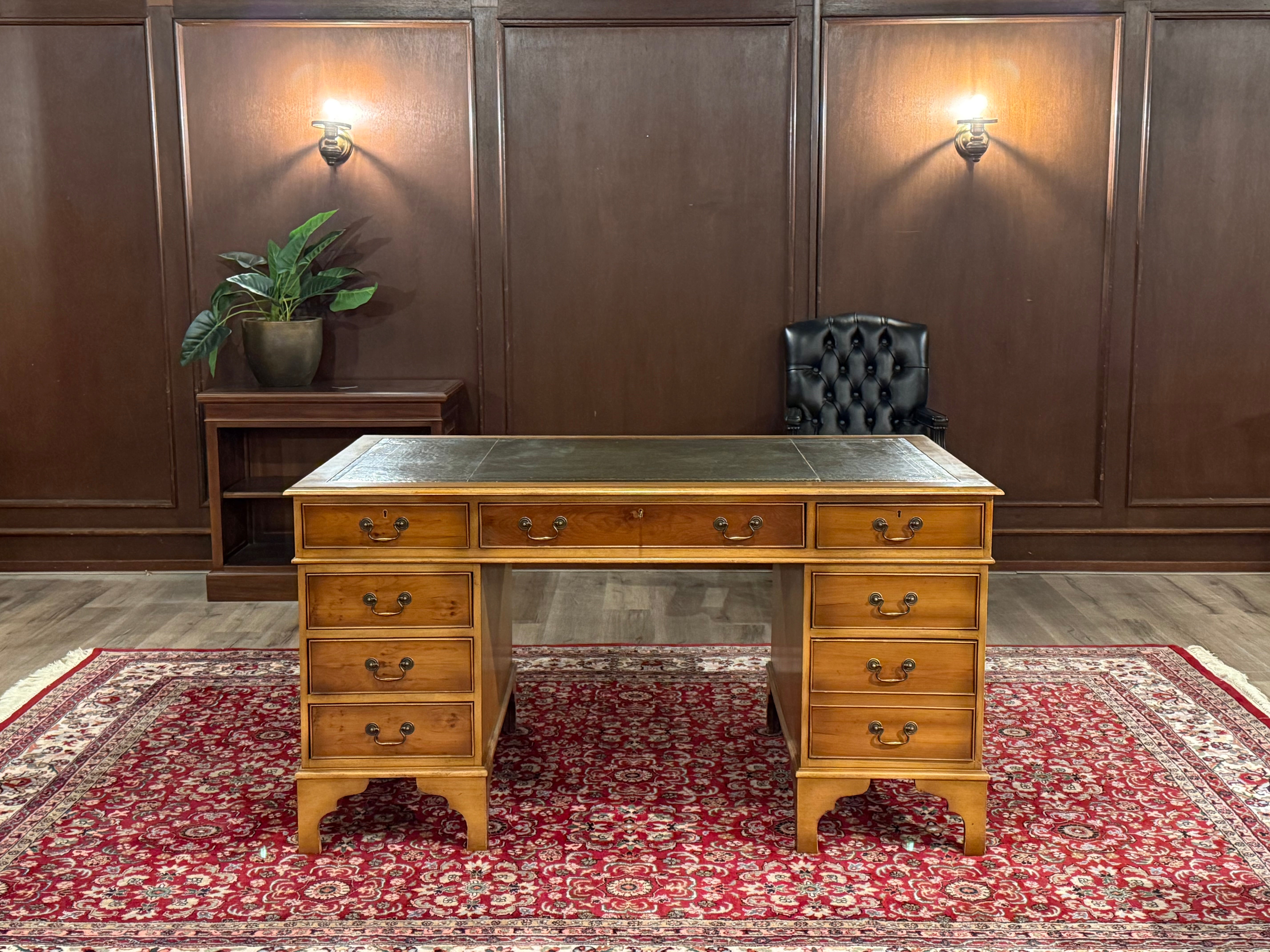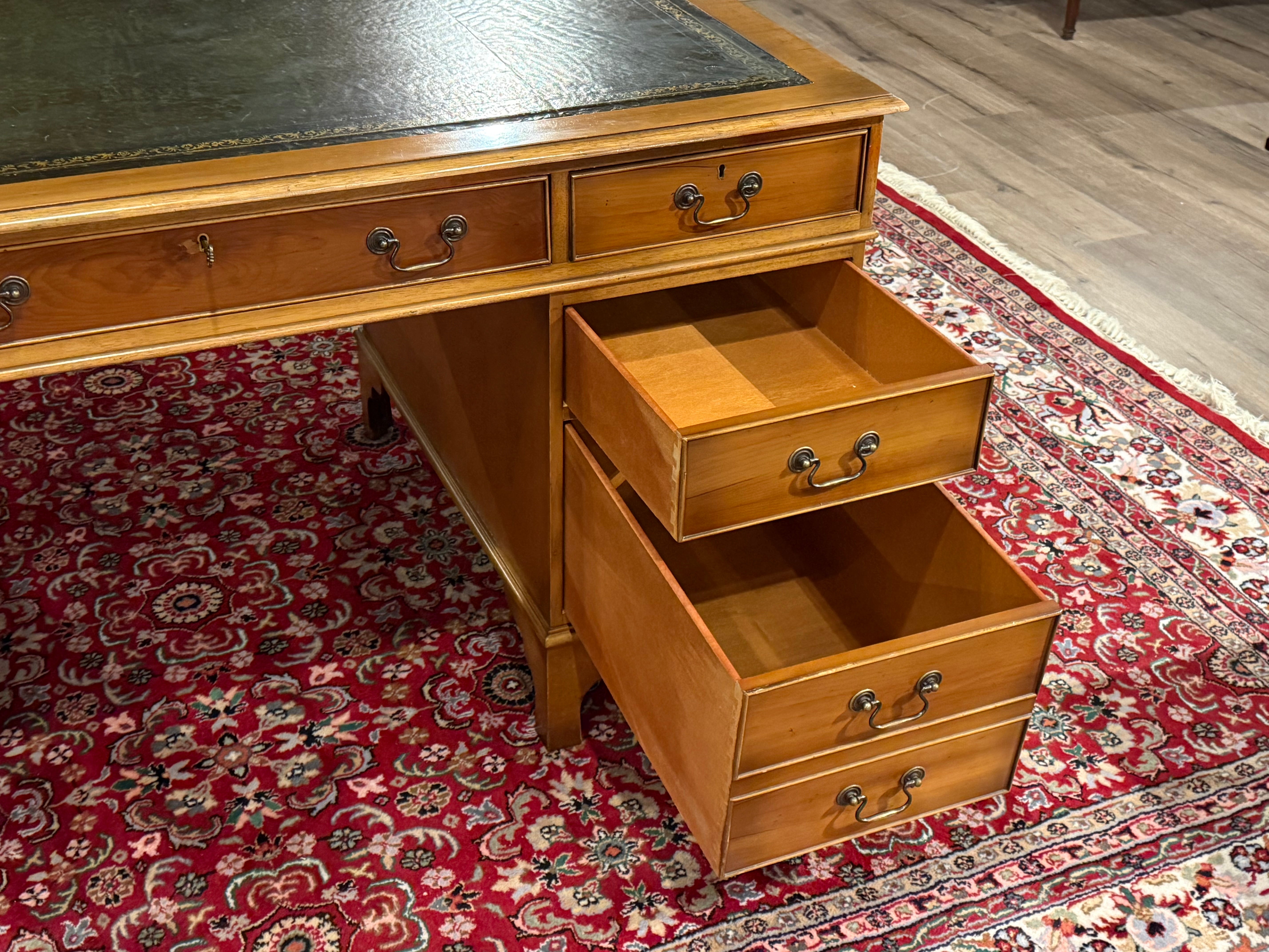 Vintage bureau, klassiek Engels bureau, mahoniehout, groen leer, 570