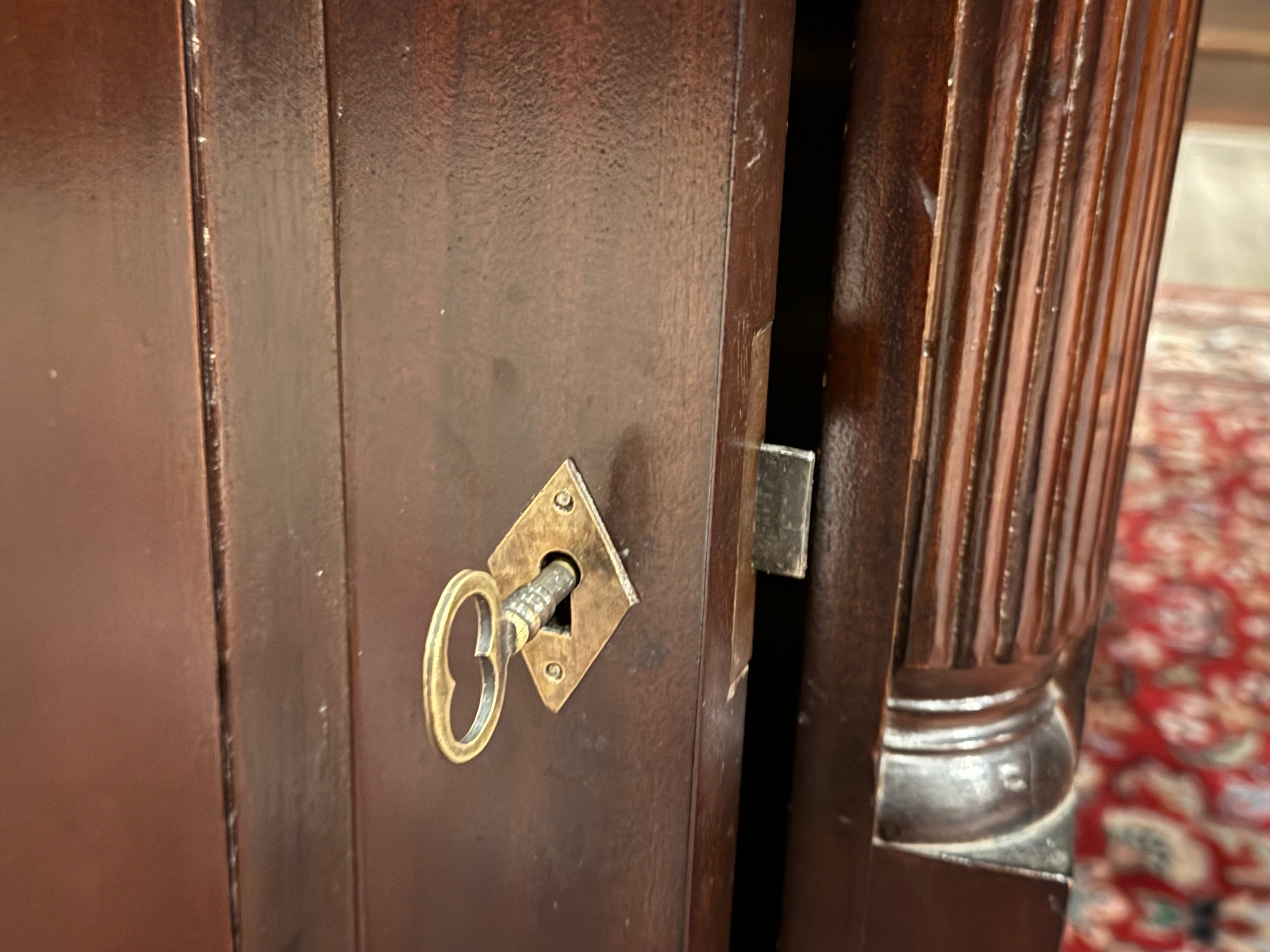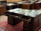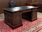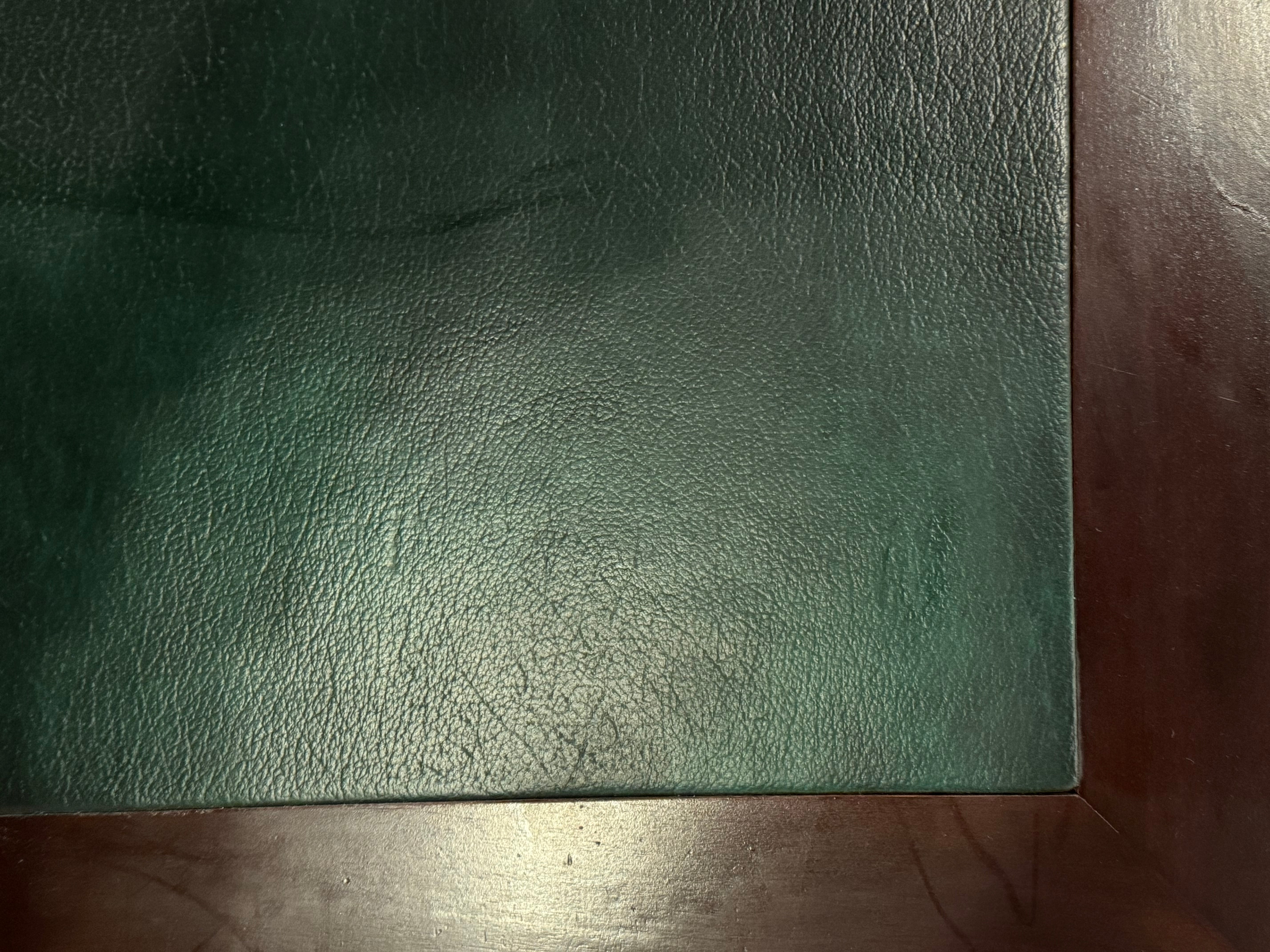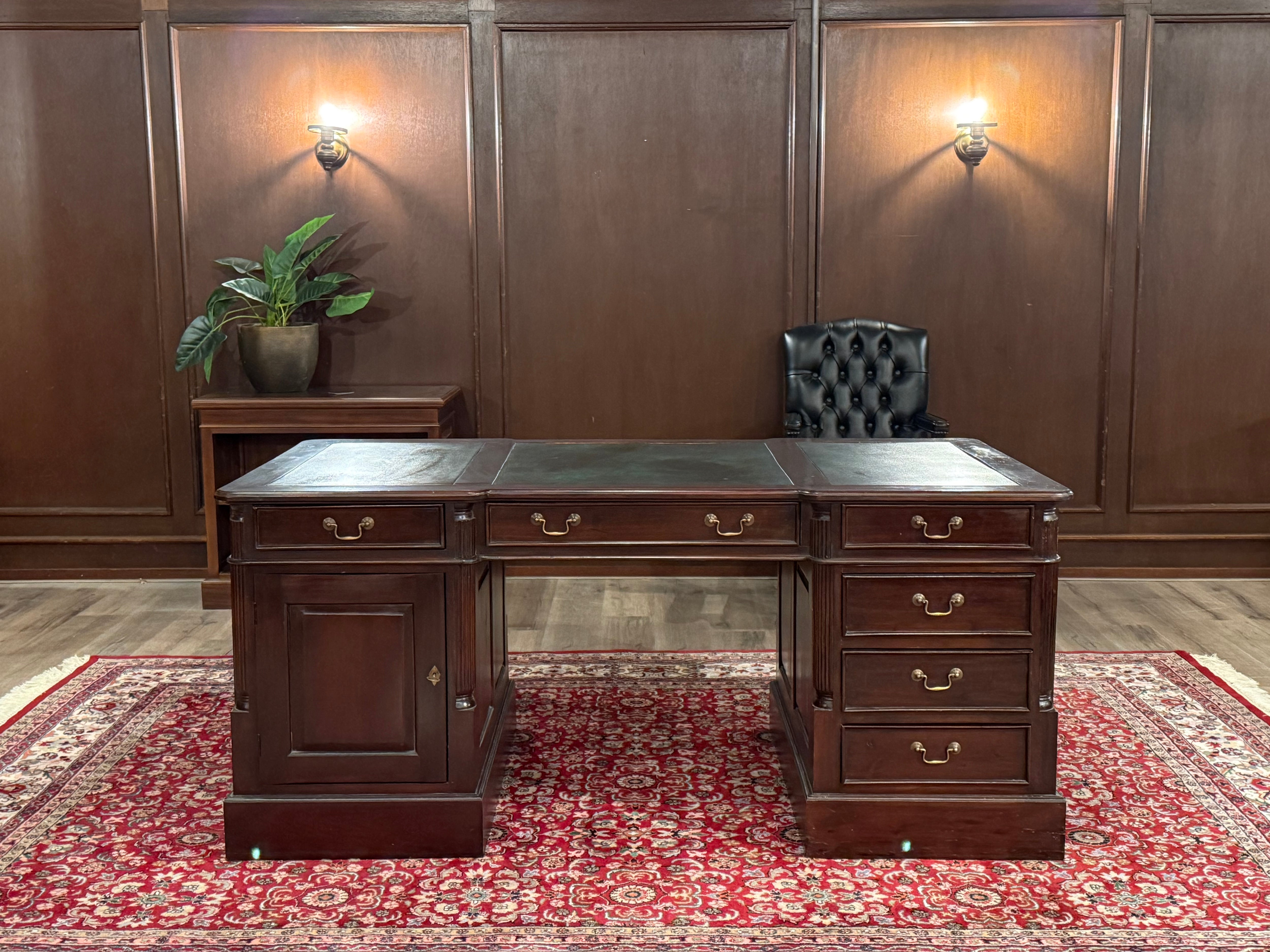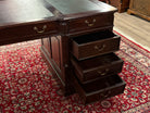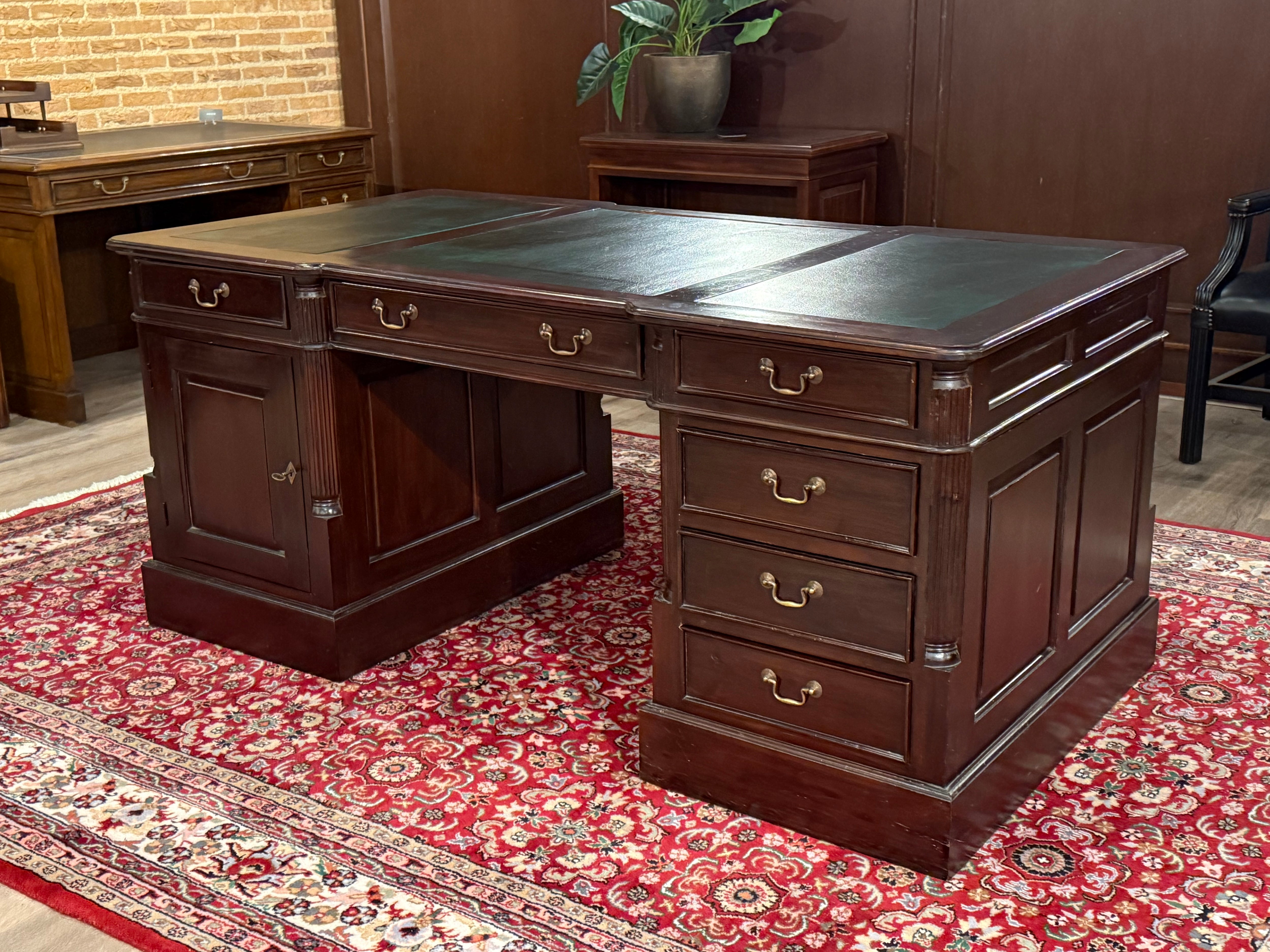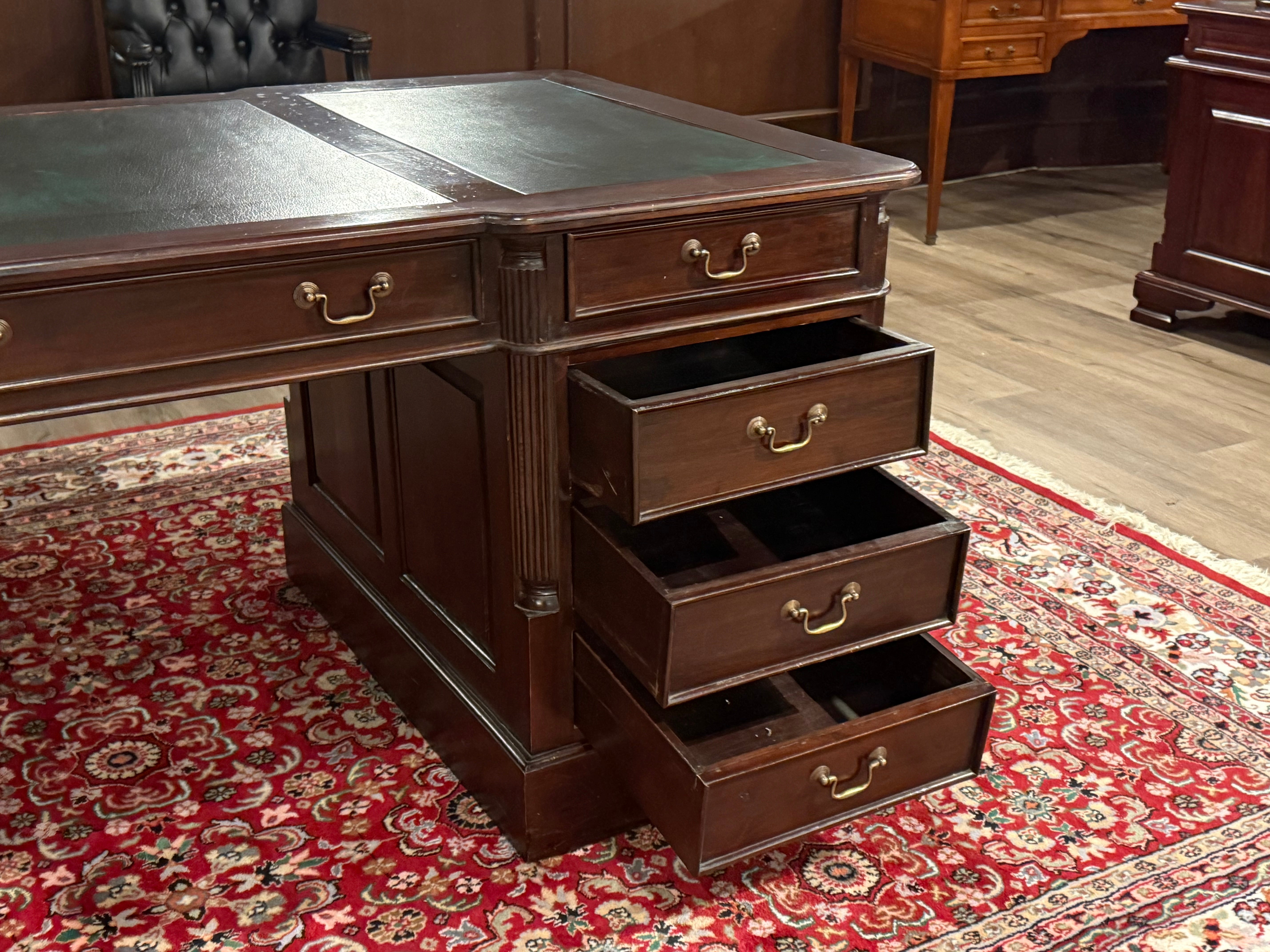 Vintage bureau, klassiek Engels bureau, mahoniehout, groen leer, 573