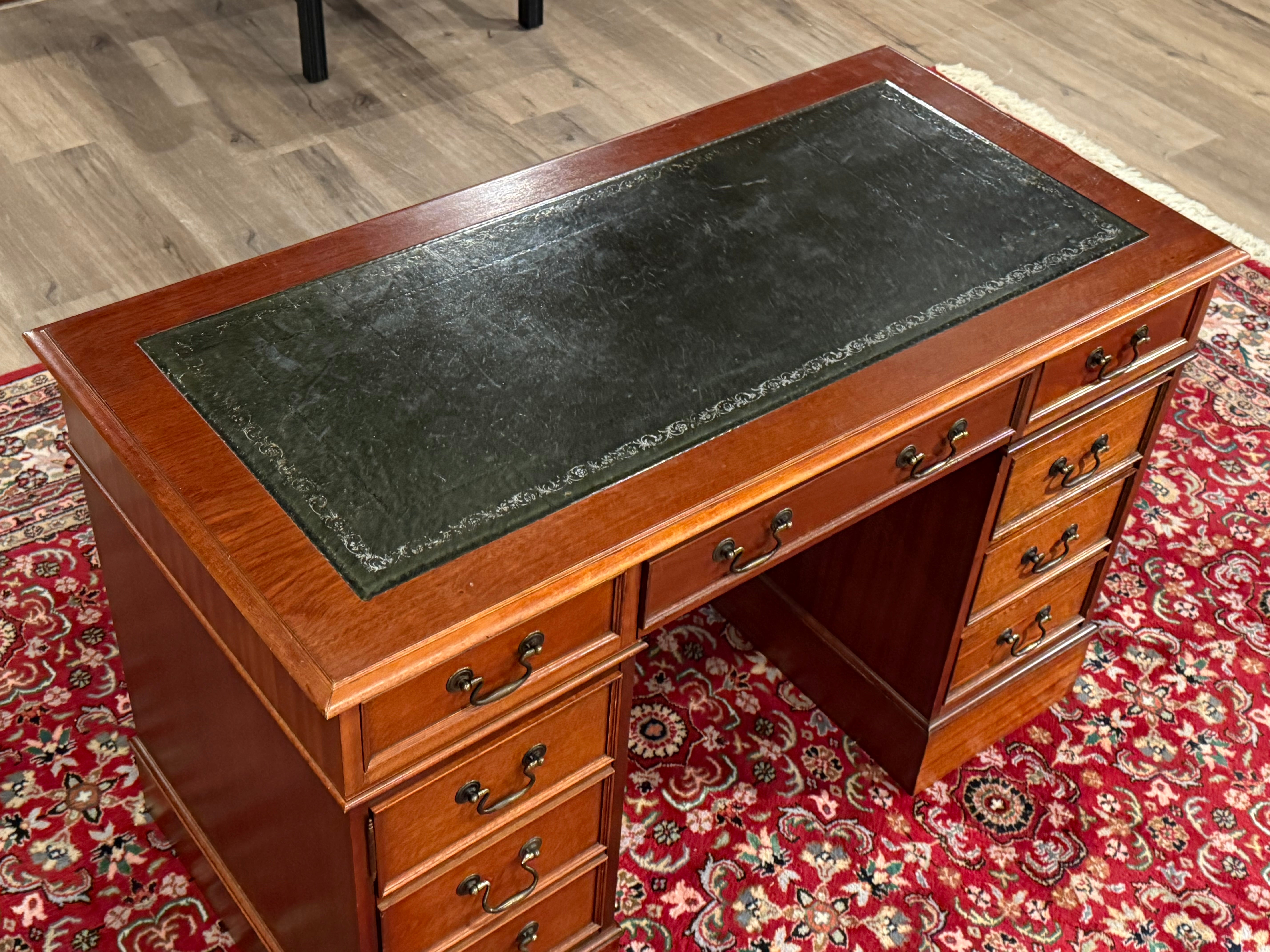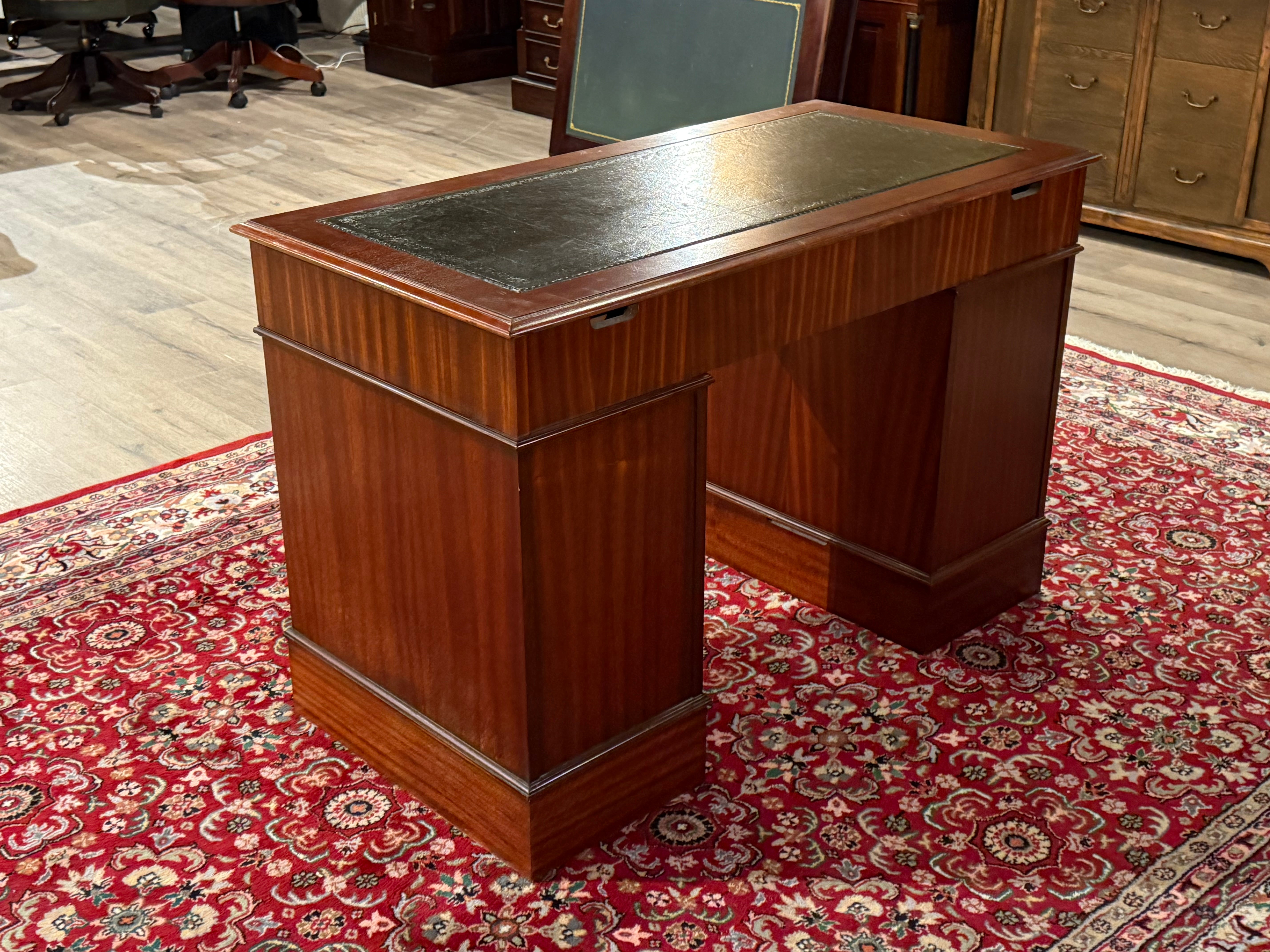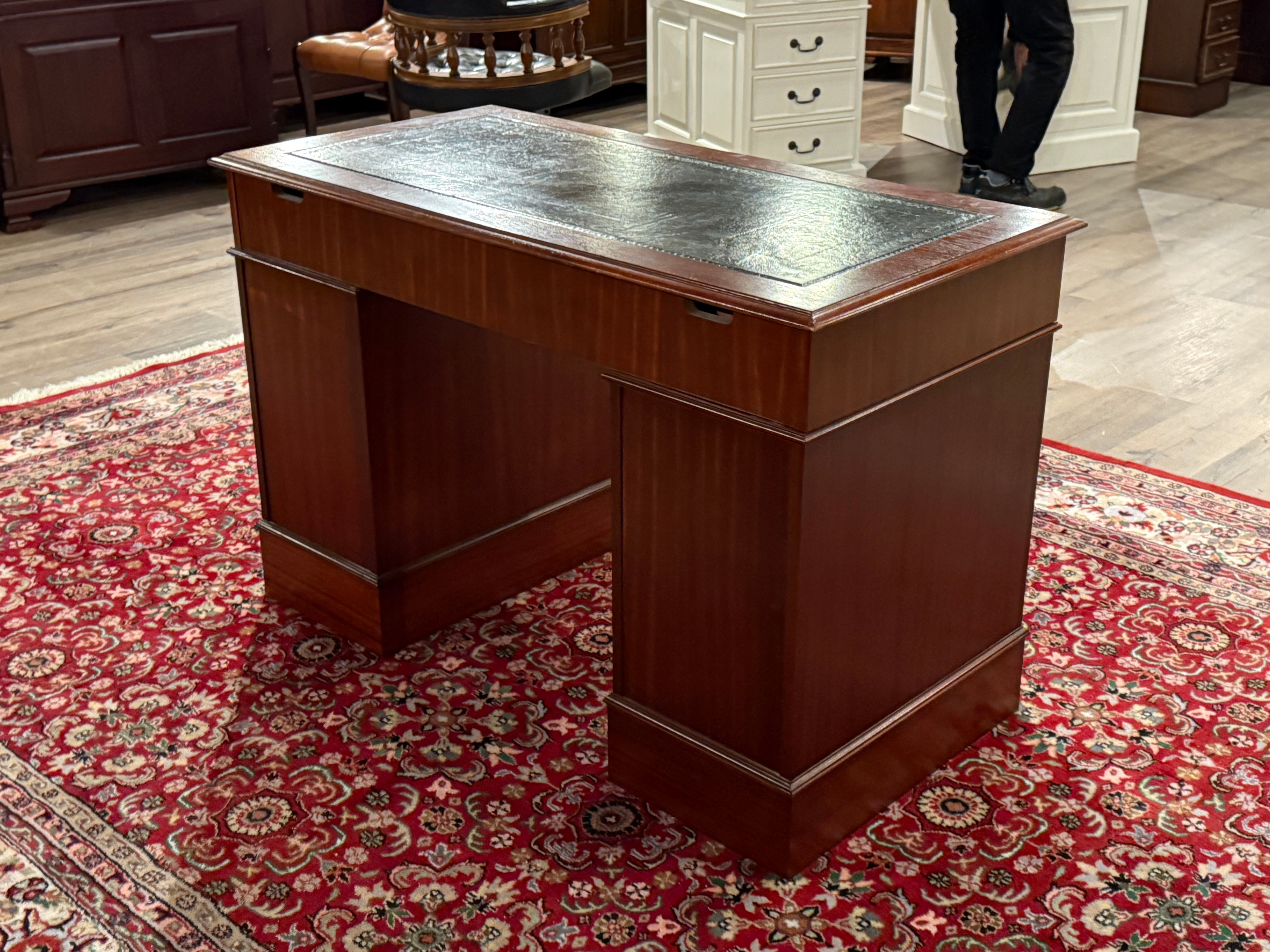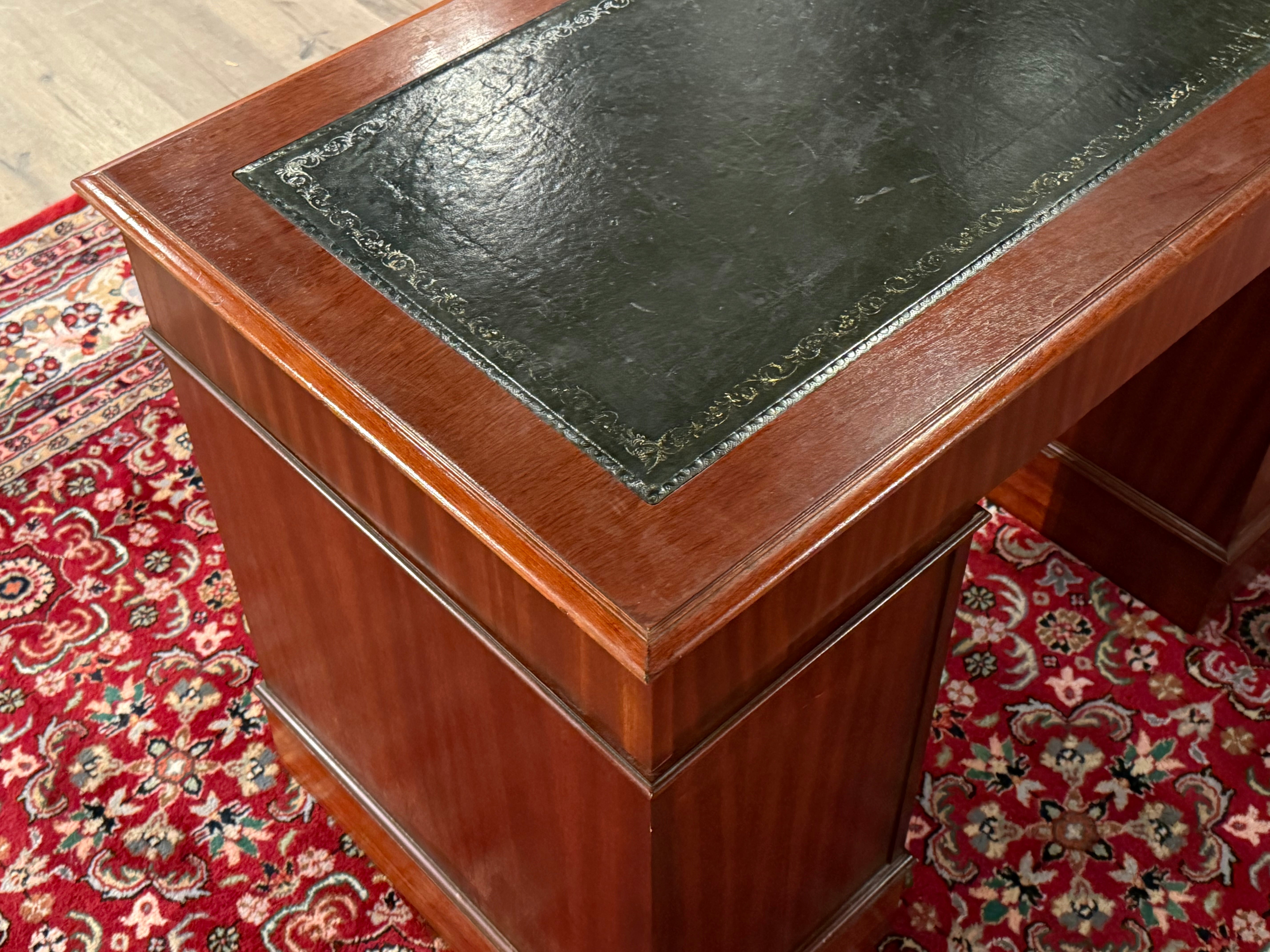 Vintage bureau, klassiek Engels bureau, mahoniehout, groen leer, 584