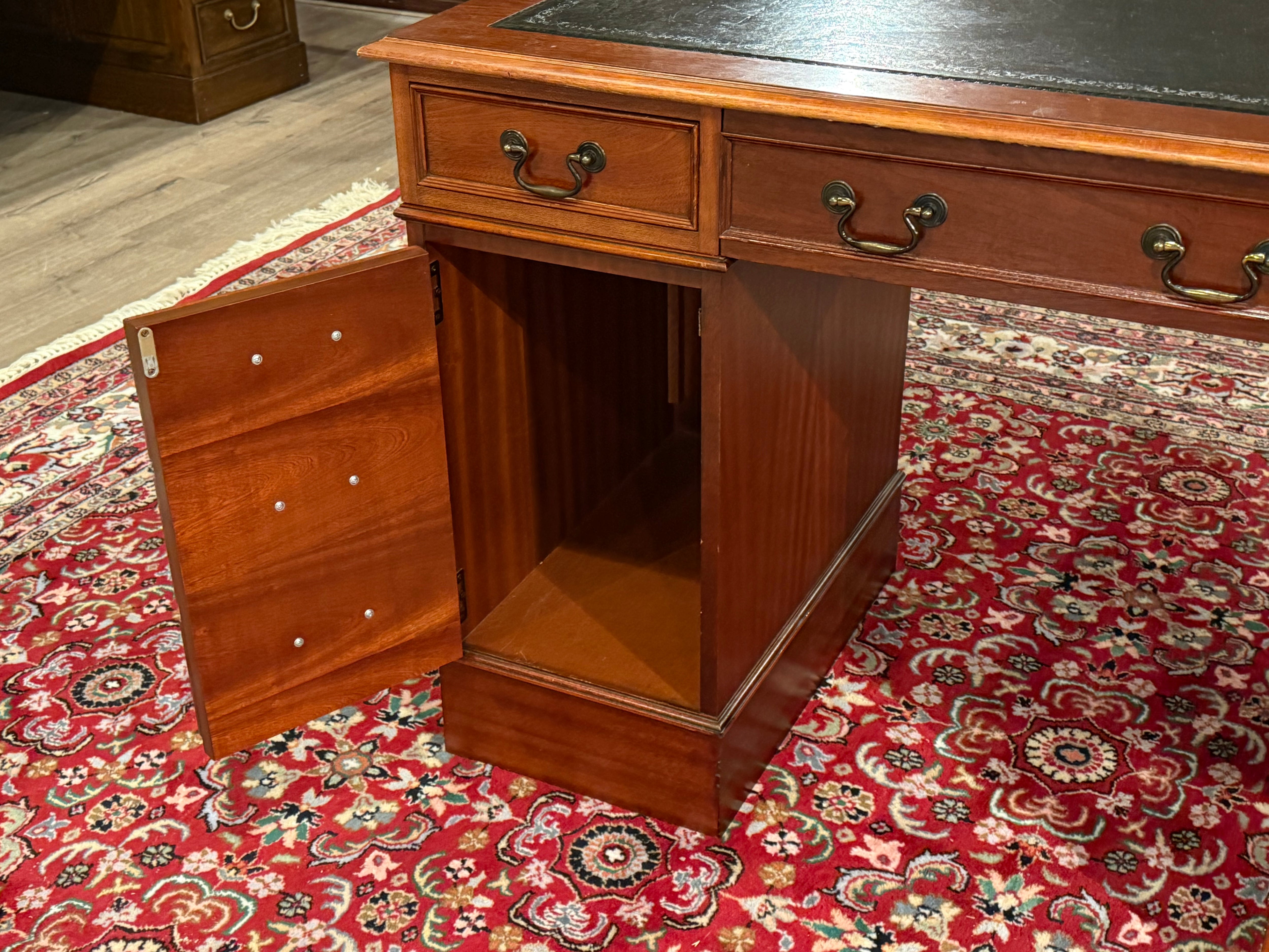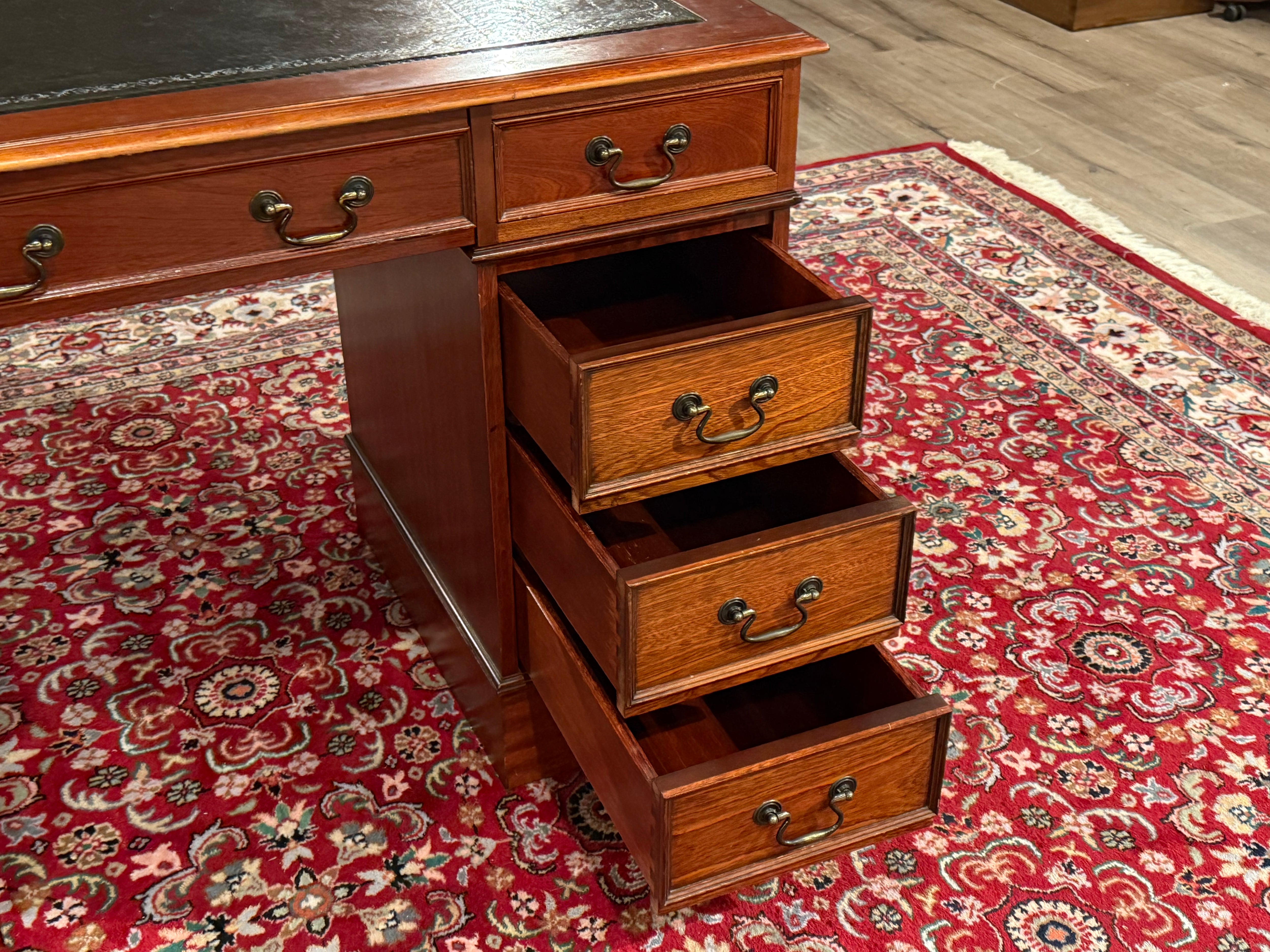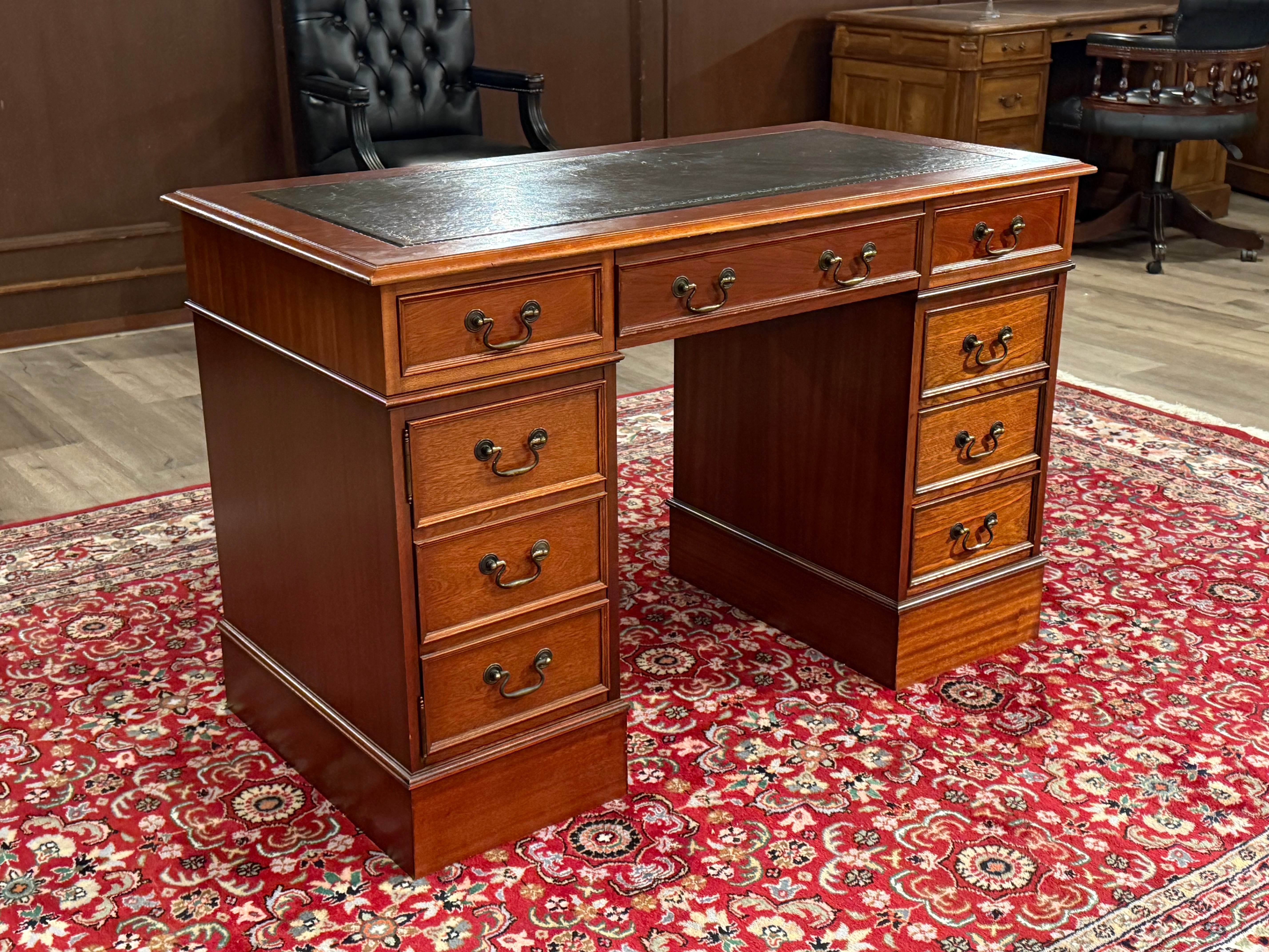 Vintage bureau, klassiek Engels bureau, mahoniehout, groen leer, 584