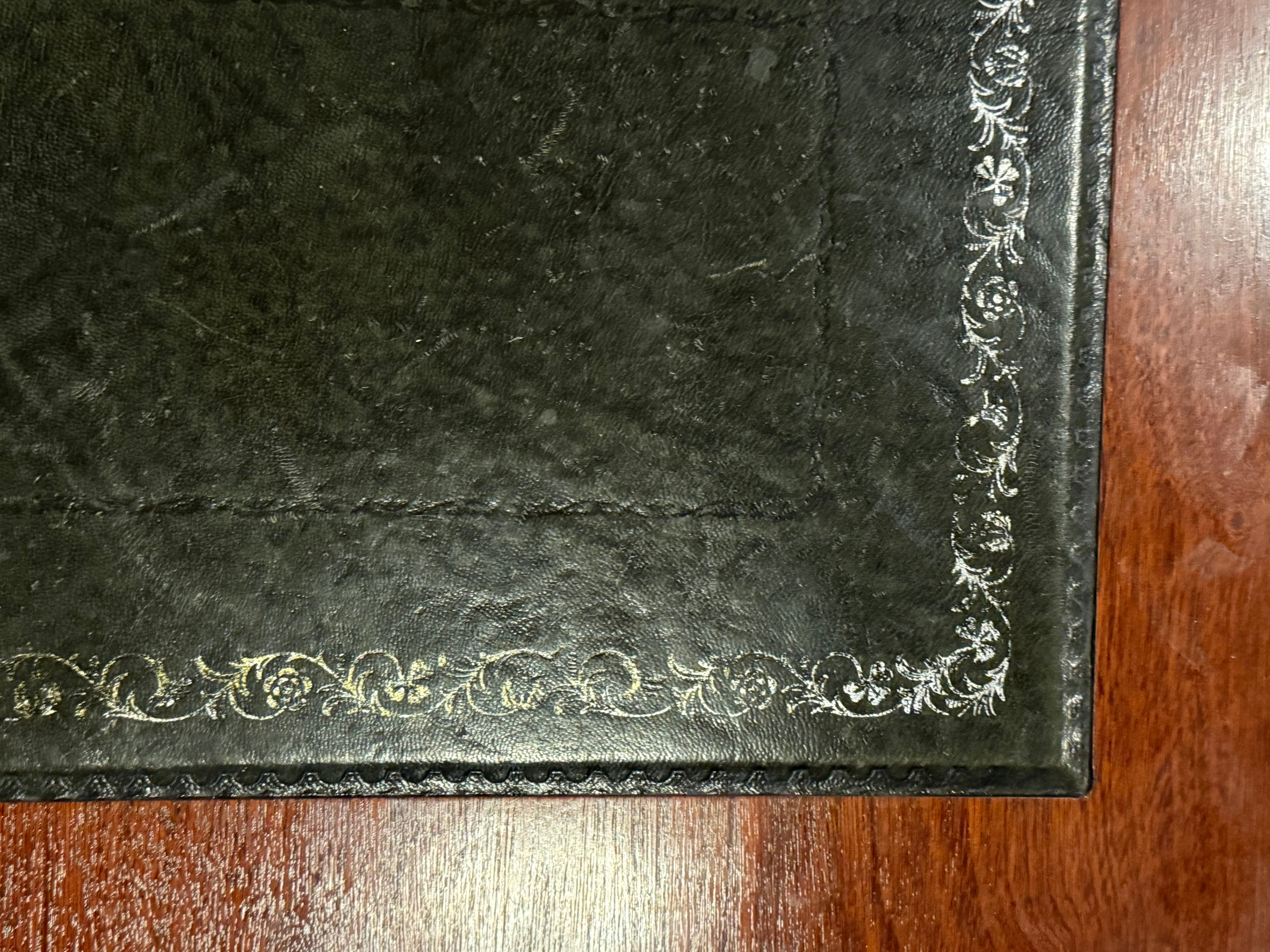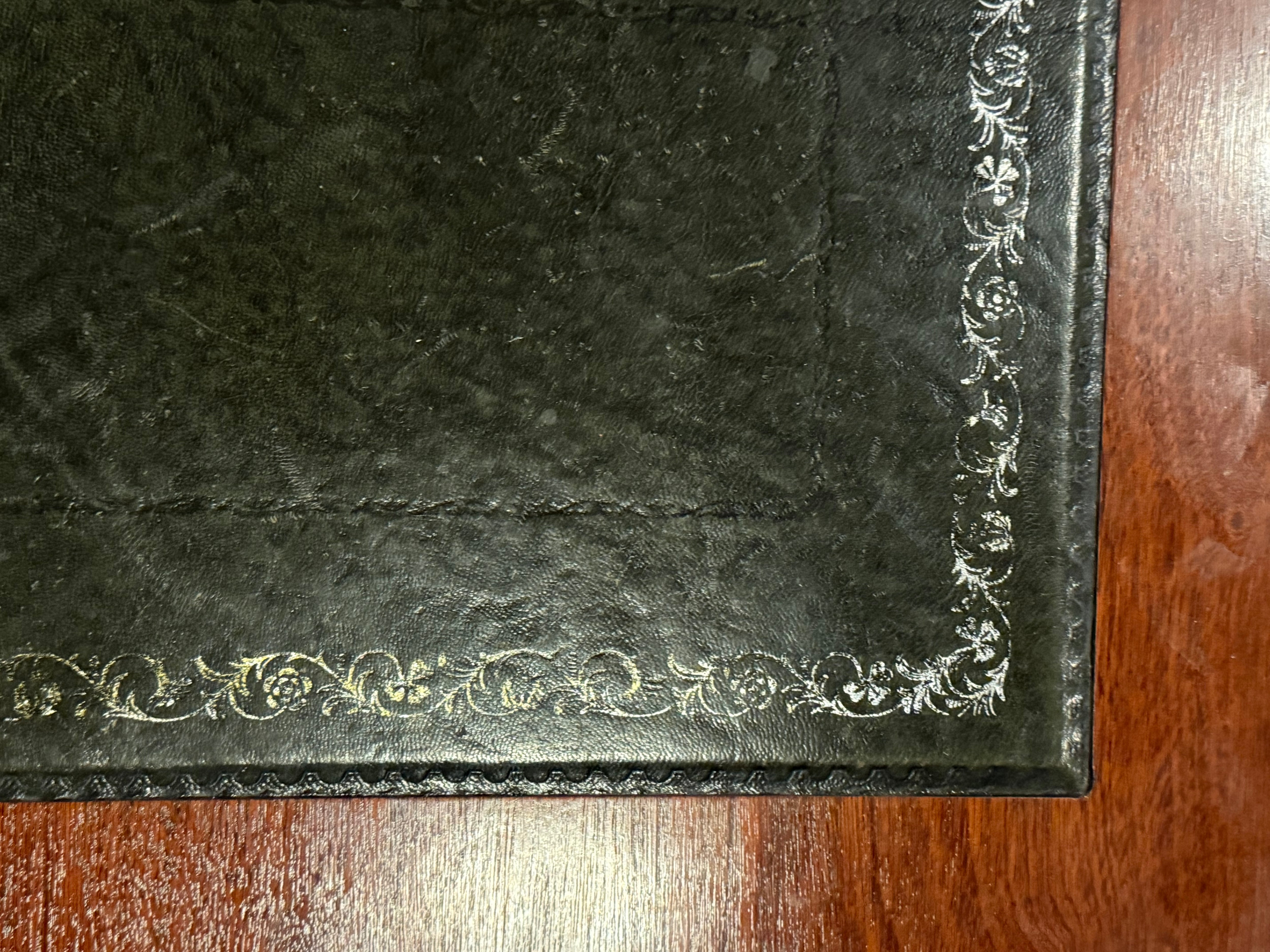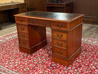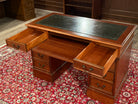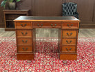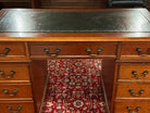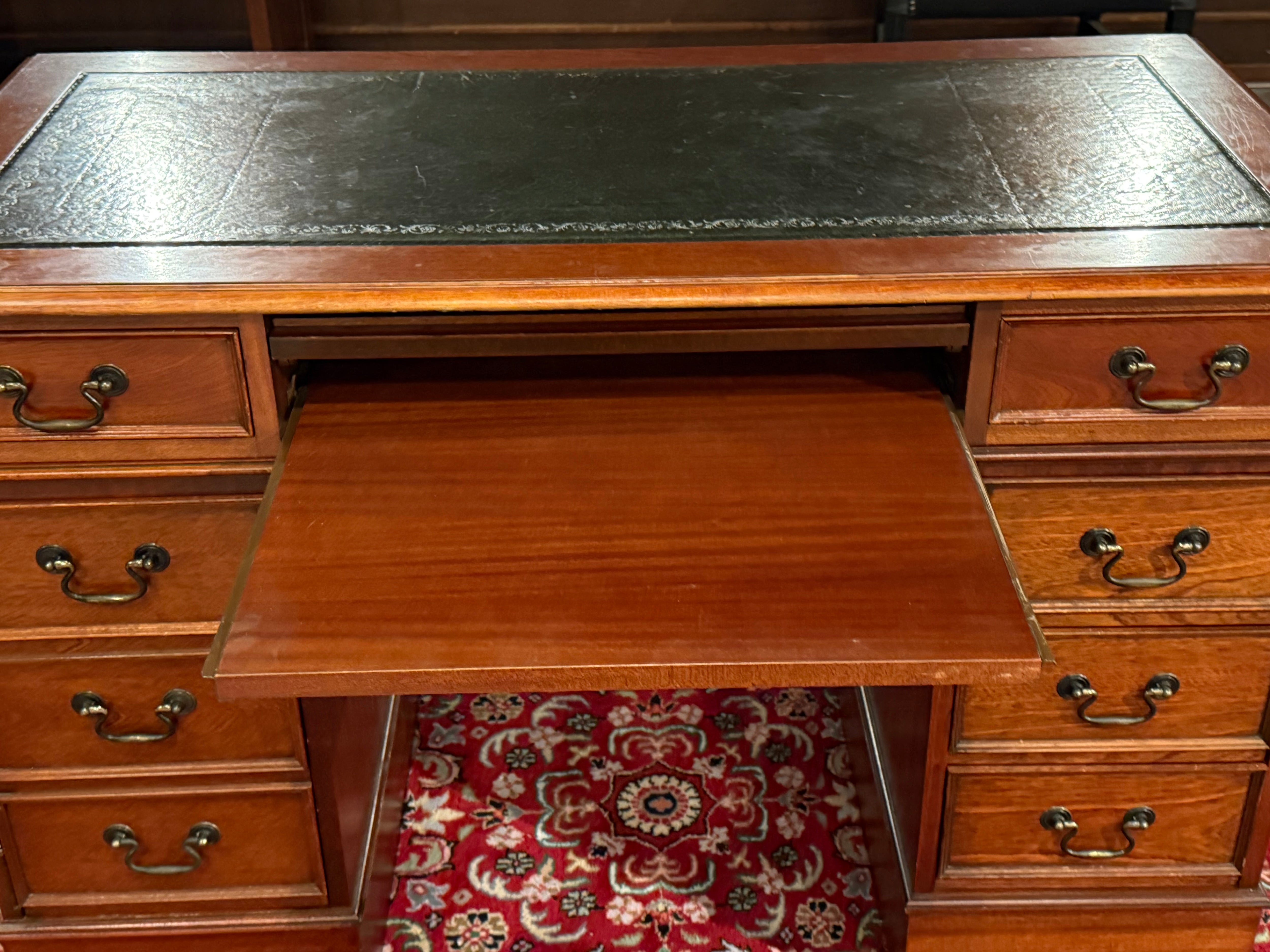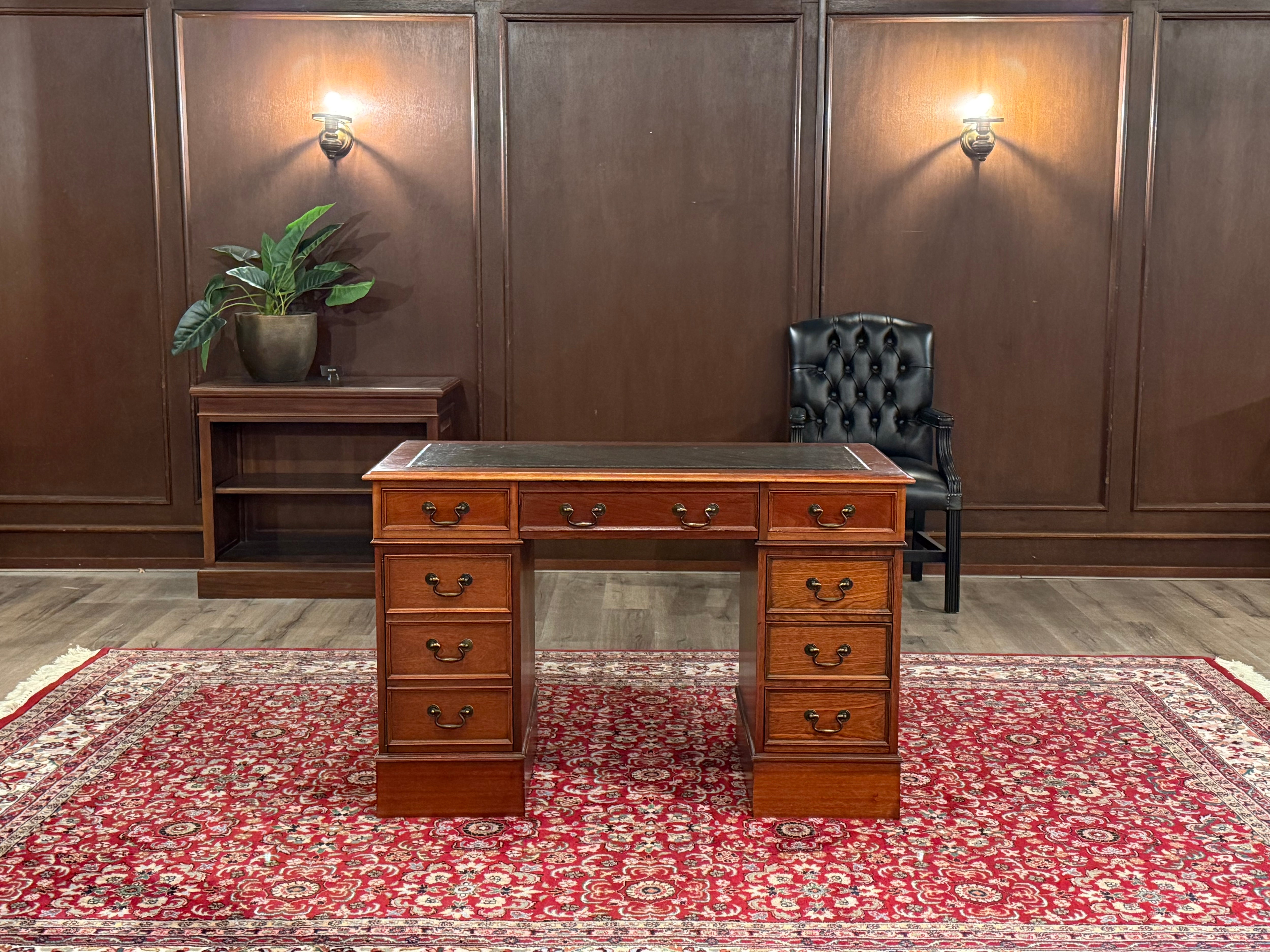 Vintage bureau, klassiek Engels bureau, mahoniehout, groen leer, 584