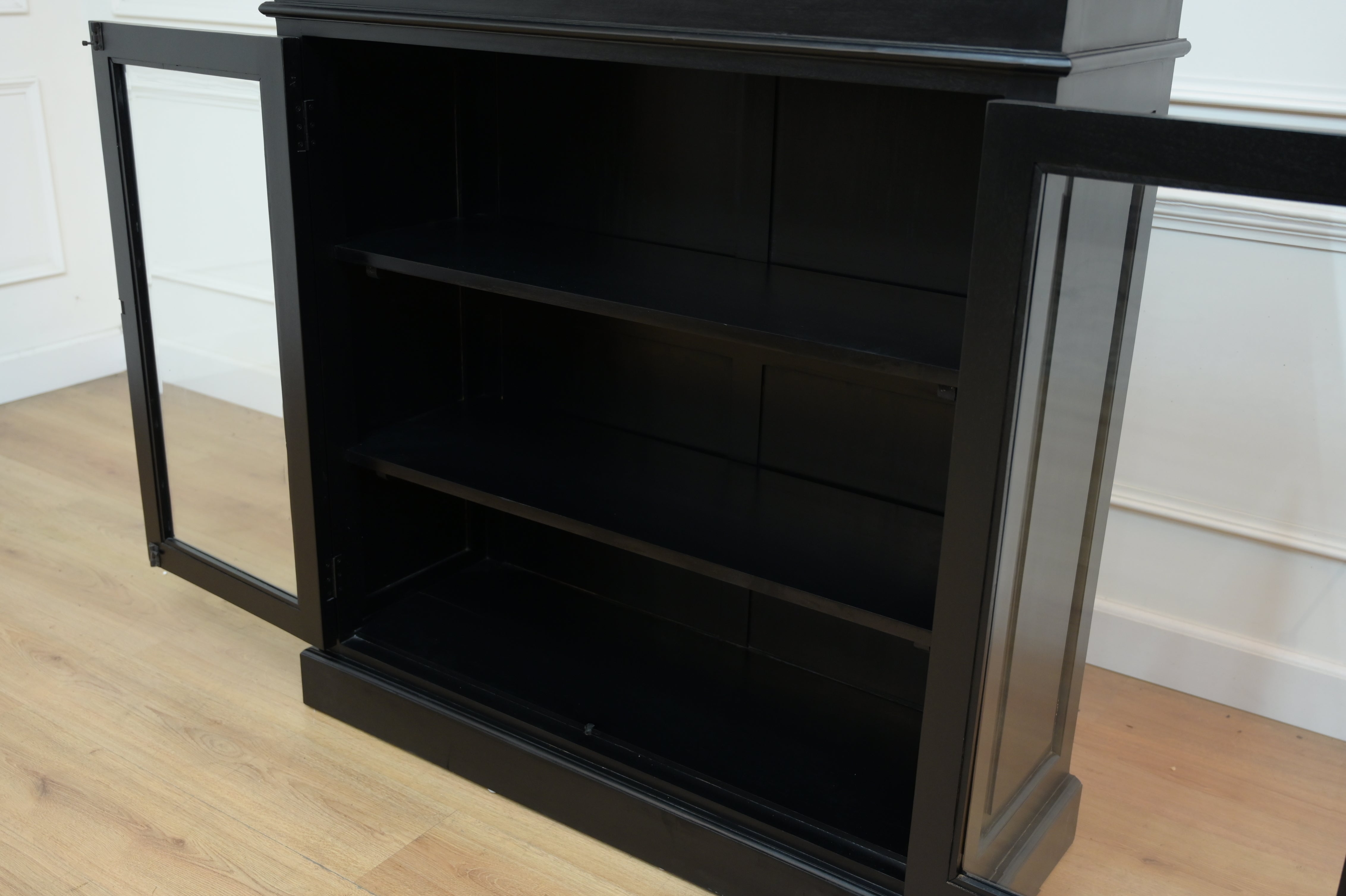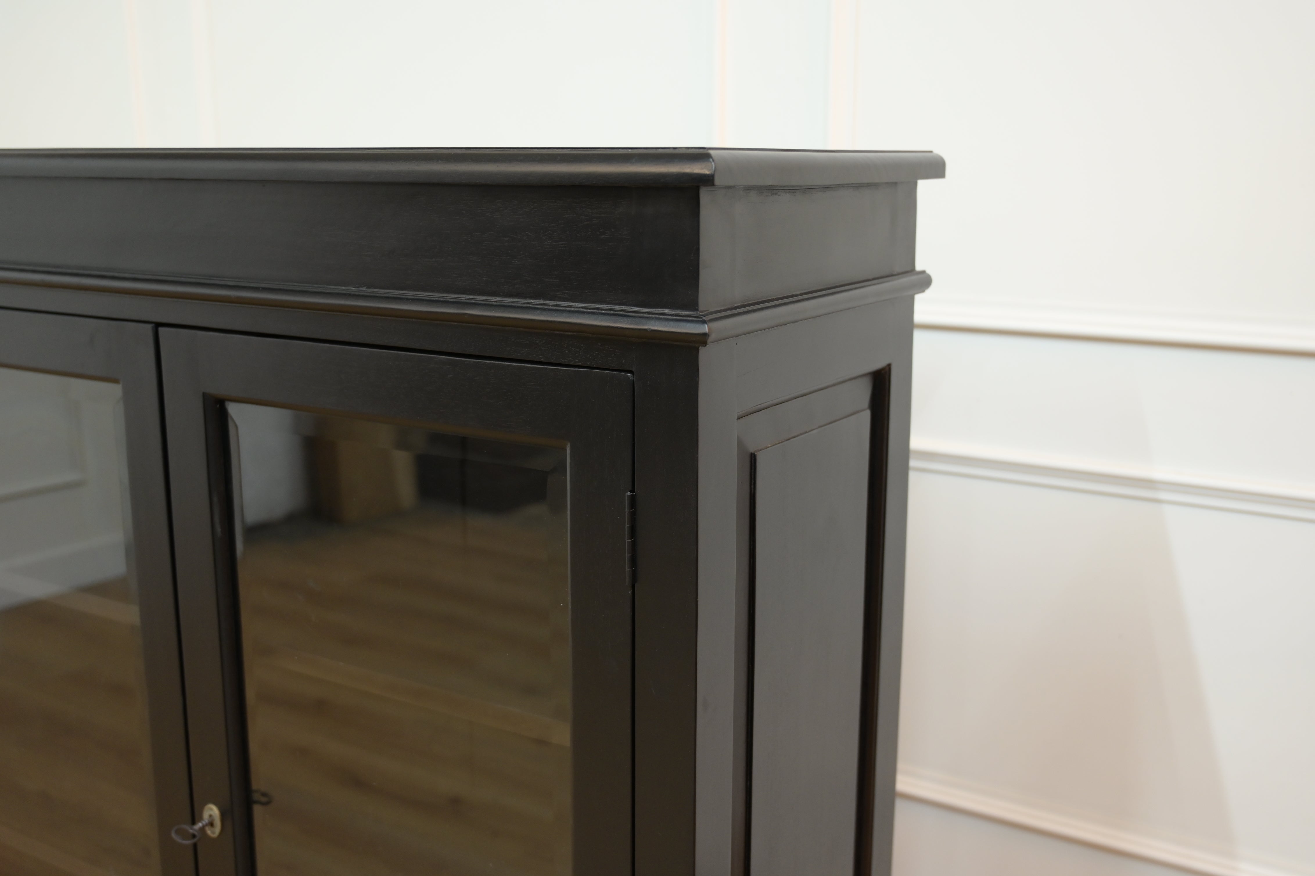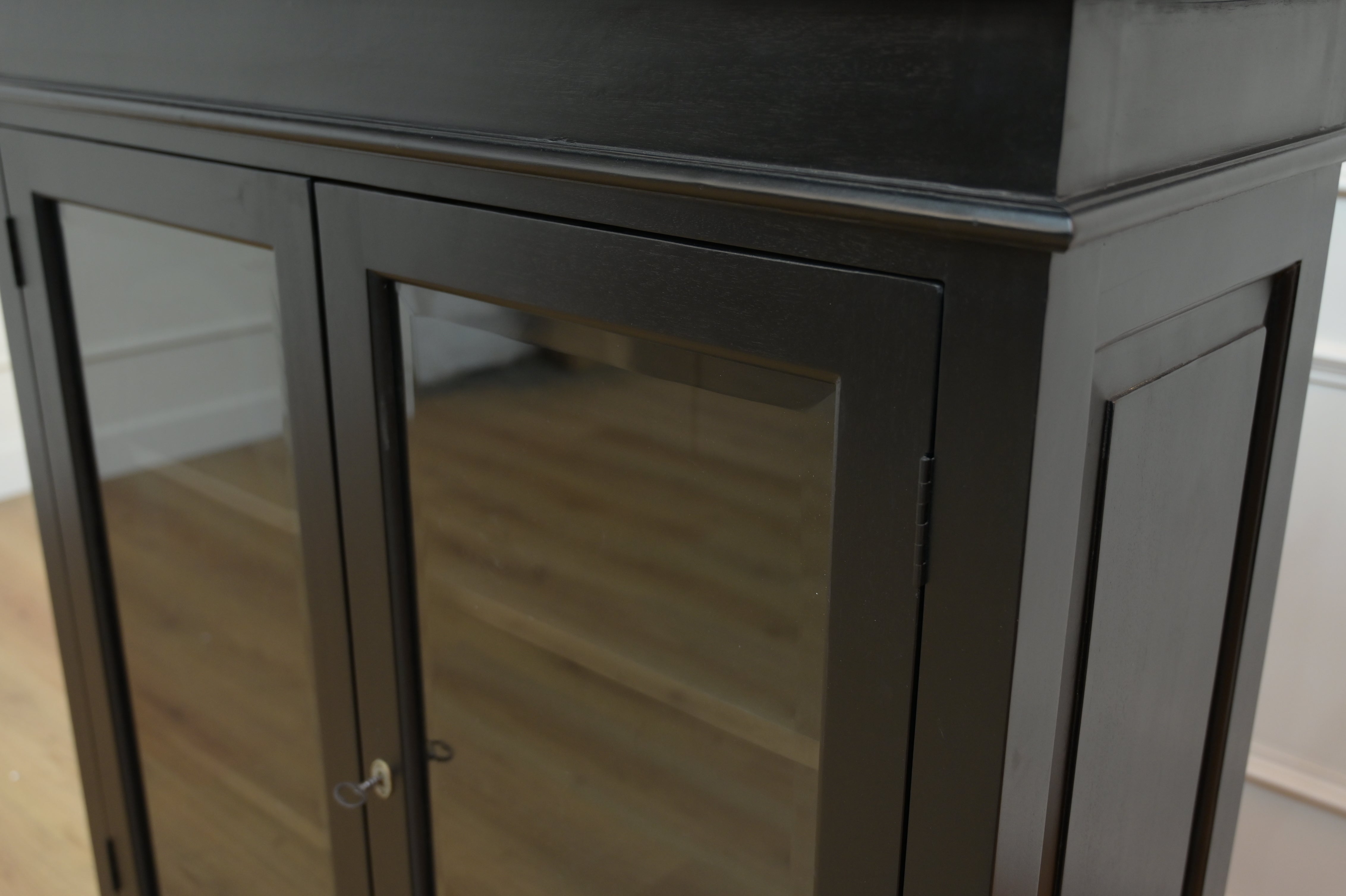 Vintage kast, vitrine kast, deurtjes met glas, mahoniehout, zwart