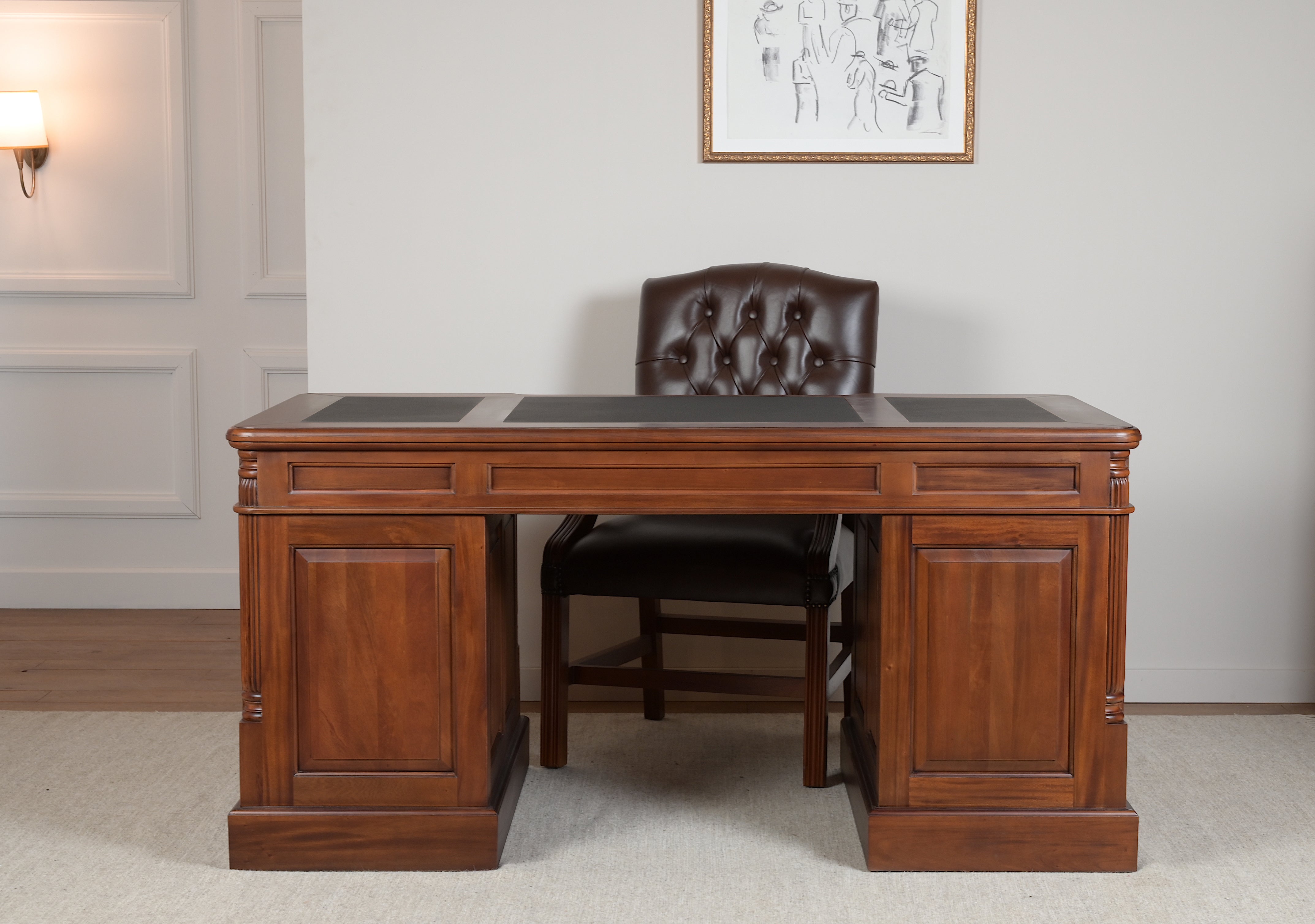 Säule 160x80 Bernstein, klassischer englischer Schreibtisch, massives Mahagoni