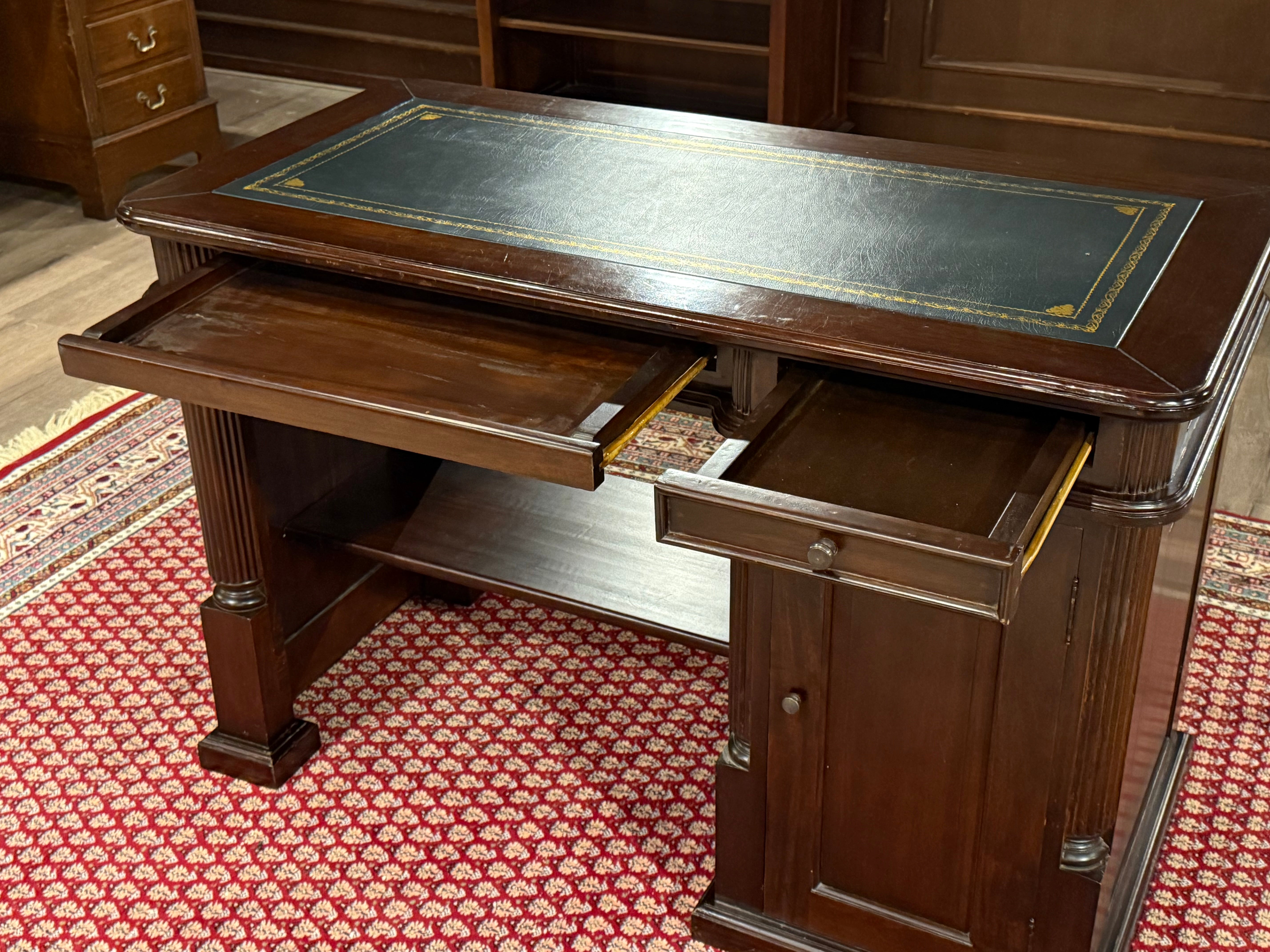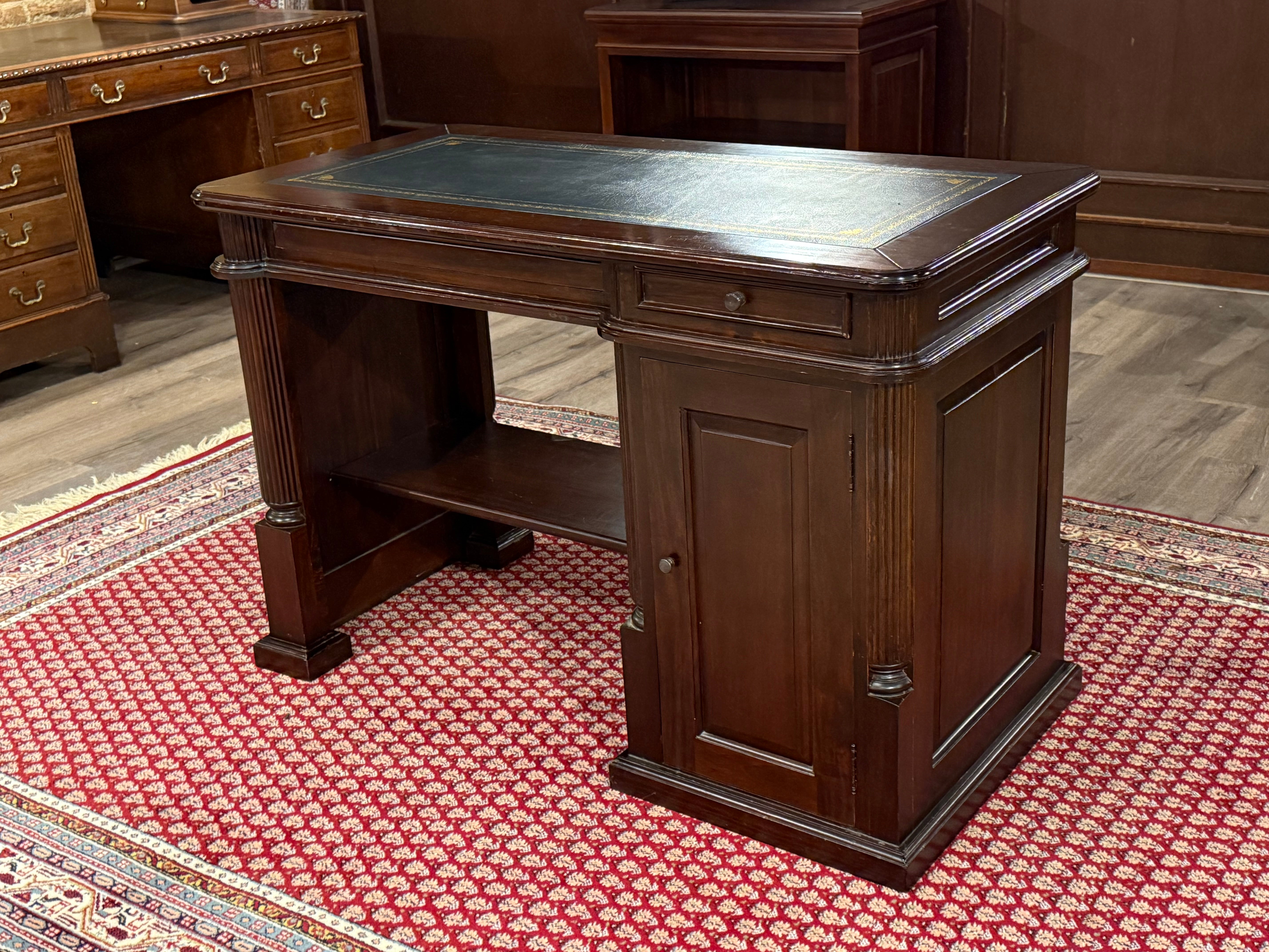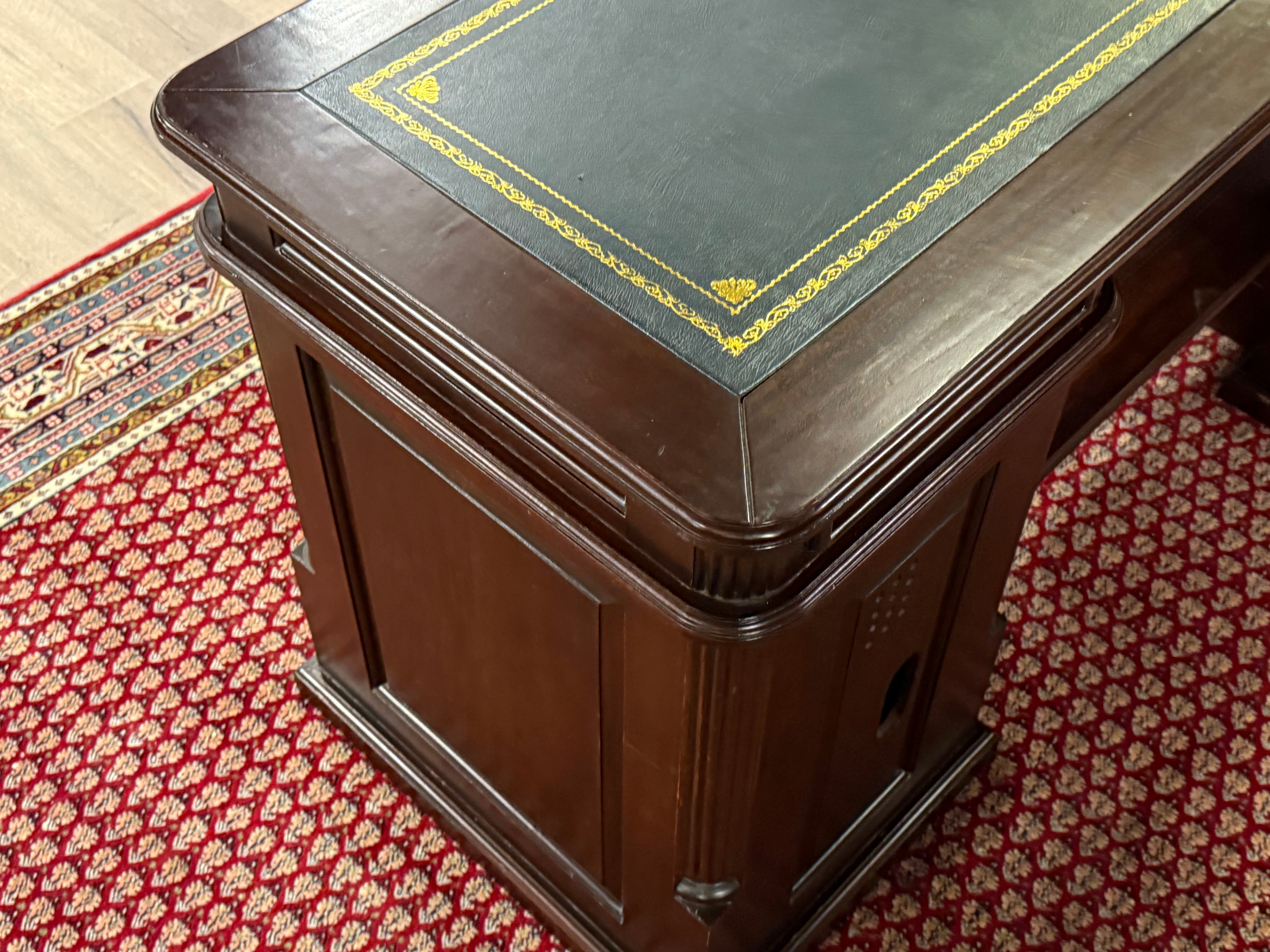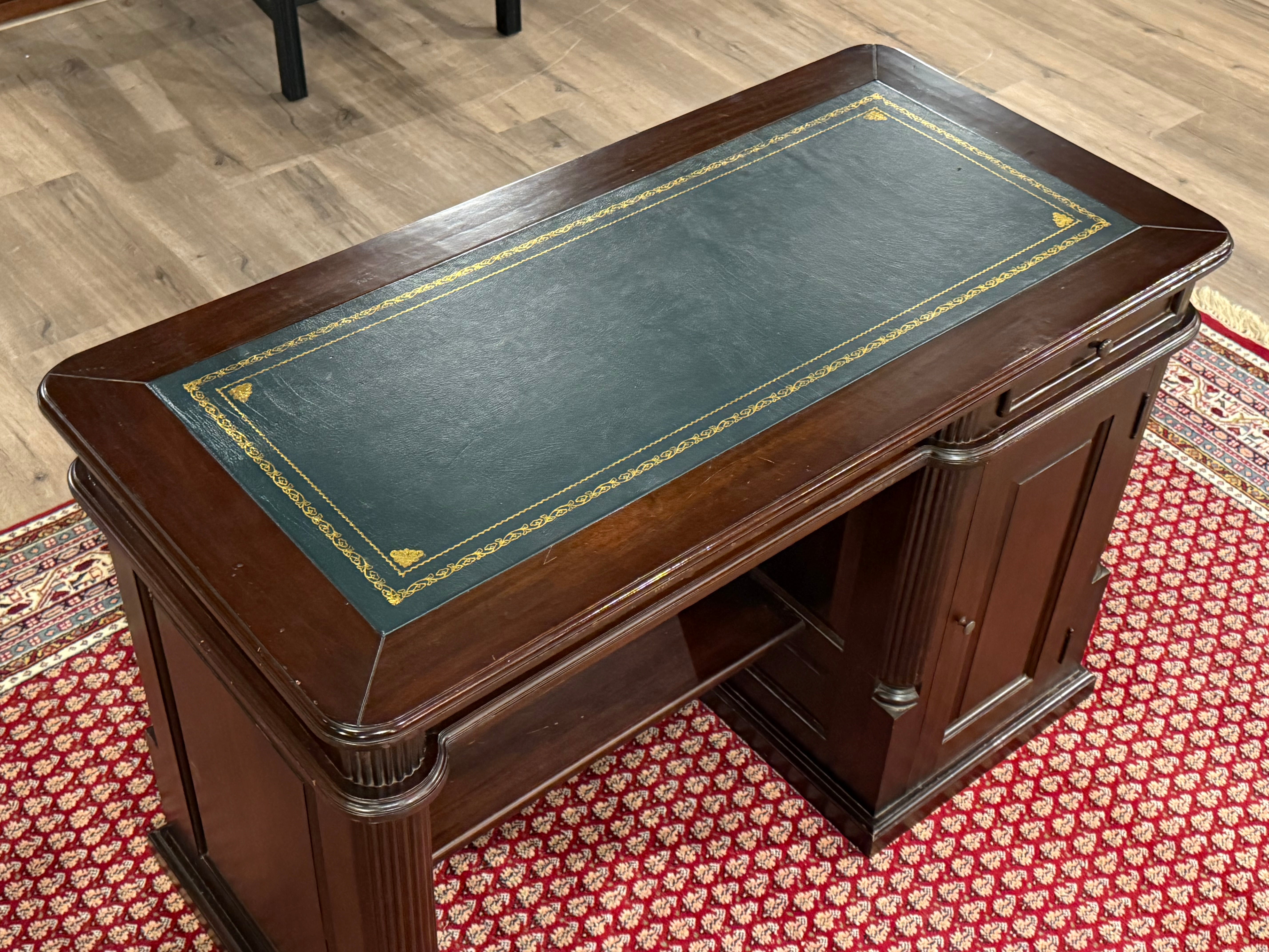 Vintage bureau, klassiek Engels bureau, mahoniehout, groen leer, 545