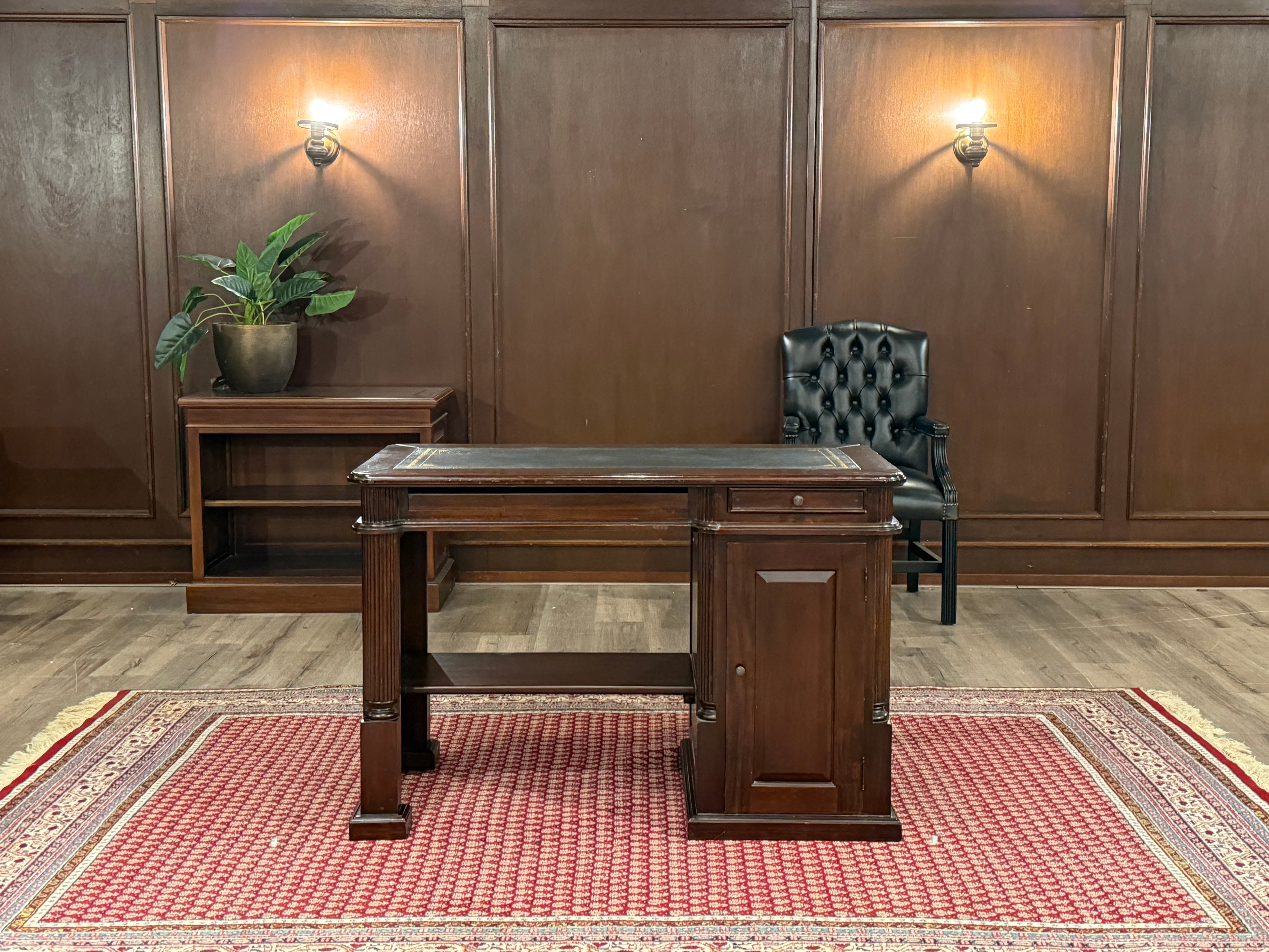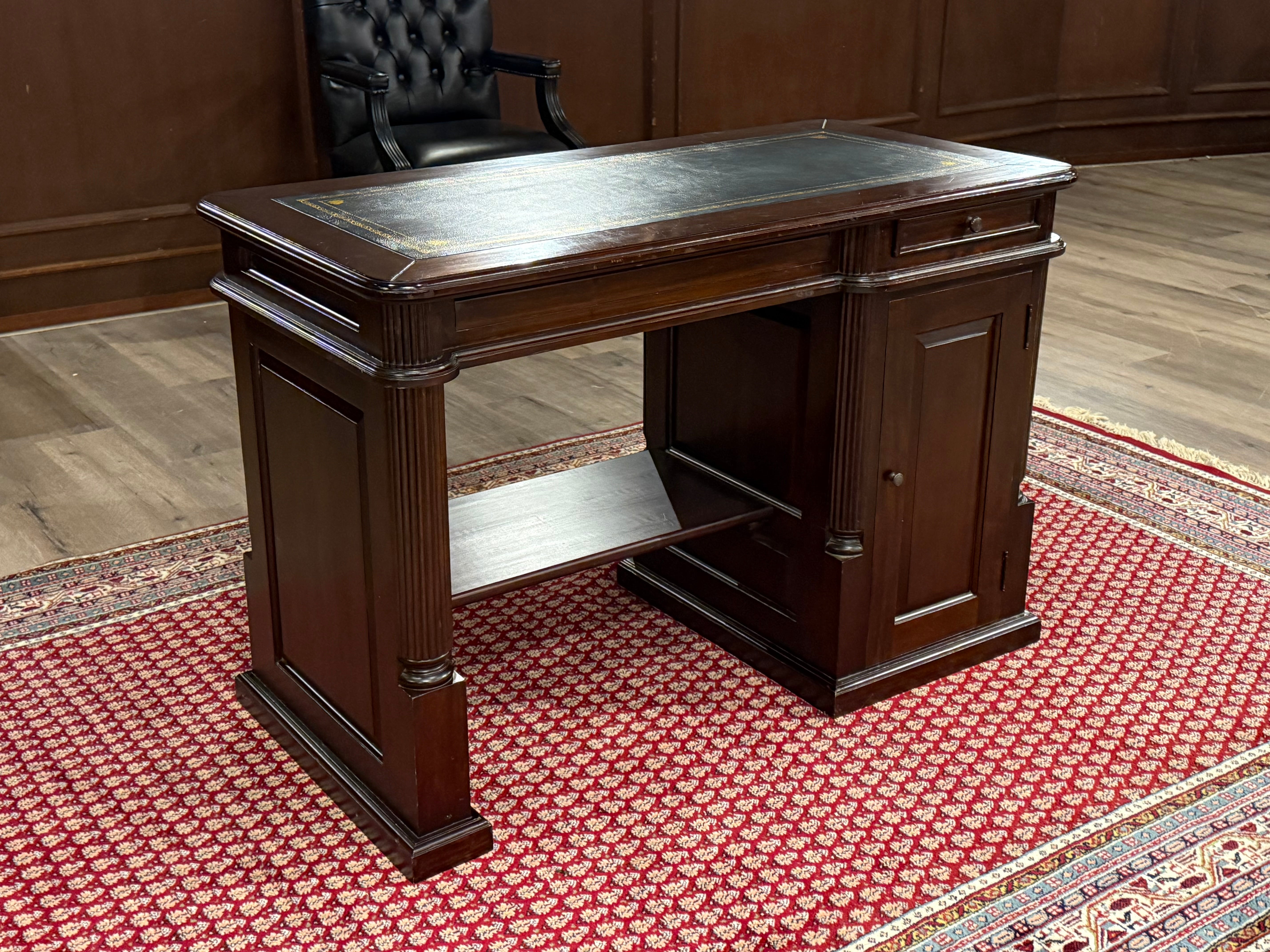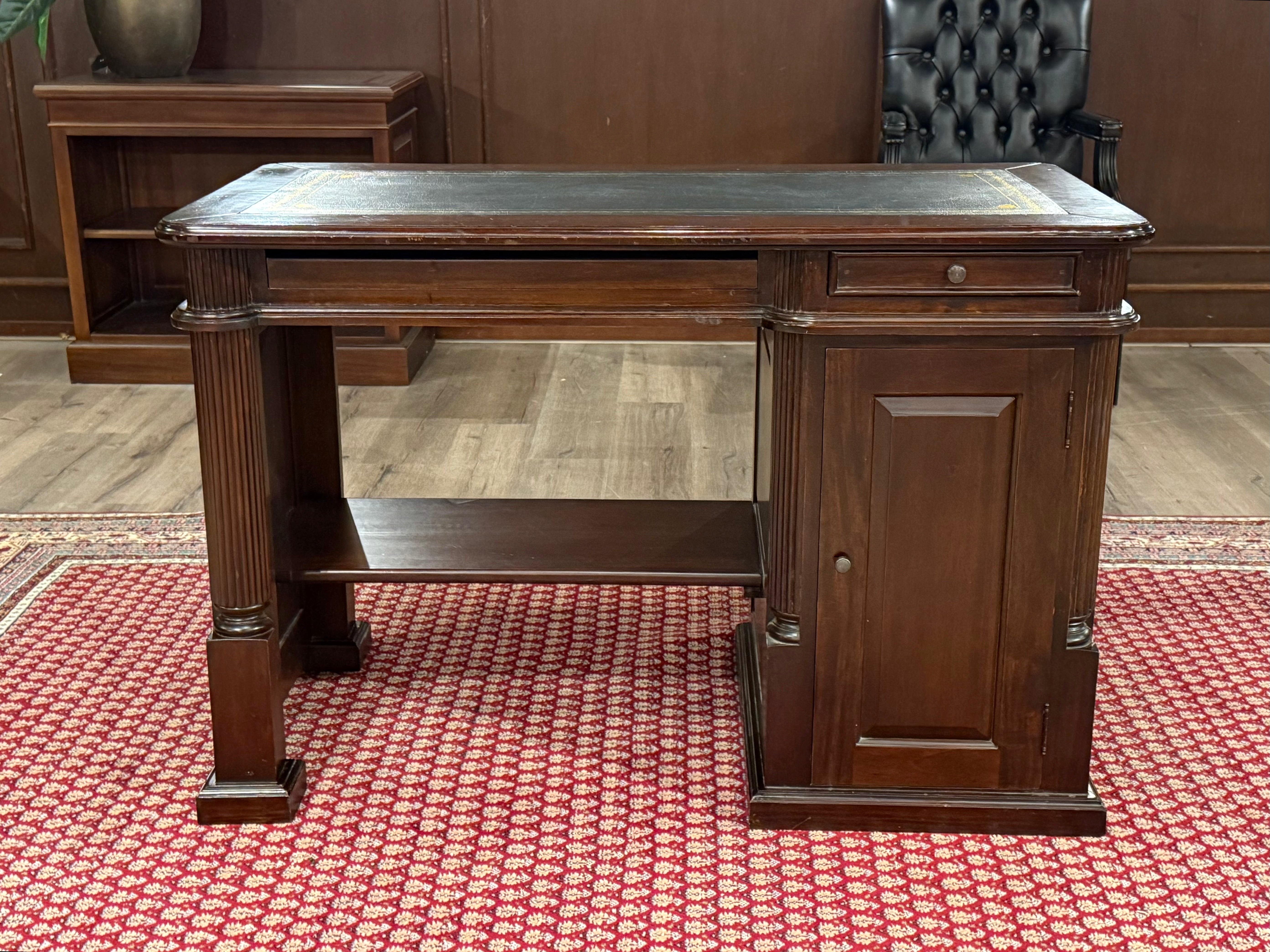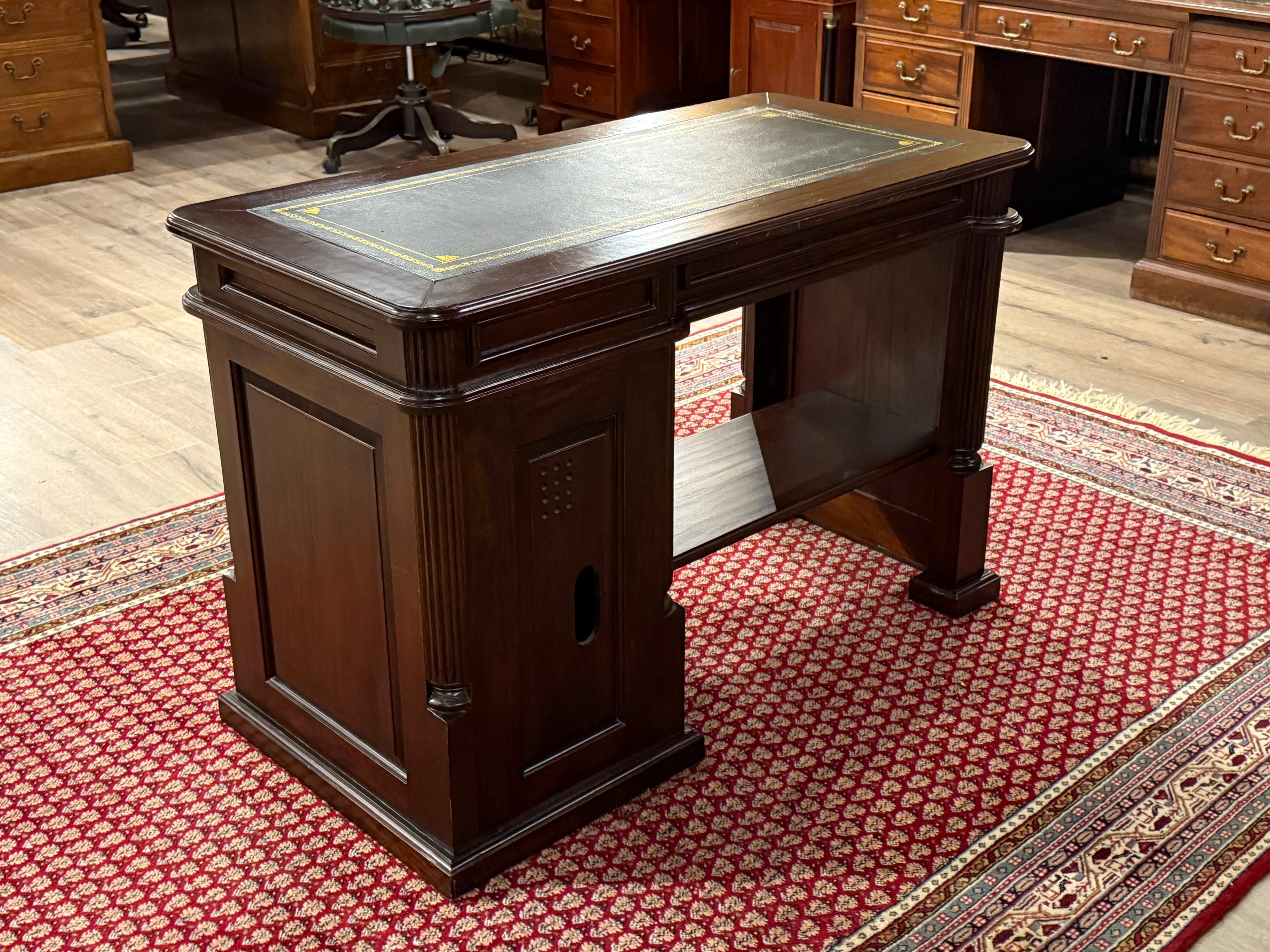 Vintage bureau, klassiek Engels bureau, mahoniehout, groen leer, 545