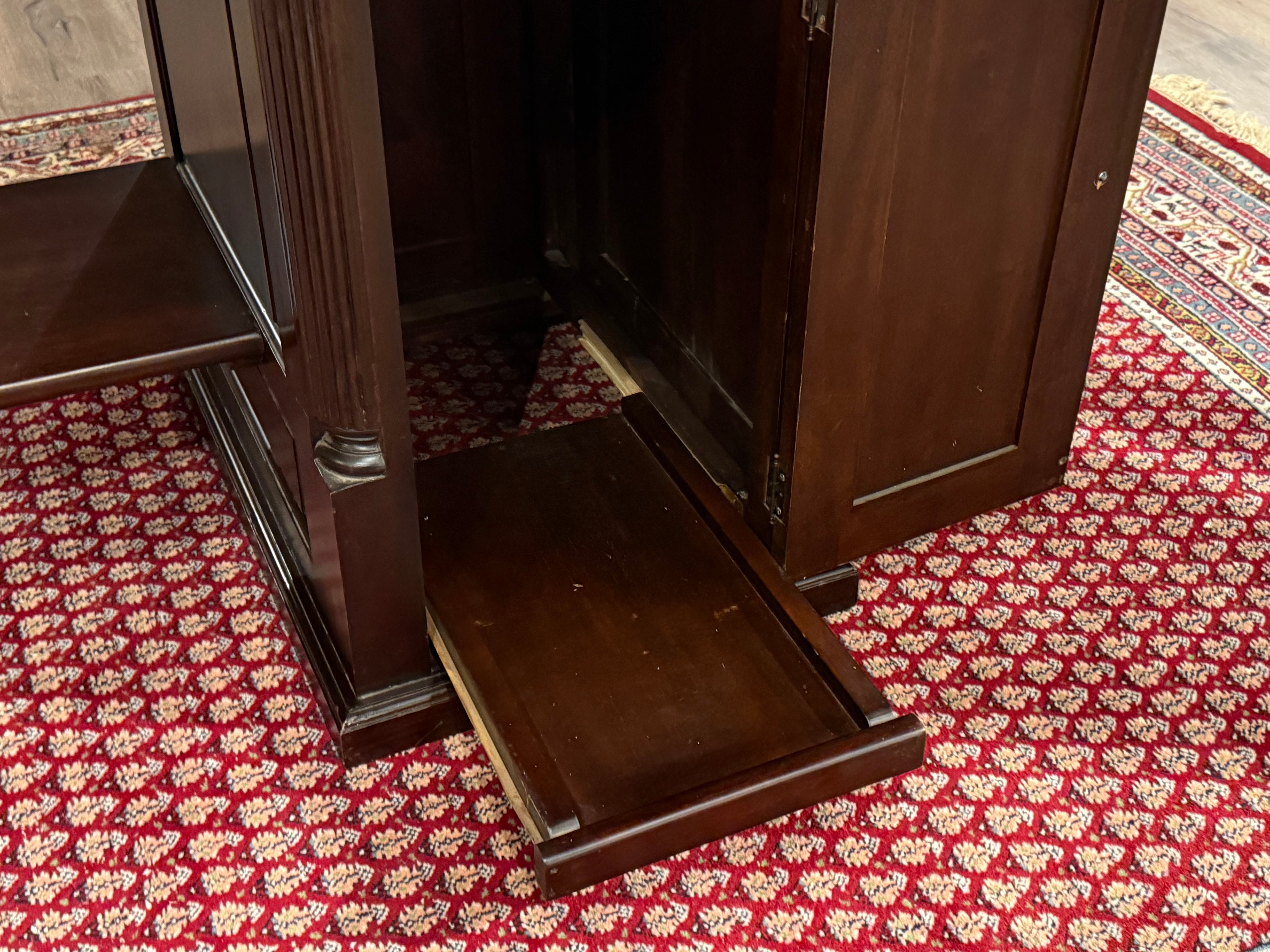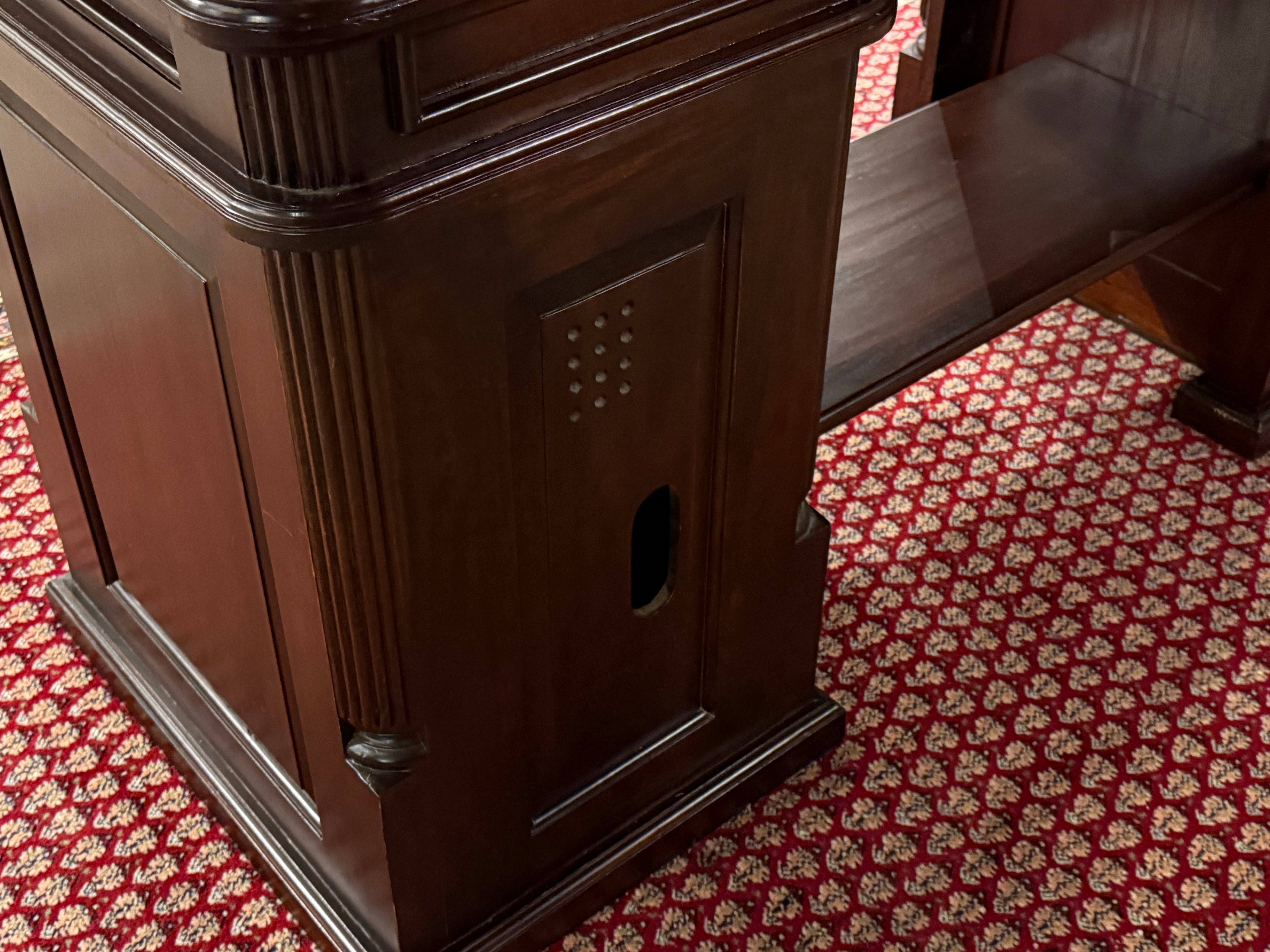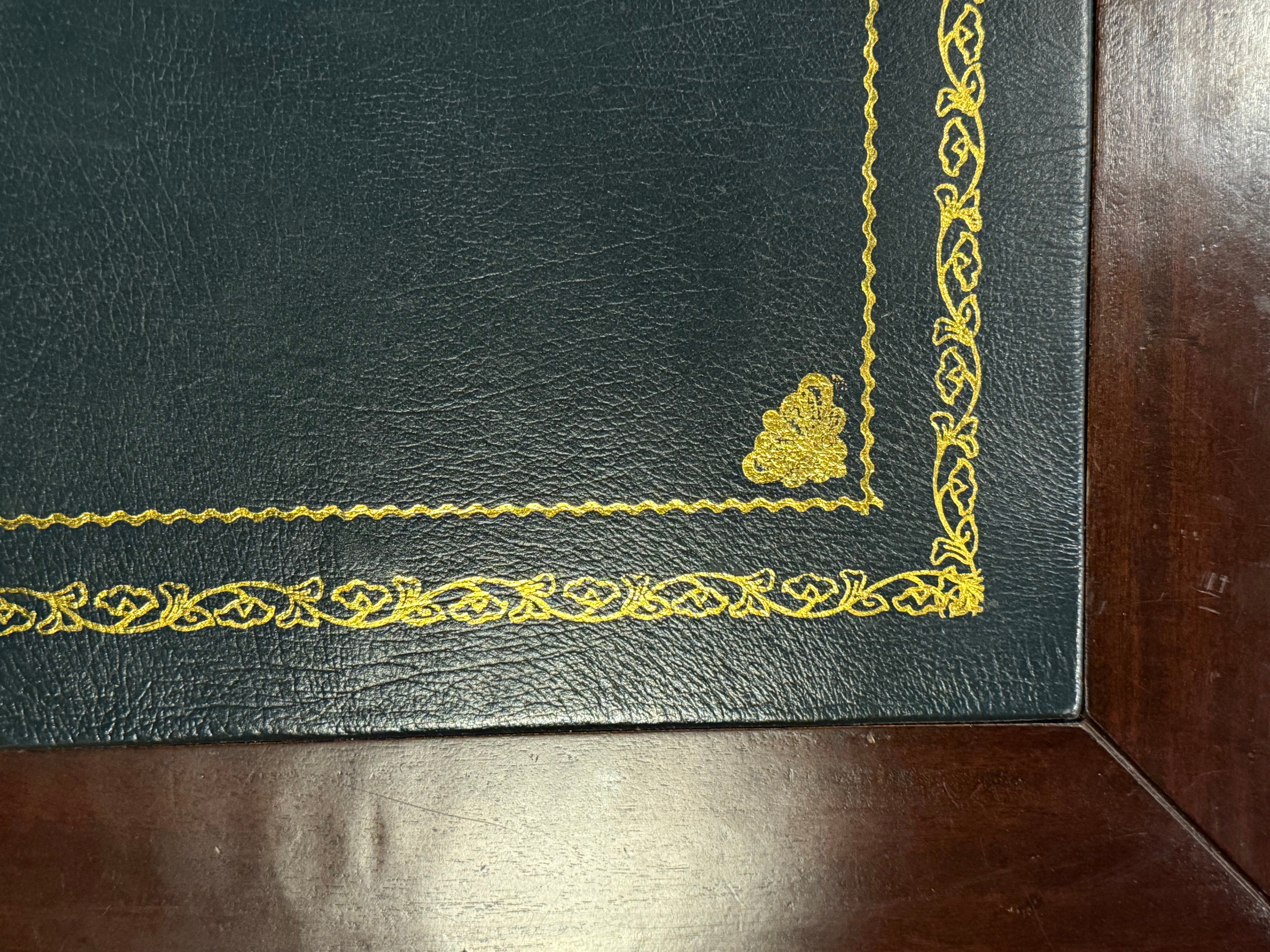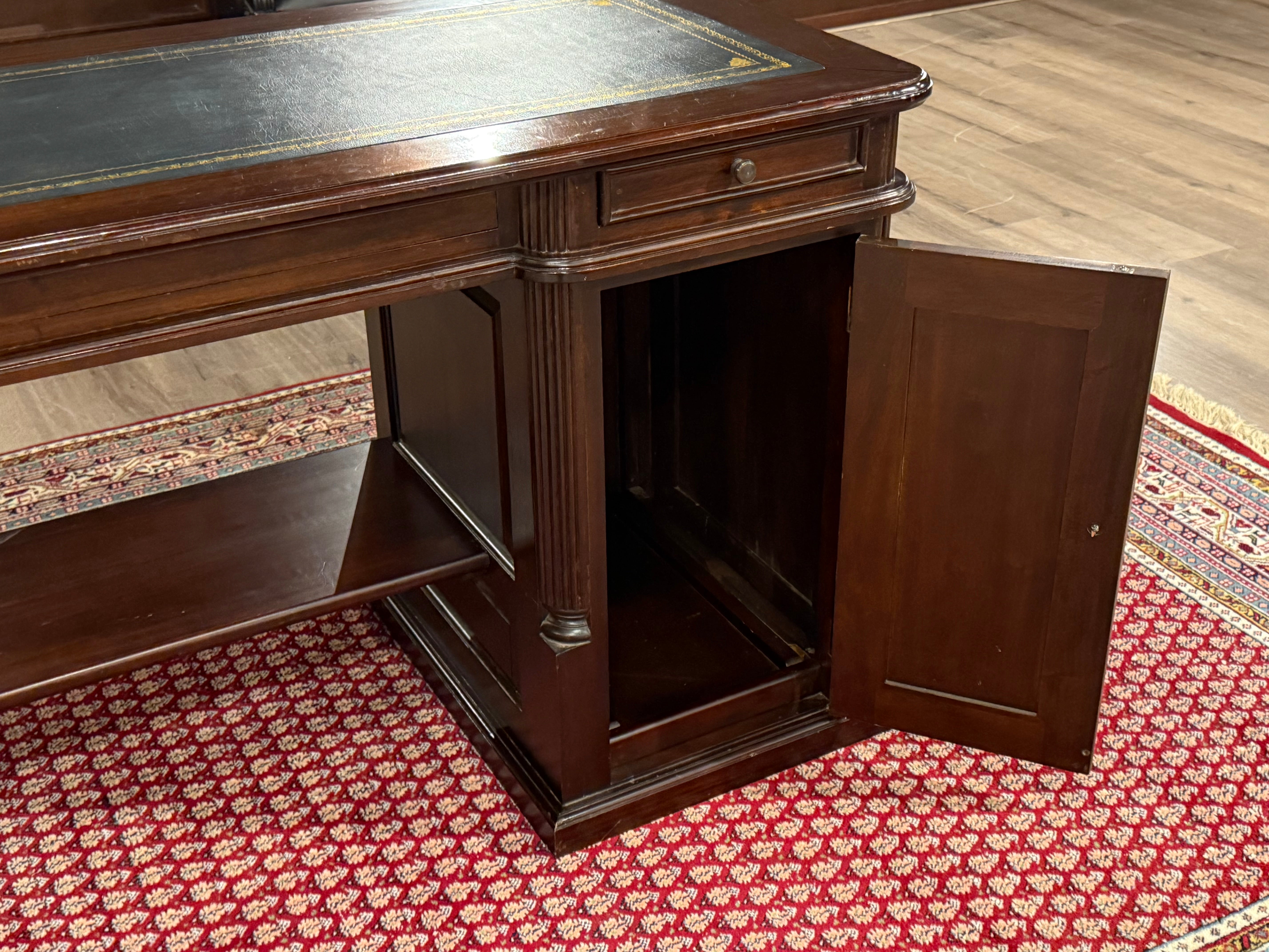 Vintage bureau, klassiek Engels bureau, mahoniehout, groen leer, 545
