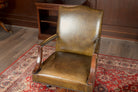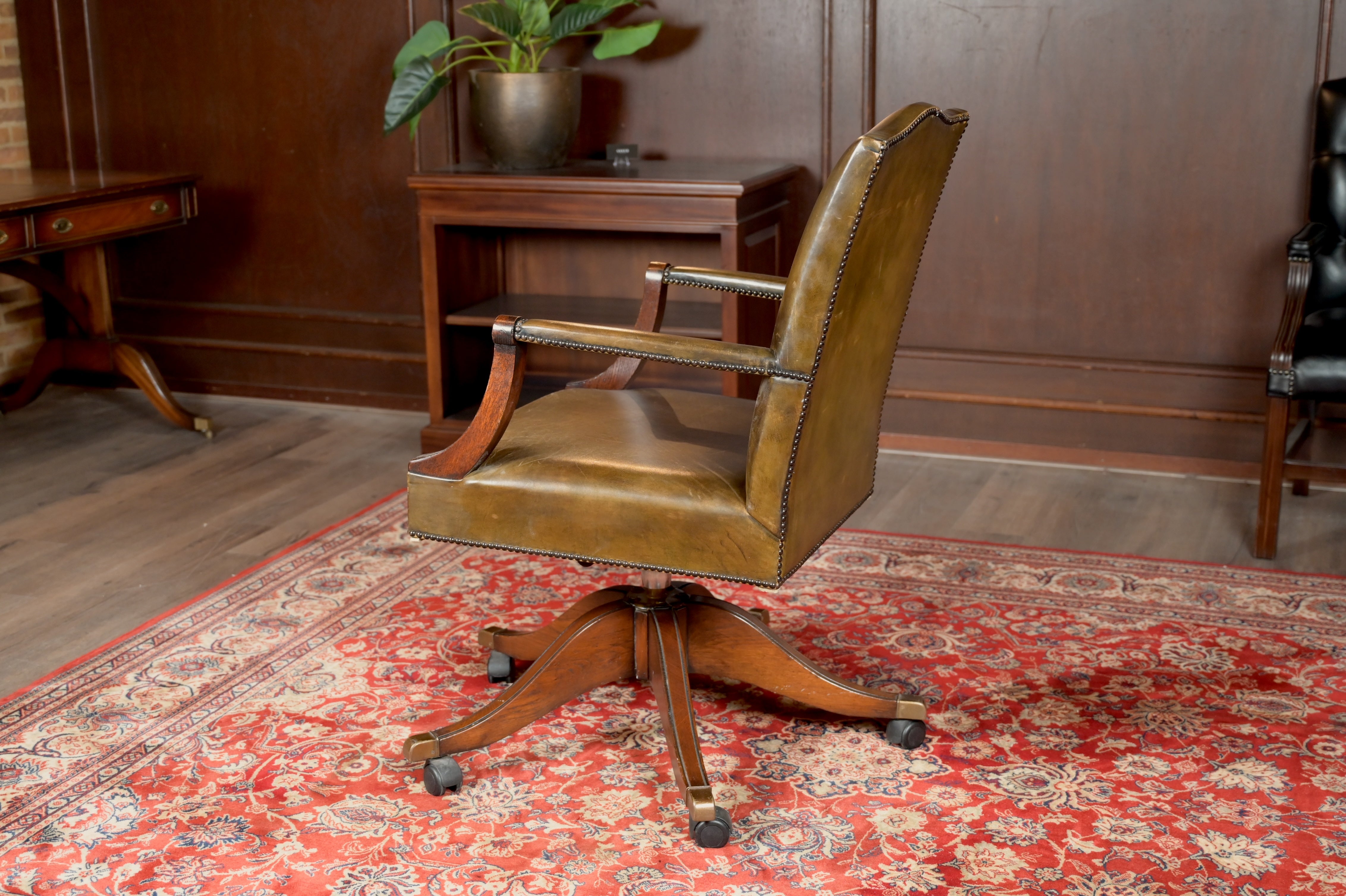 Vintage stoel 243, groen leer, eikenhout, Chesterfield