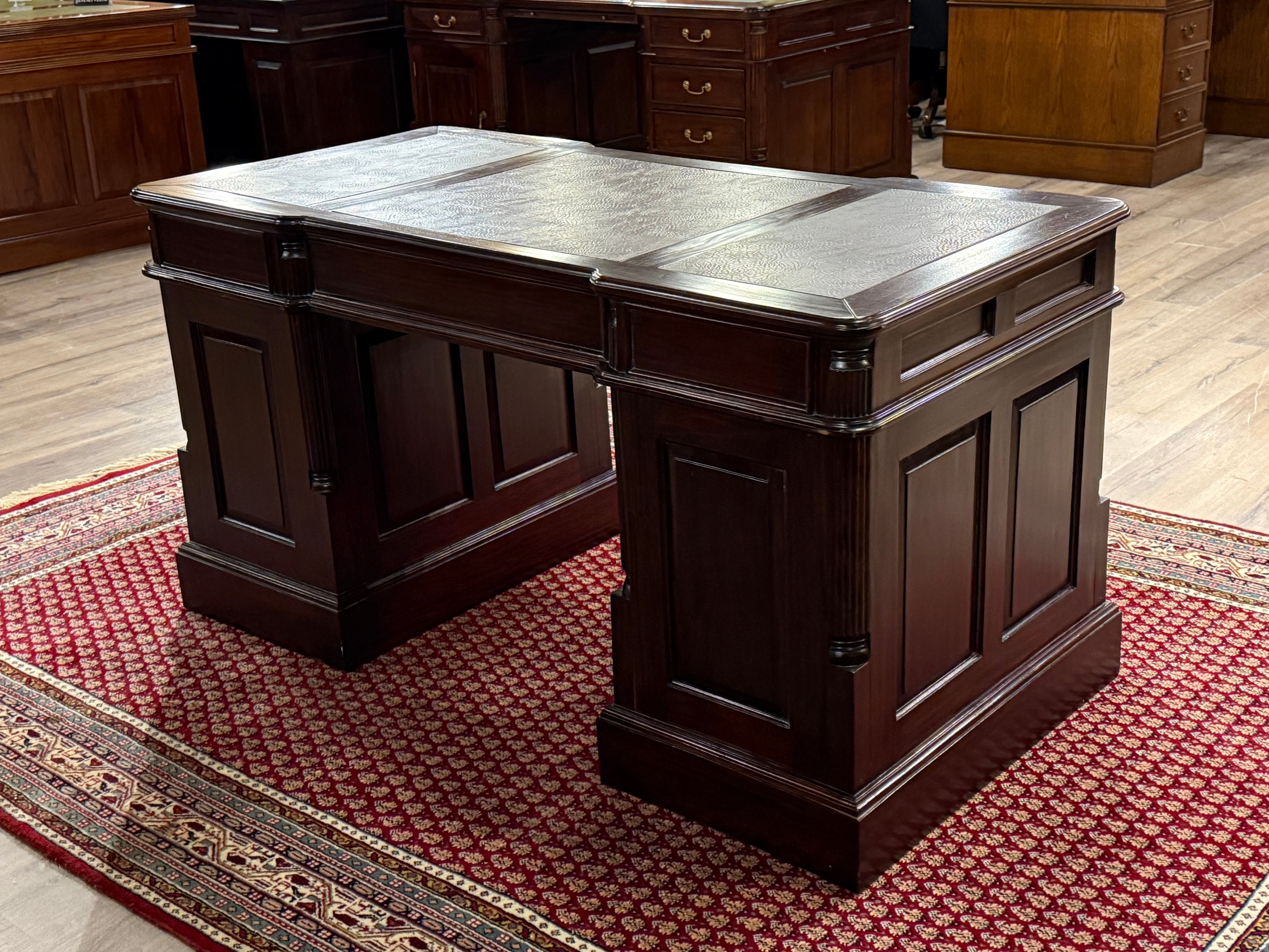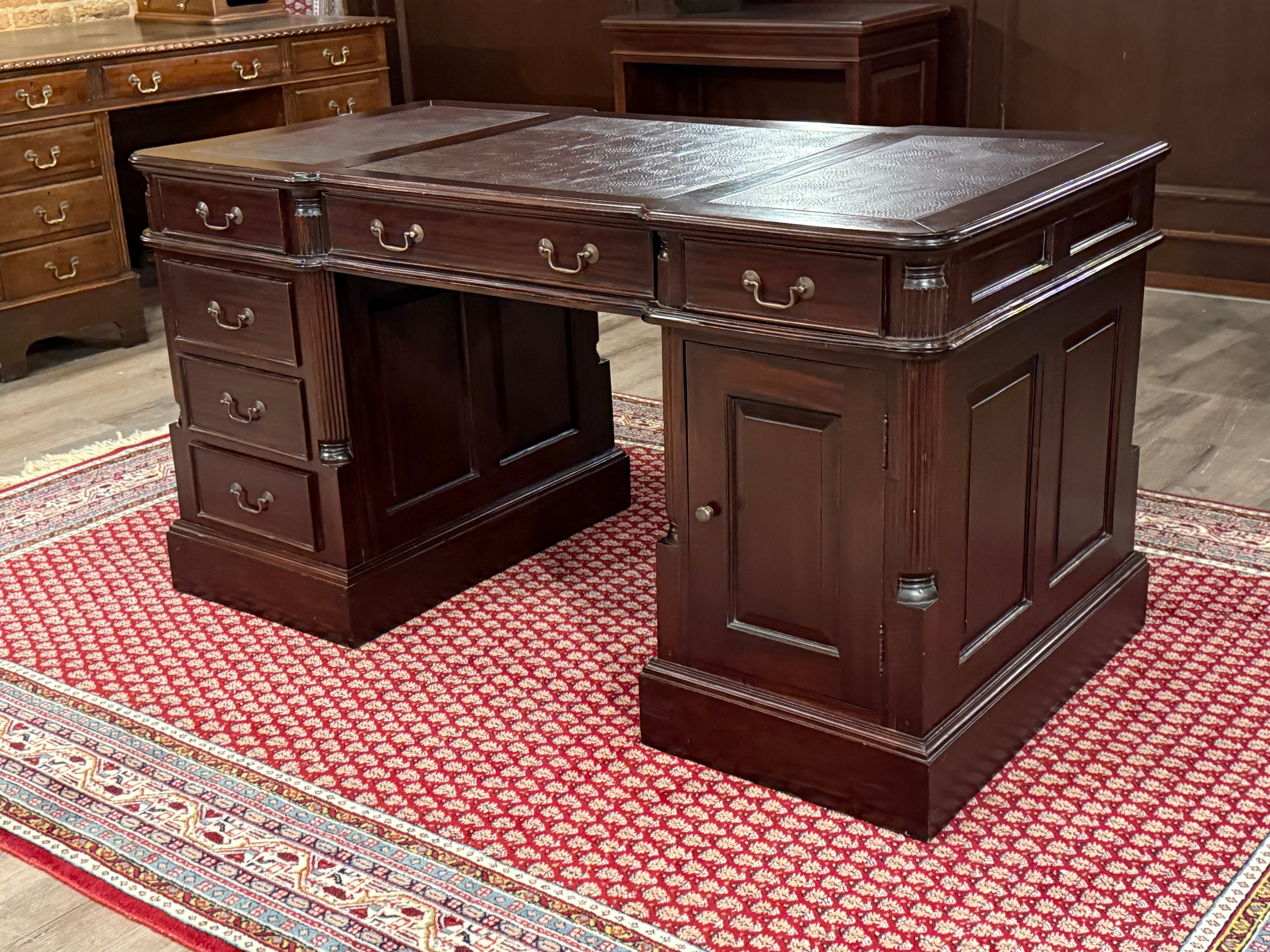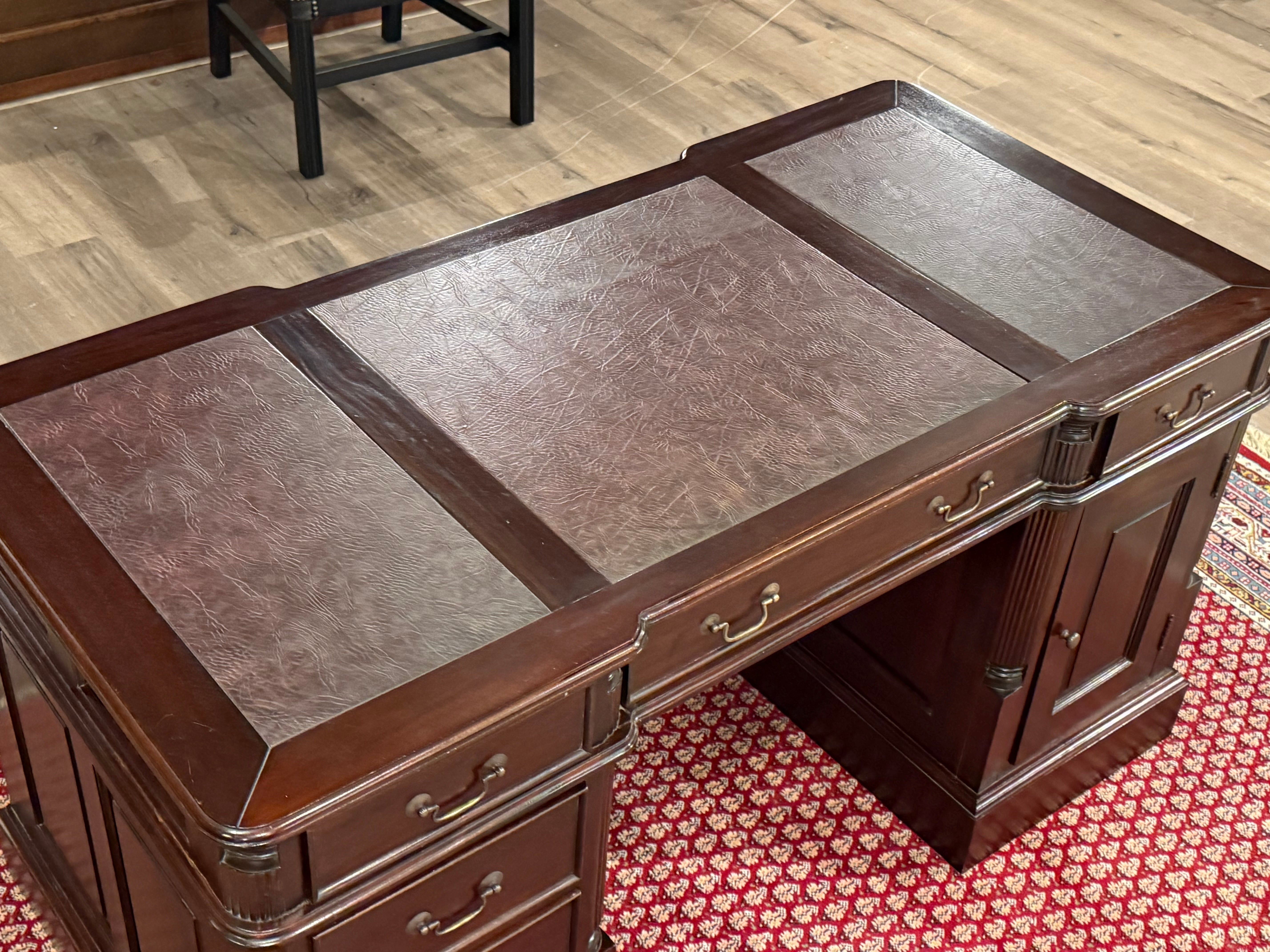 Vintage bureau, klassiek Engels bureau, mahoniehout, rood leer, 546