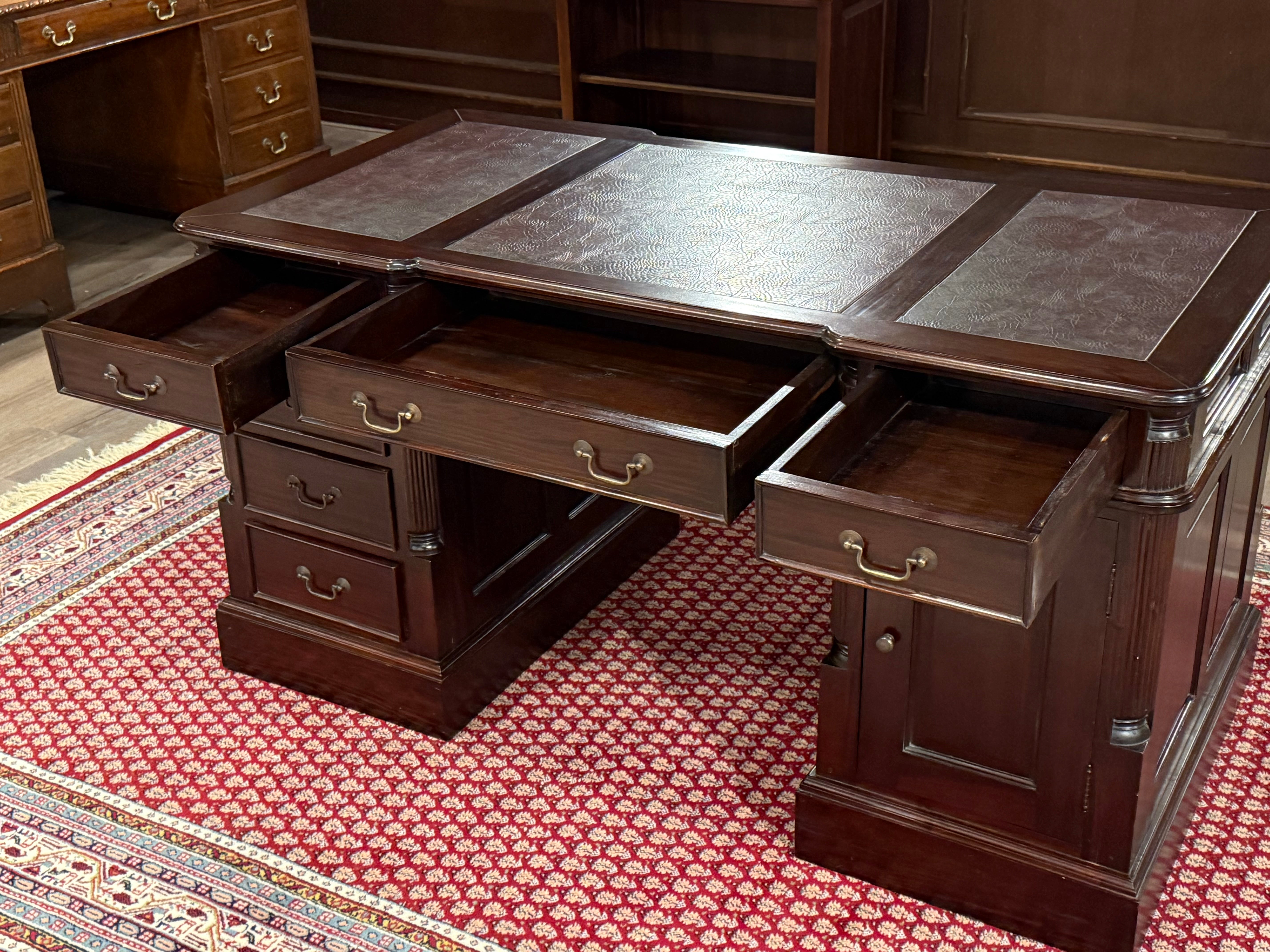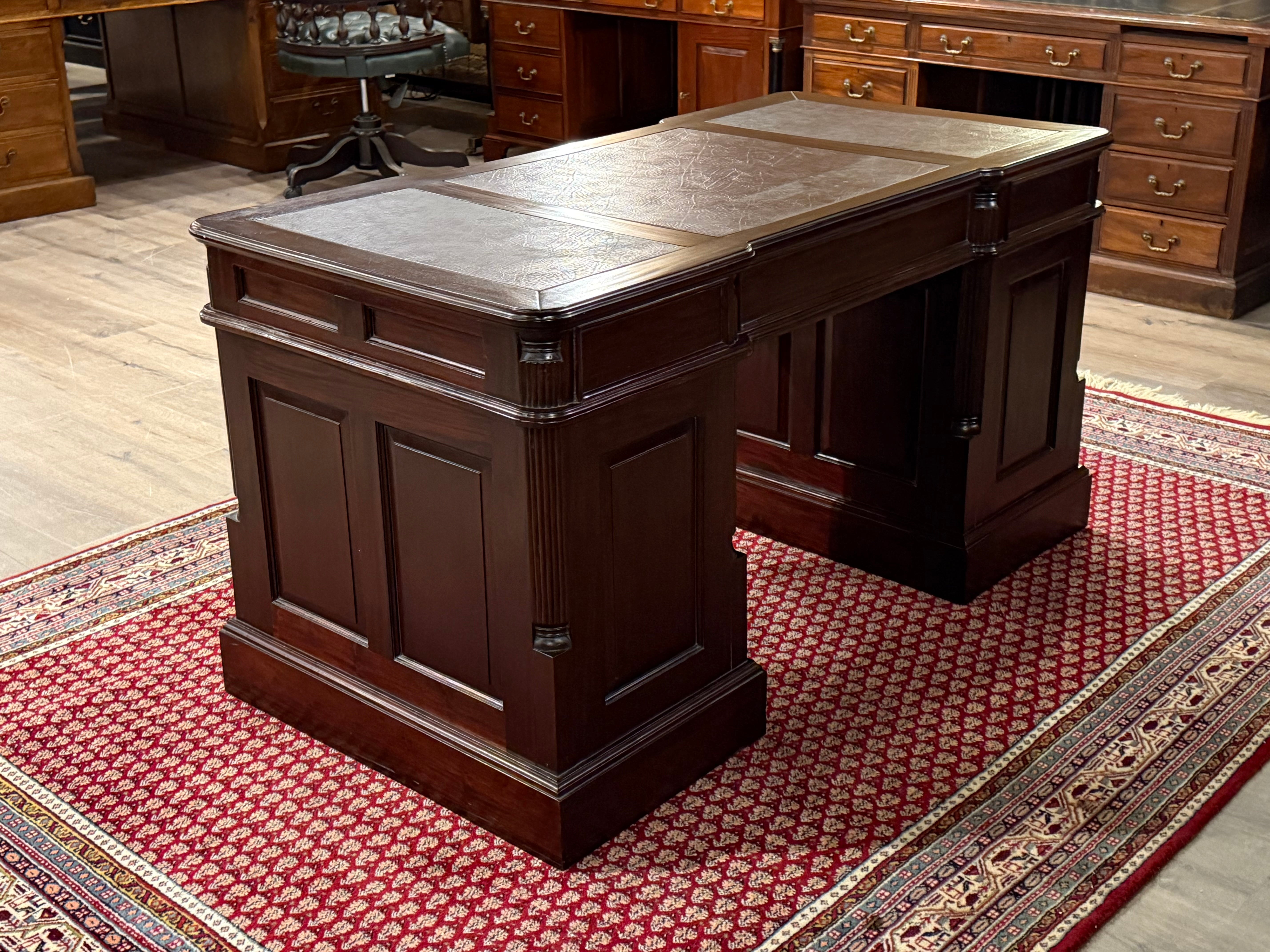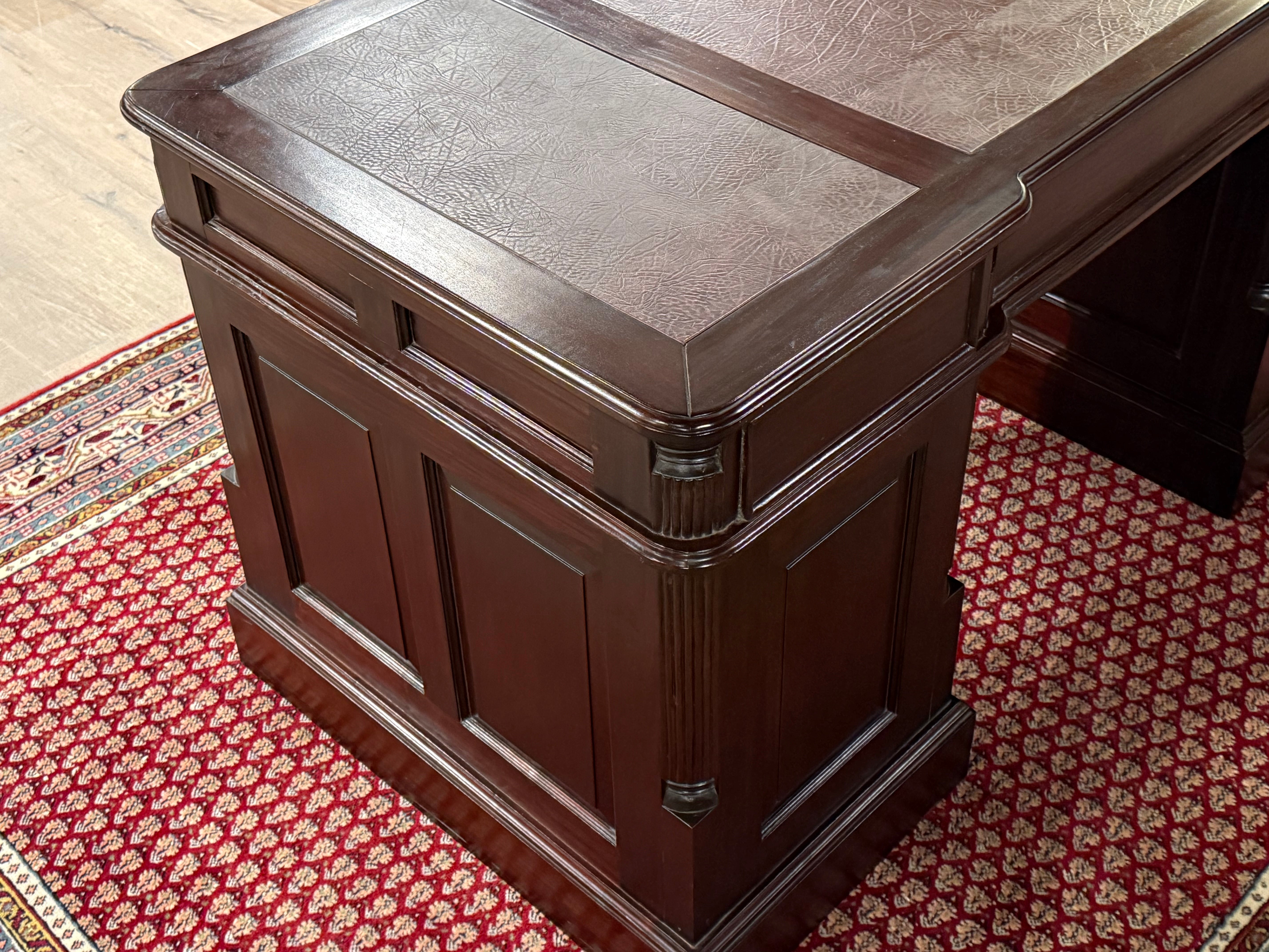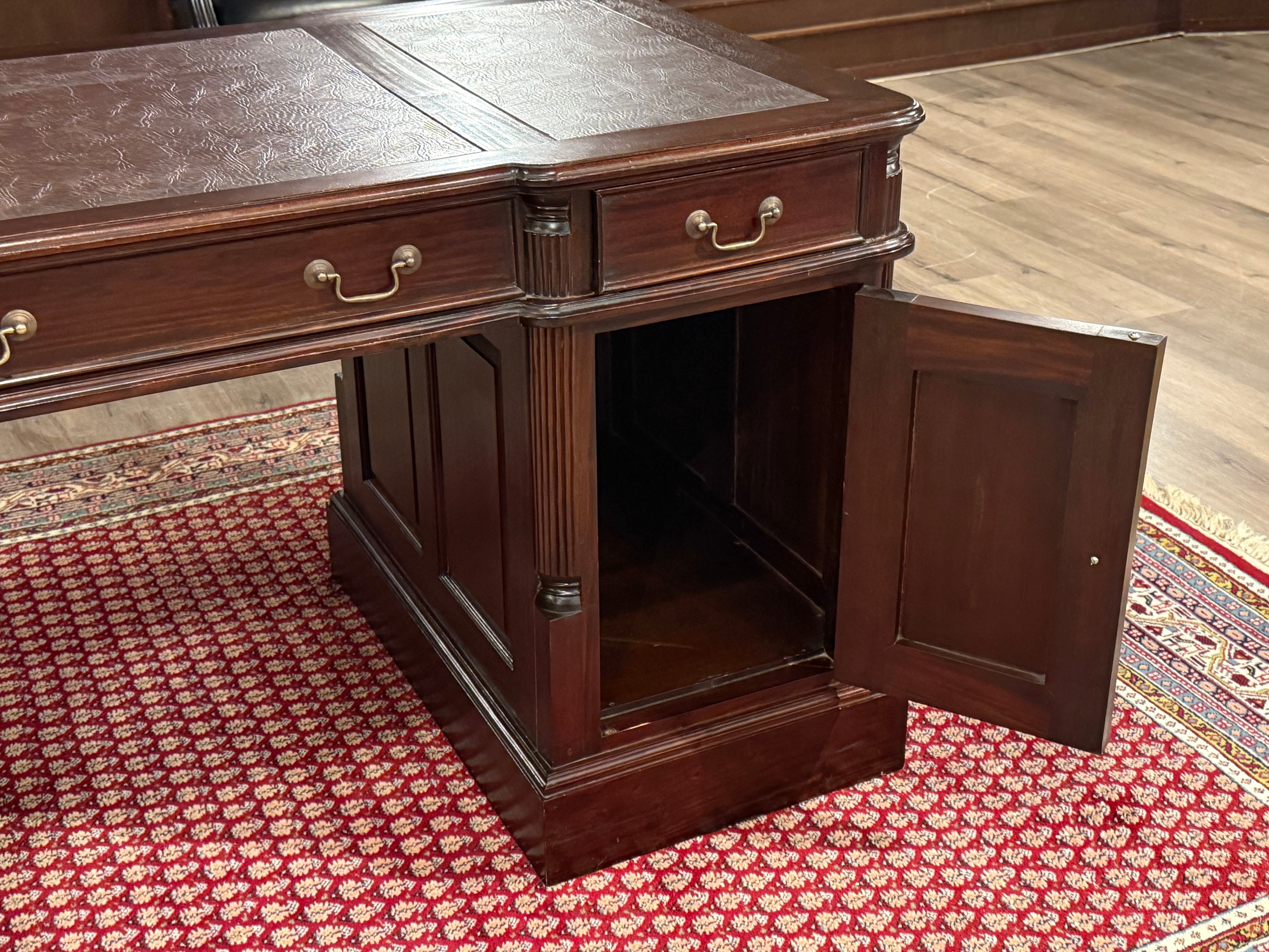 Vintage bureau, klassiek Engels bureau, mahoniehout, rood leer, 546