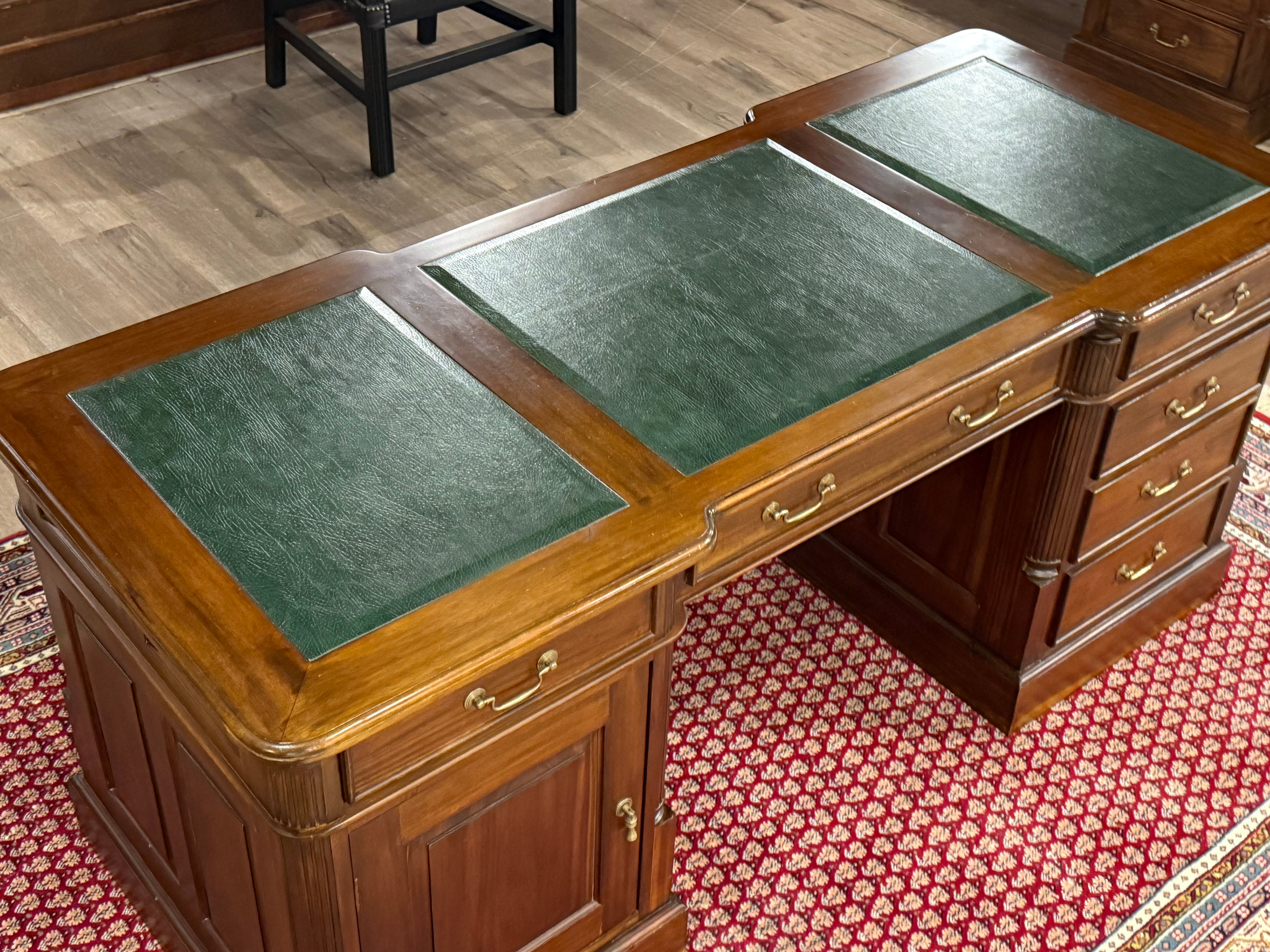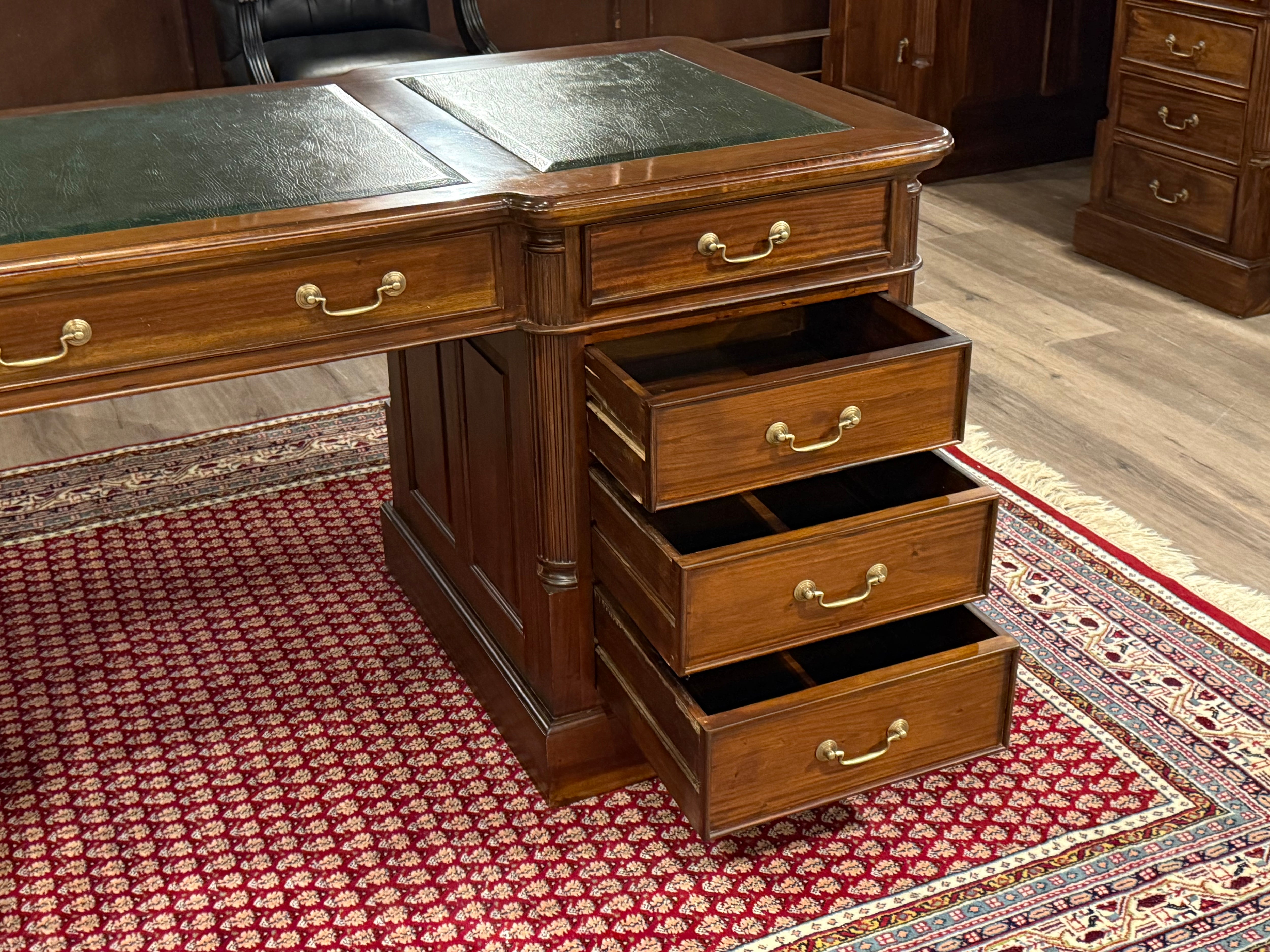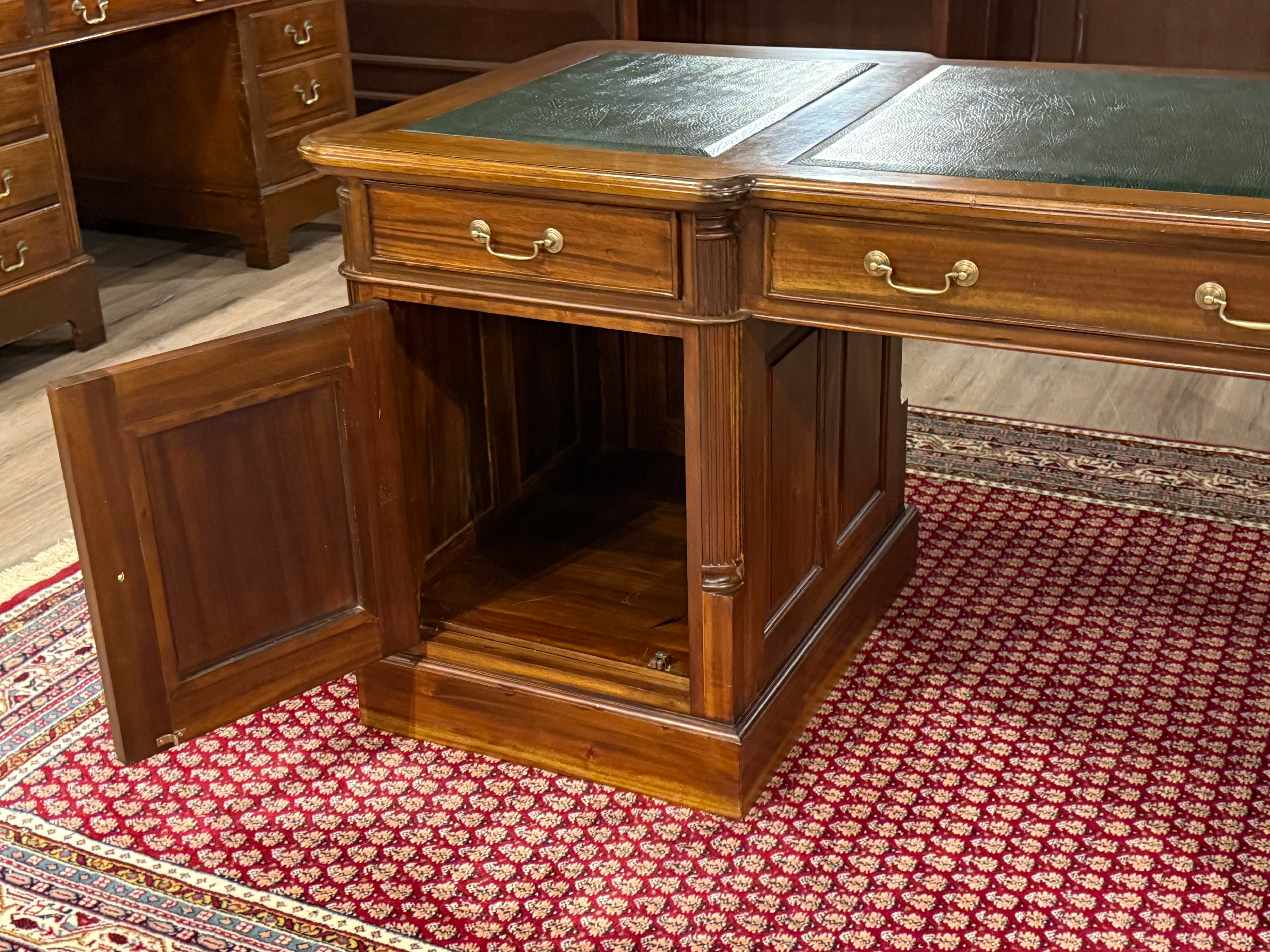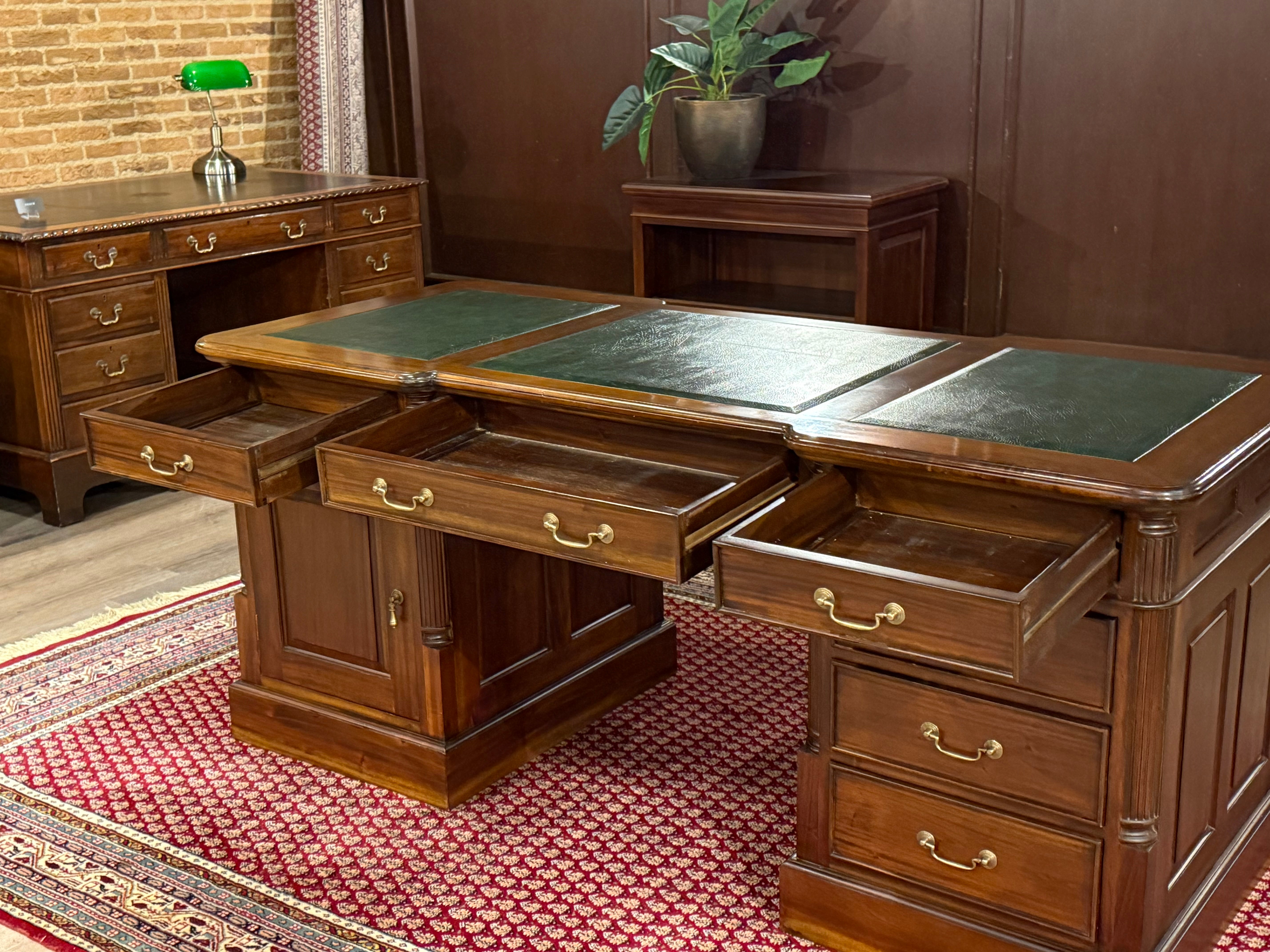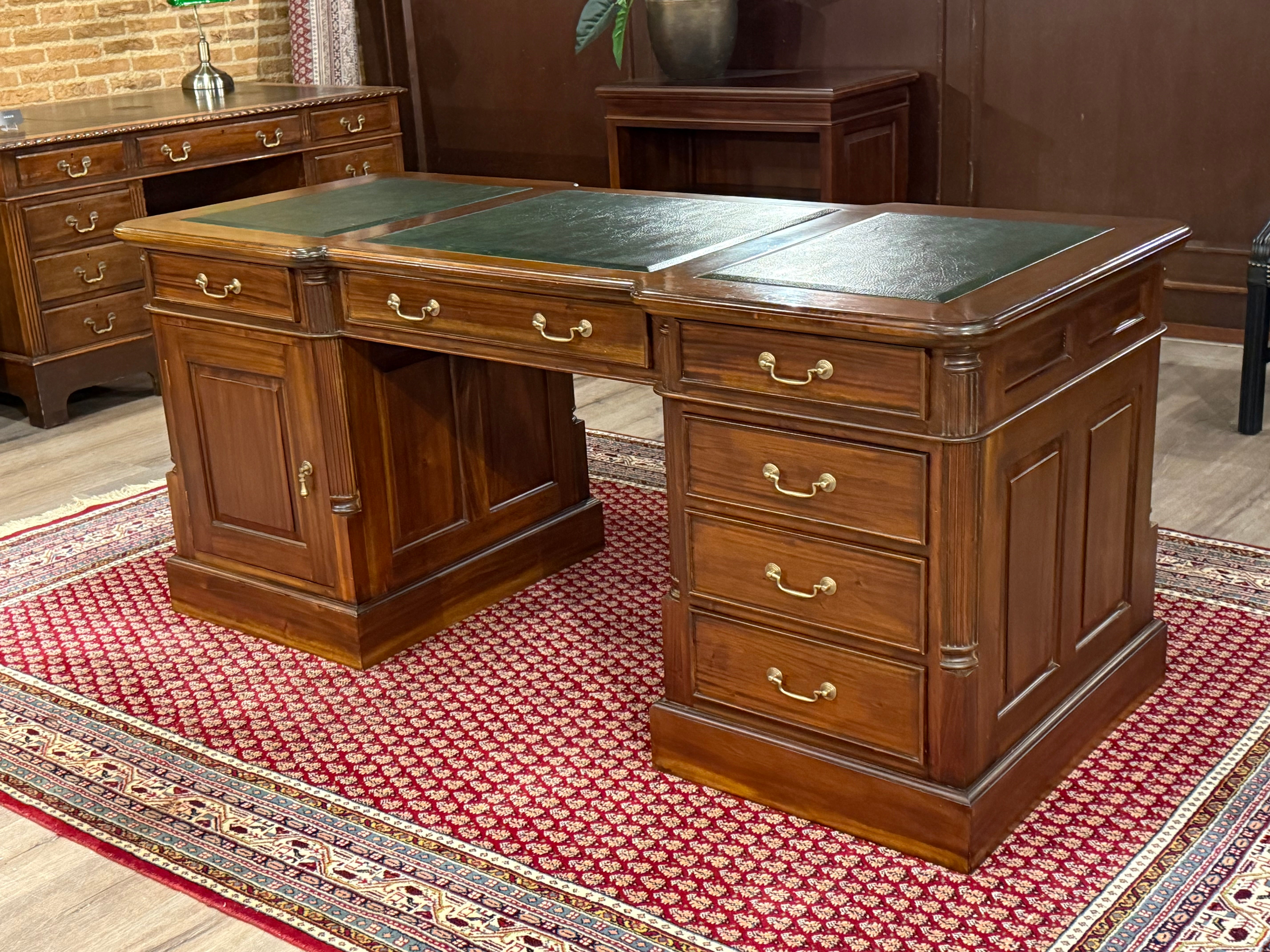 Vintage bureau, klassiek Engels bureau, mahoniehout, groen leer, 556