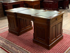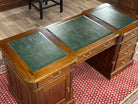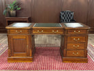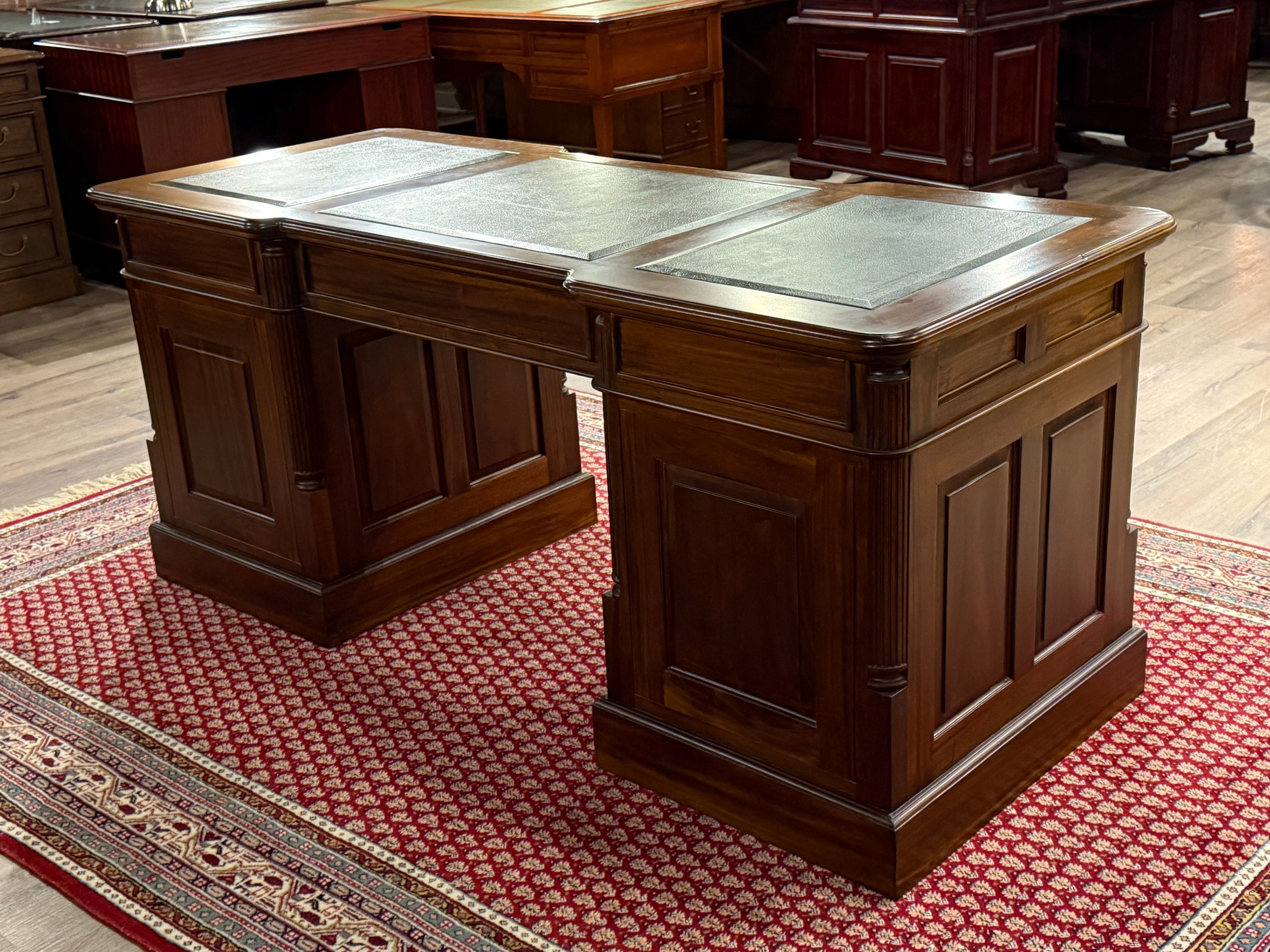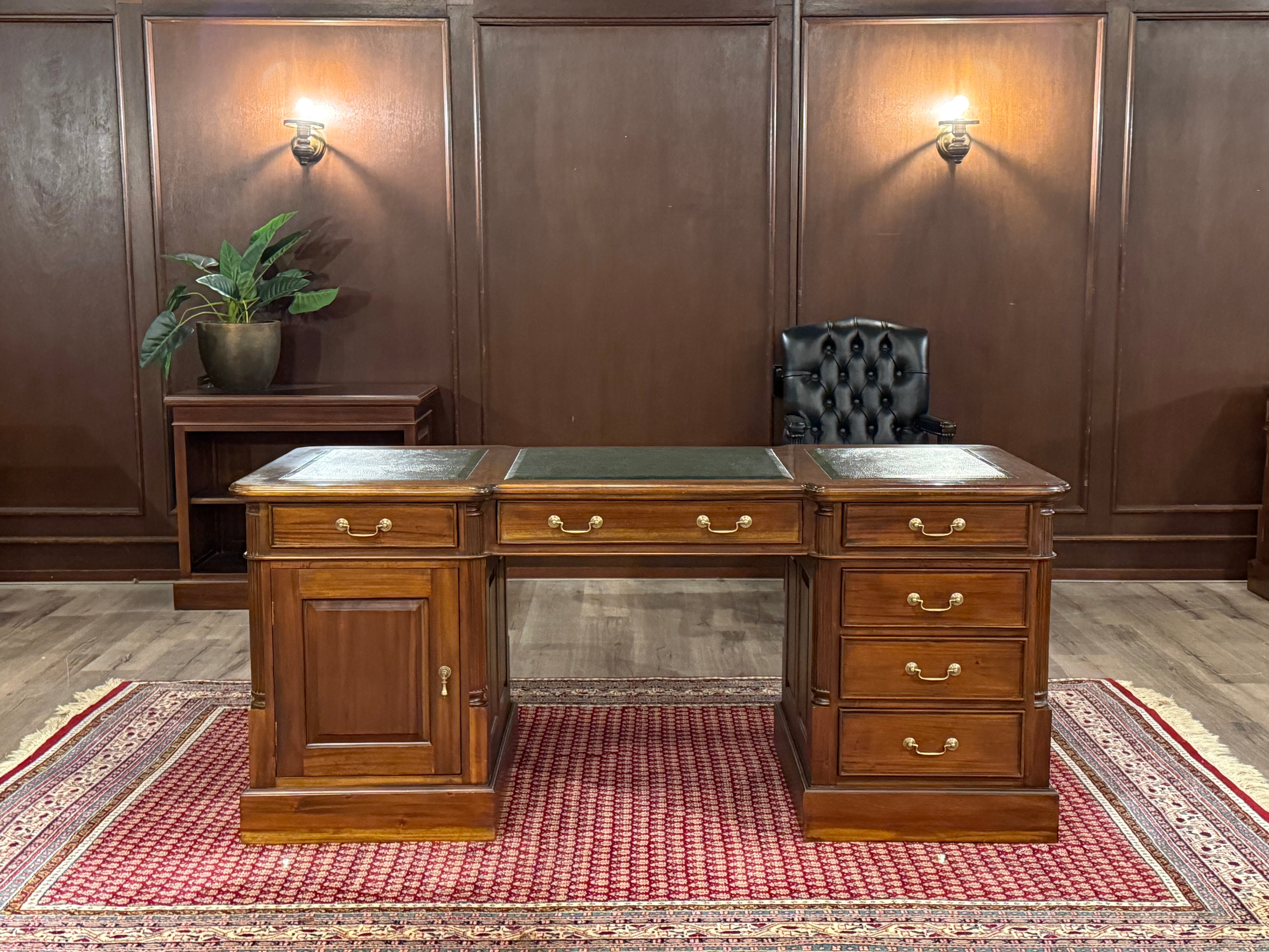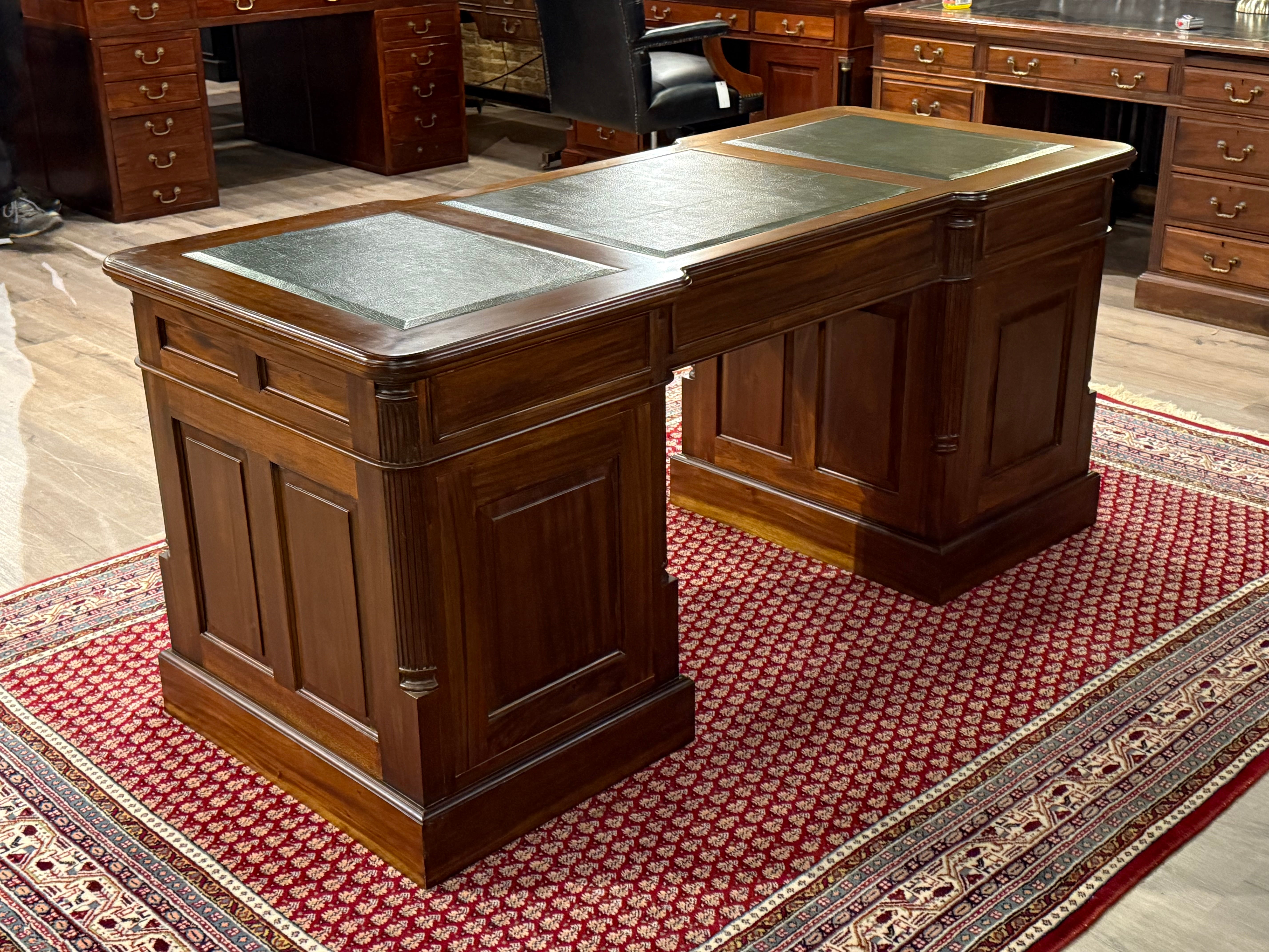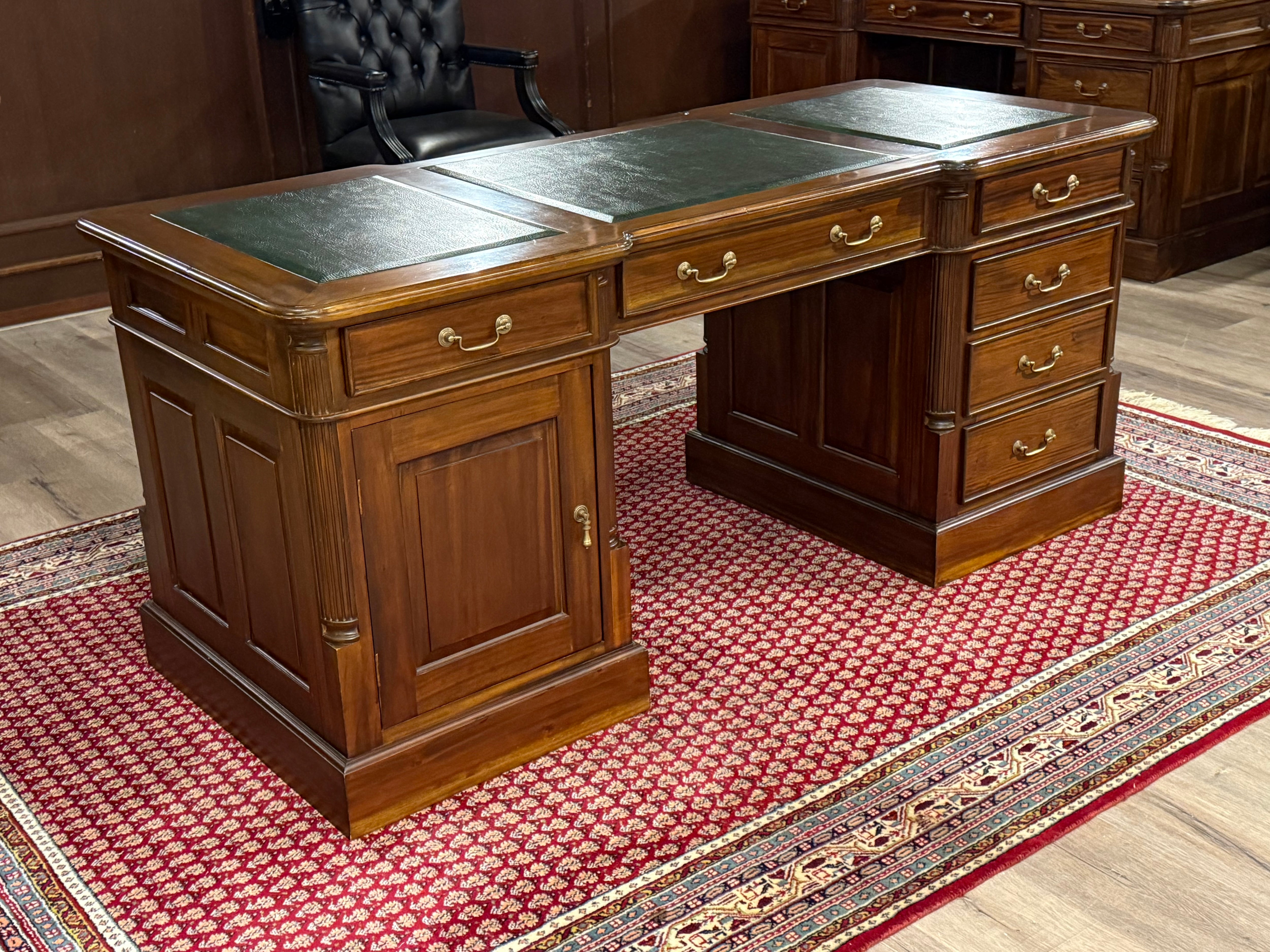 Vintage bureau, klassiek Engels bureau, mahoniehout, groen leer, 556